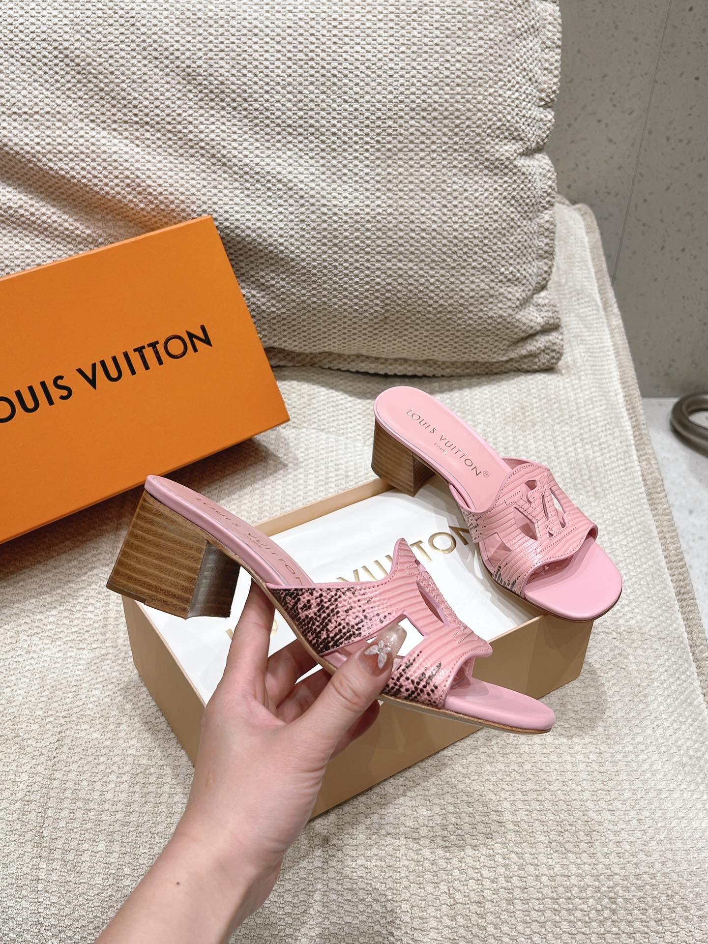 这款鞋子是AAAAA 1:1 质量 (非常棒). 使用了和原版一模一样的材料. 商标部分也保持了和路易威登/Louis Vuitton一样. 图片拍摄是实物鞋子拍摄, 您所收到的实物保证和我们图片一模一样.