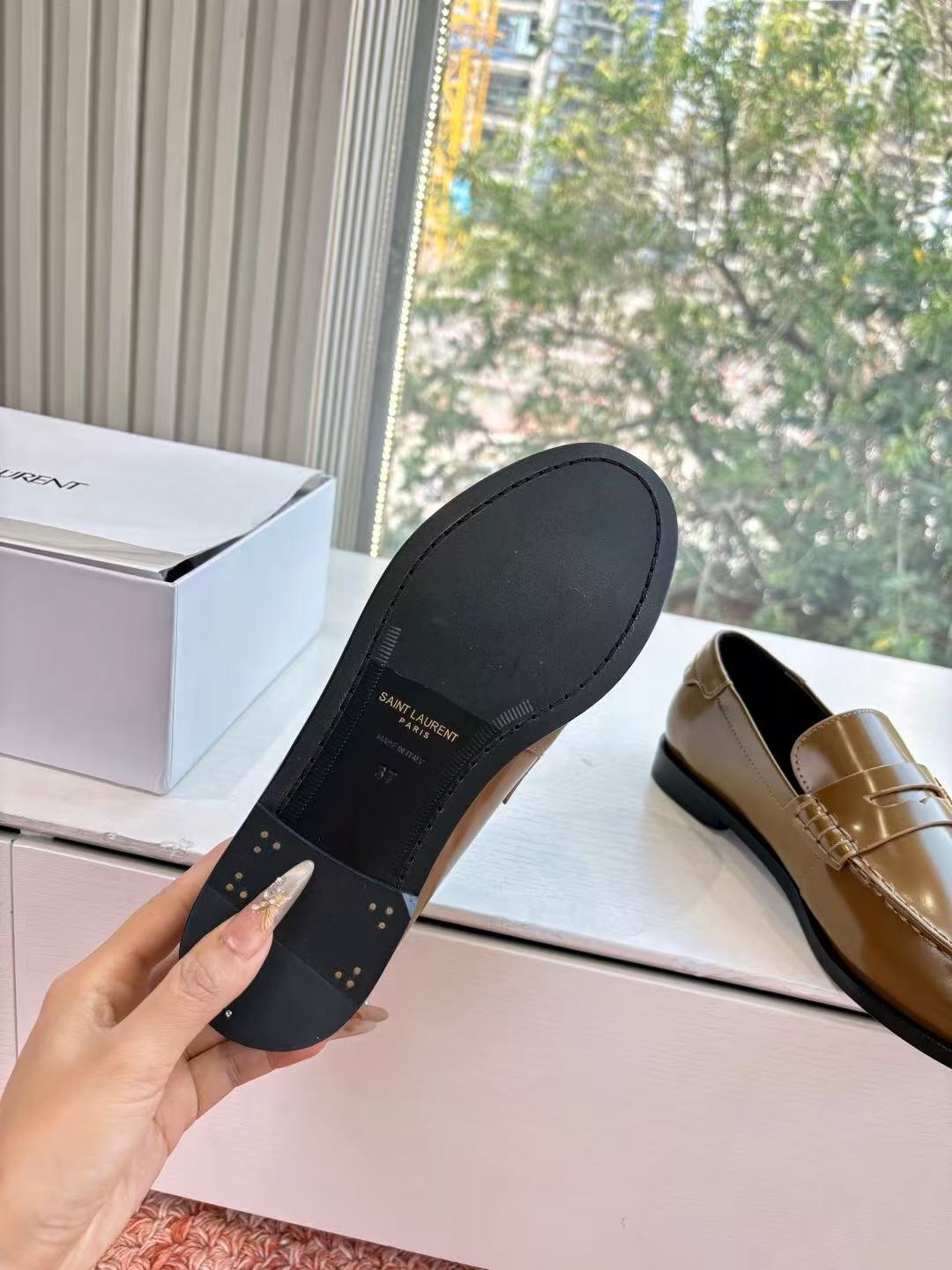 这款鞋子是AAAAA 1:1 质量 (非常棒). 使用了和原版一模一样的材料. 商标部分也保持了和圣罗兰/Saint Laurent一样. 图片拍摄是实物鞋子拍摄, 您所收到的实物保证和我们图片一模一样.