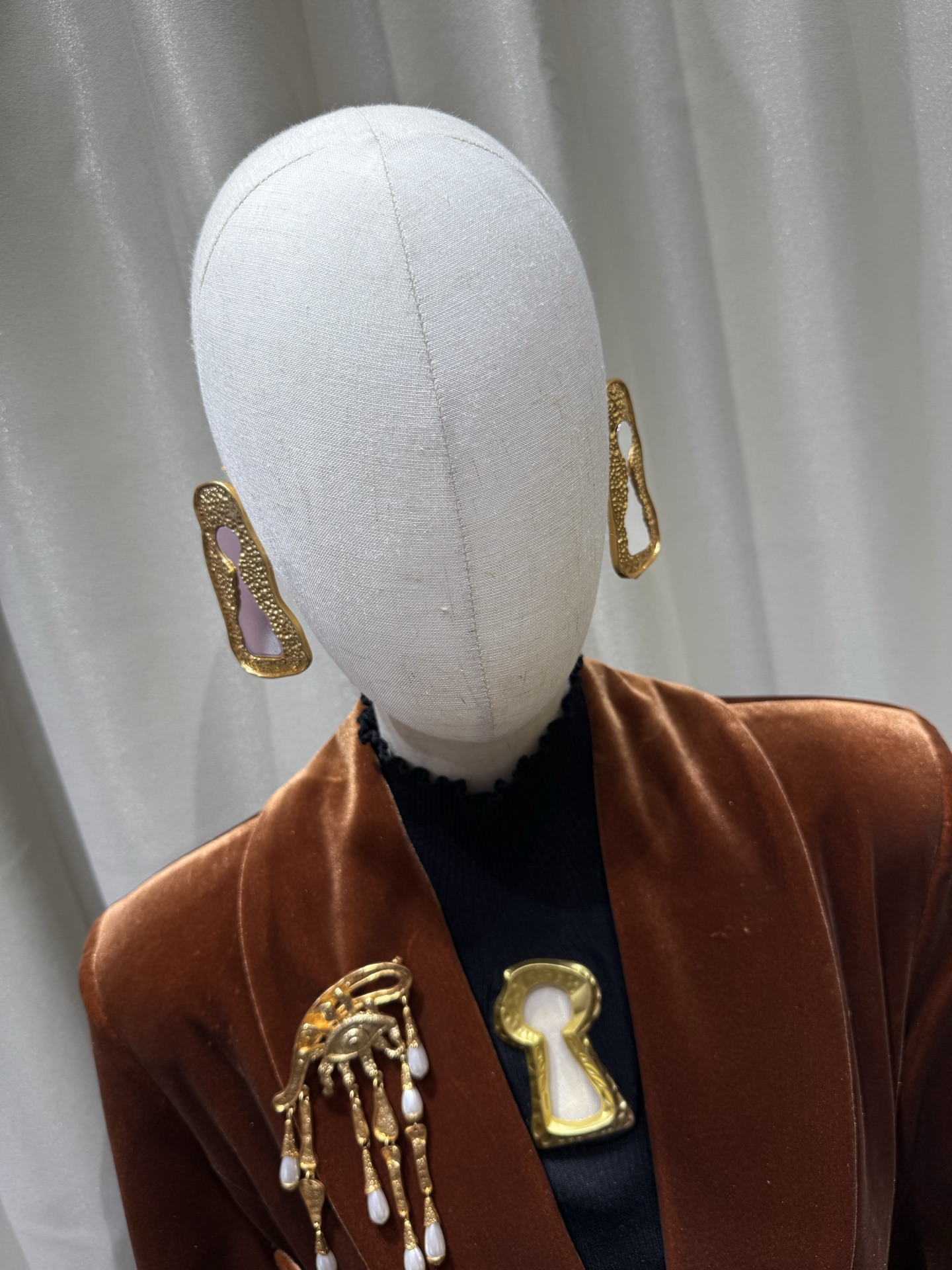 这款首饰是AAAAA 1:1 质量 (非常棒). 使用了和原版一模一样的材料. 商标部分也保持了和Schiaparelli一样. 图片拍摄是实物首饰拍摄, 您所收到的实物保证和我们图片一模一样.