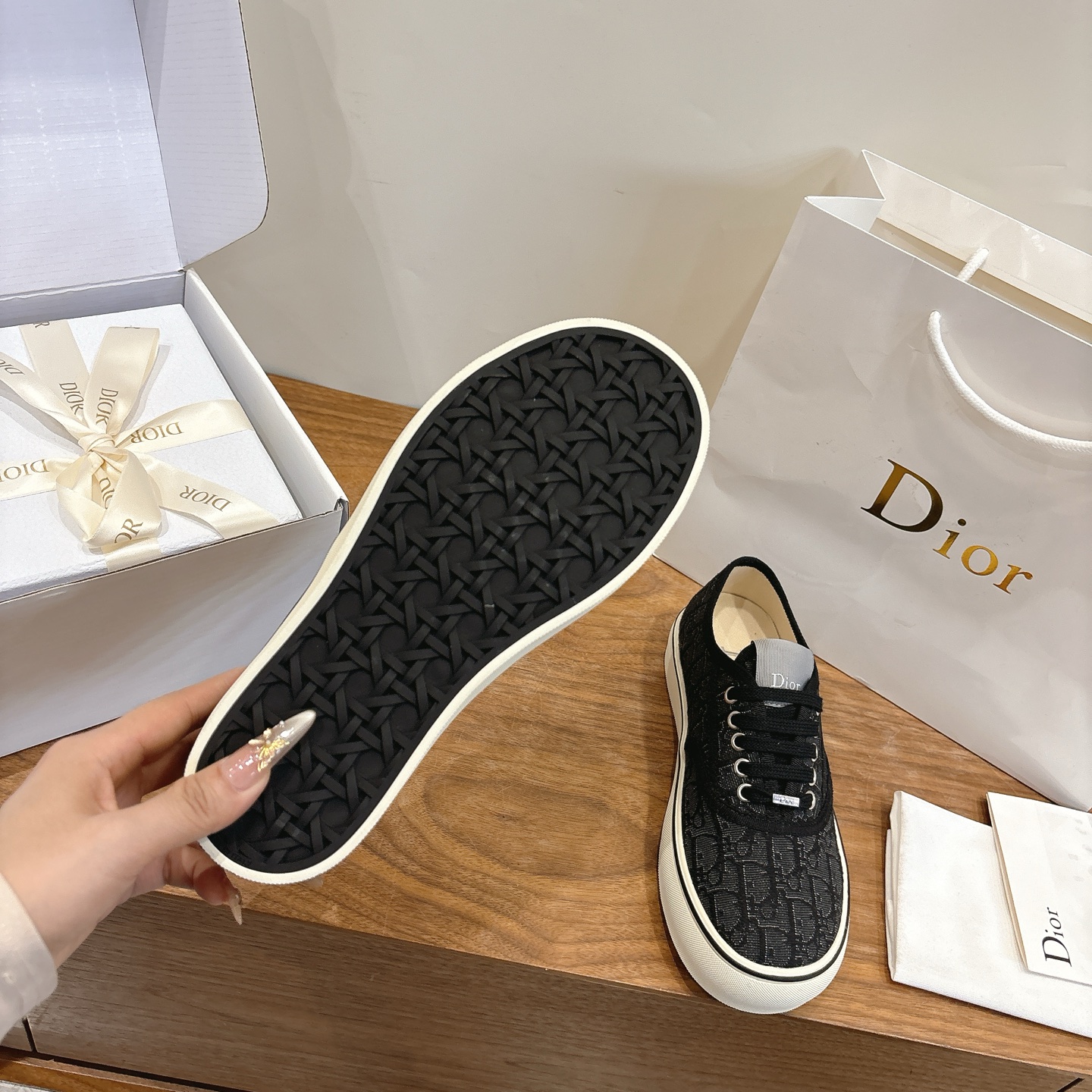 这款鞋子是AAAAA 1:1 质量 (非常棒). 使用了和原版一模一样的材料. 商标部分也保持了和迪奥/Dior一样. 图片拍摄是实物鞋子拍摄, 您所收到的实物保证和我们图片一模一样.
