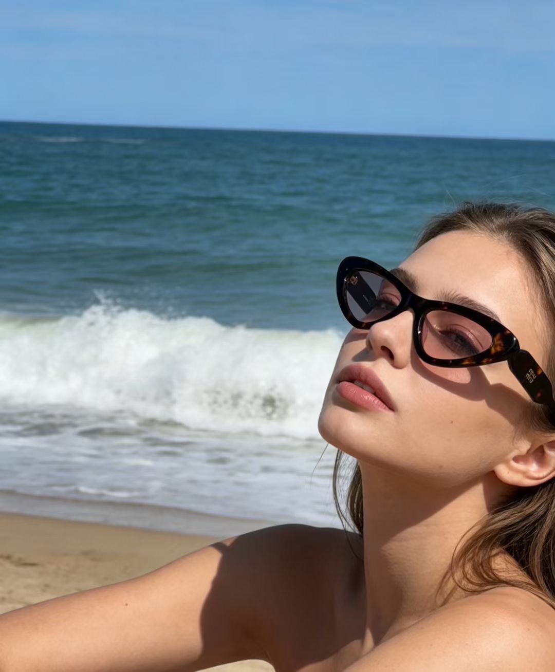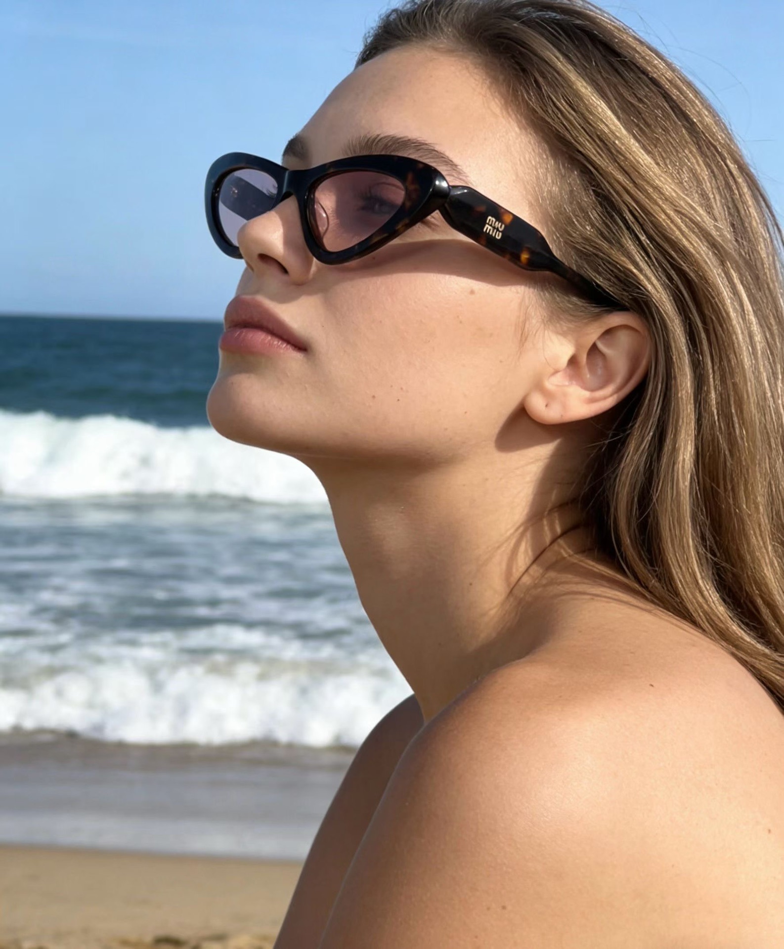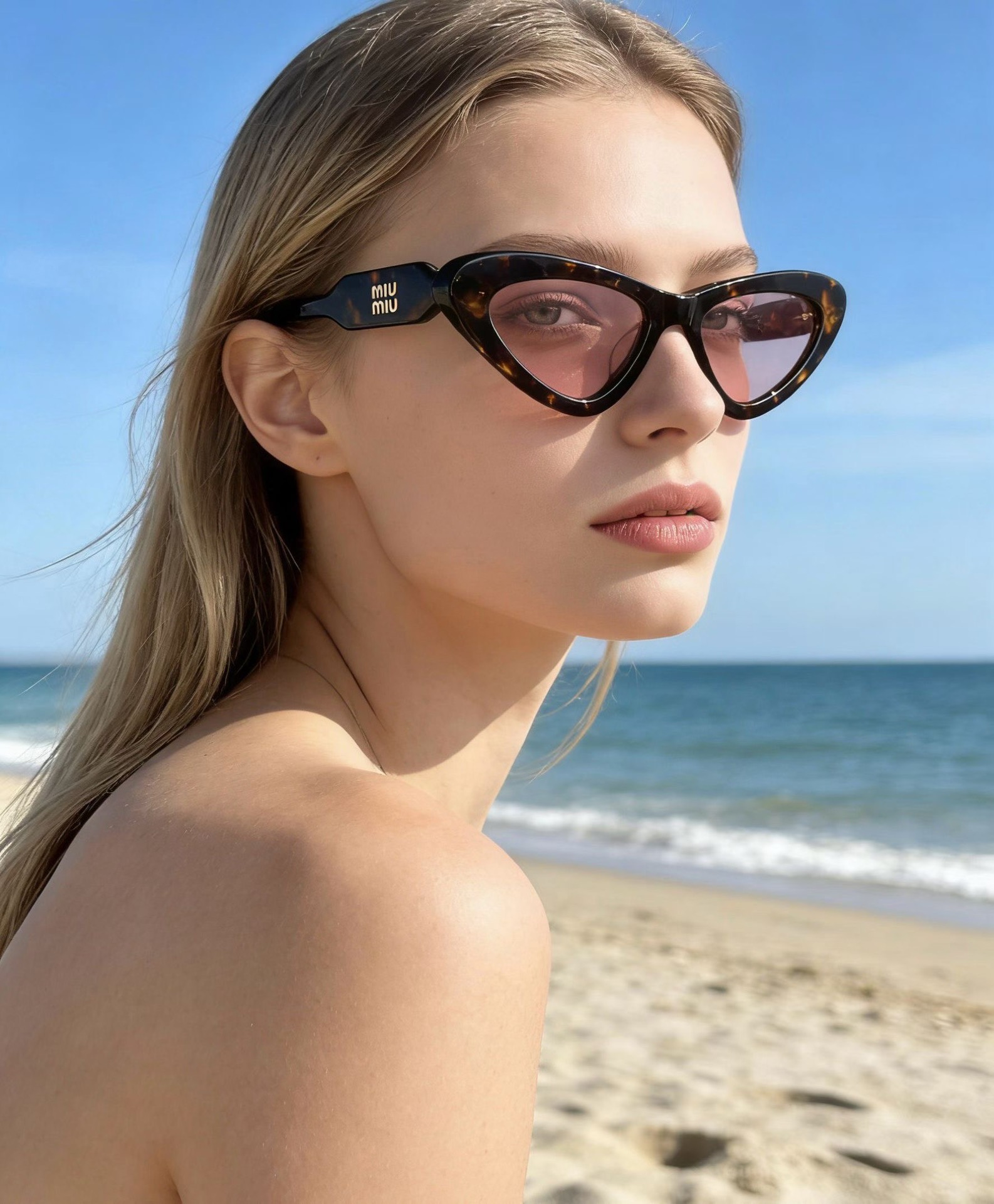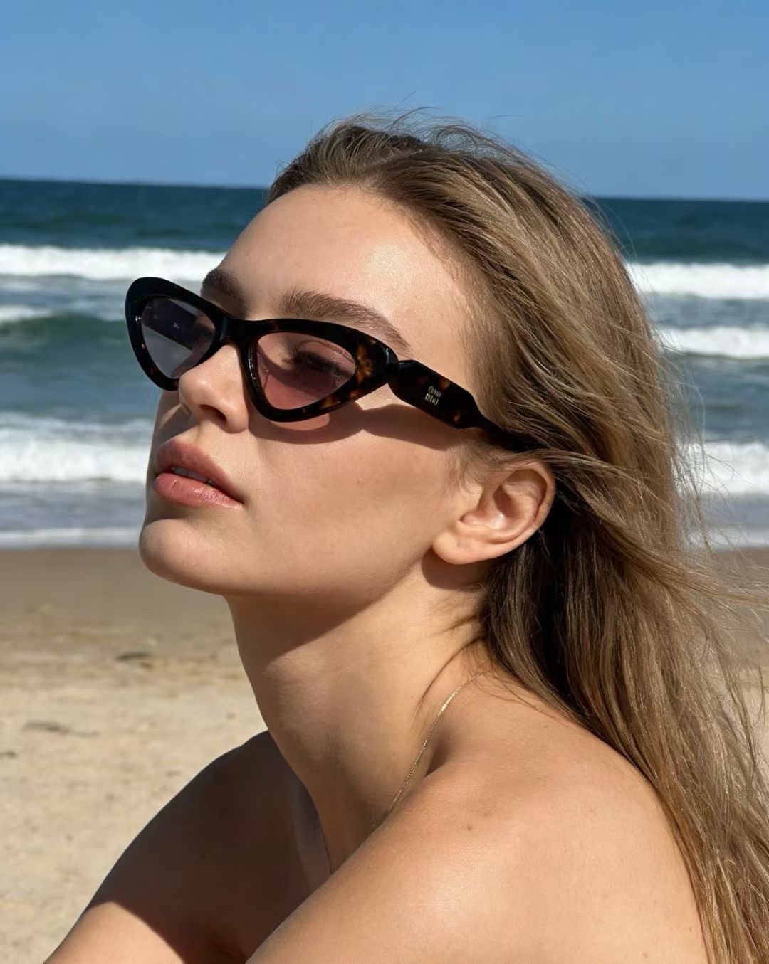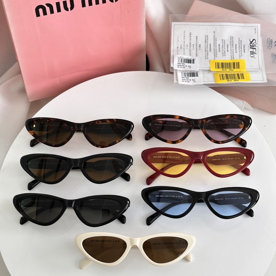 这款太阳眼镜是AAAAA 1:1 质量 (非常棒). 使用了和原版一模一样的材料. 商标部分也保持了和缪缪/Miu Miu一样. 图片拍摄是实物太阳眼镜拍摄, 您所收到的实物保证和我们图片一模一样.