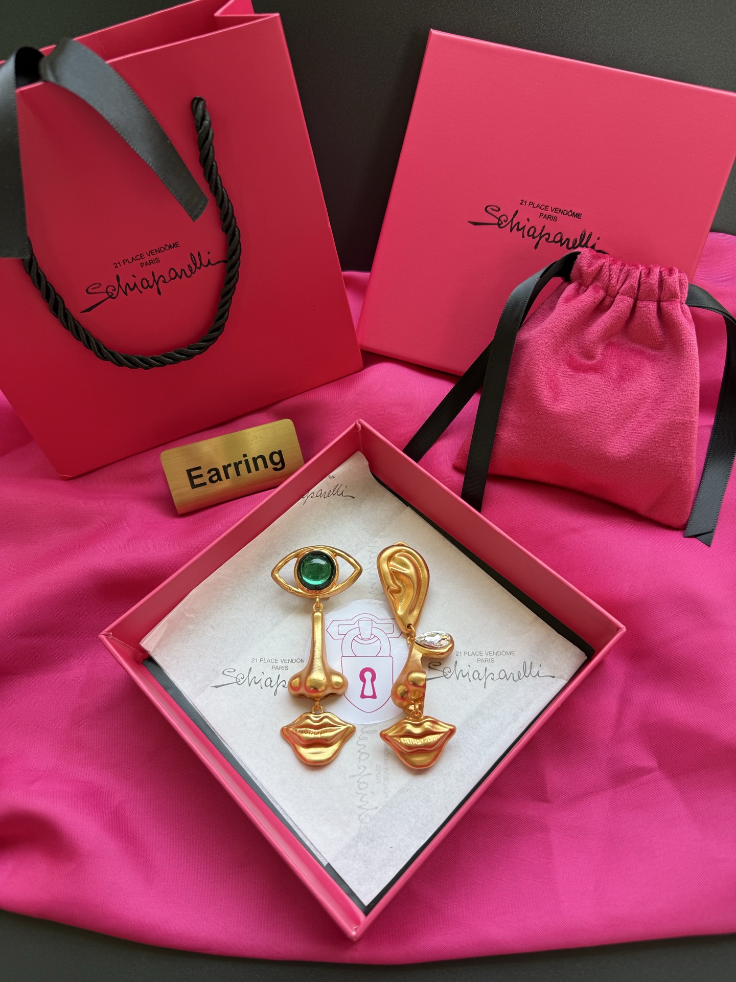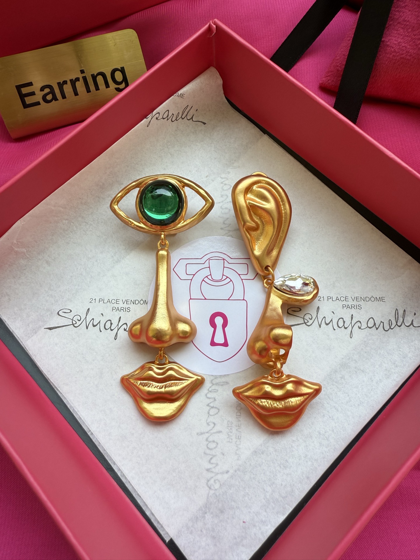 这款首饰是AAAAA 1:1 质量 (非常棒). 使用了和原版一模一样的材料. 商标部分也保持了和Schiaparelli一样. 图片拍摄是实物首饰拍摄, 您所收到的实物保证和我们图片一模一样.