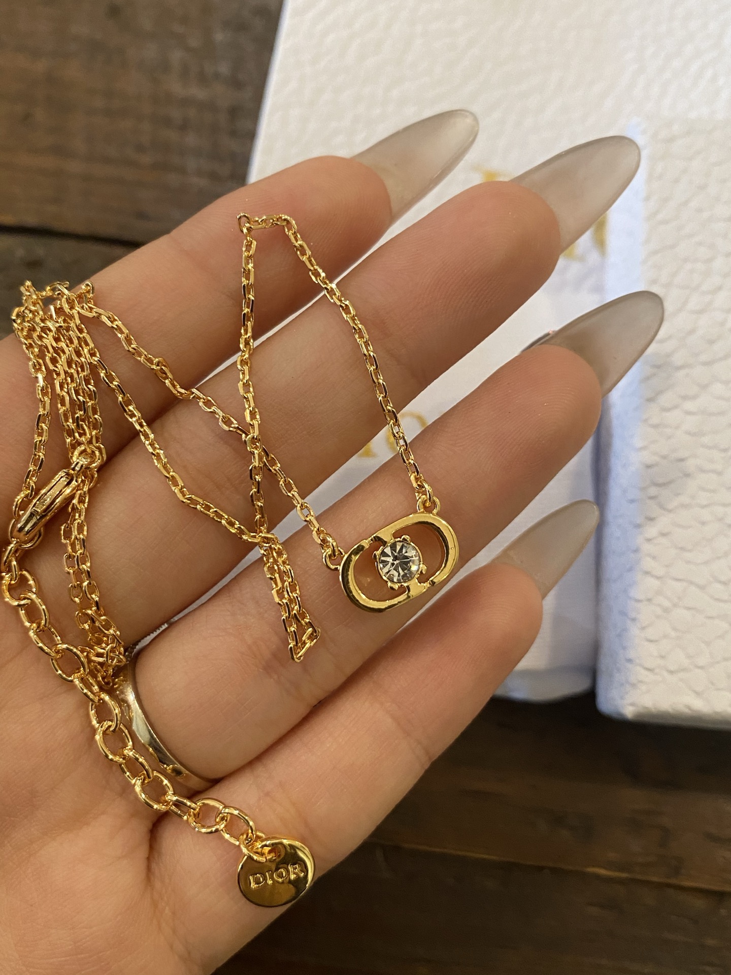 这款首饰是AAAAA 1:1 质量 (非常棒). 使用了和原版一模一样的材料. 商标部分也保持了和迪奥/Dior一样. 图片拍摄是实物首饰拍摄, 您所收到的实物保证和我们图片一模一样.