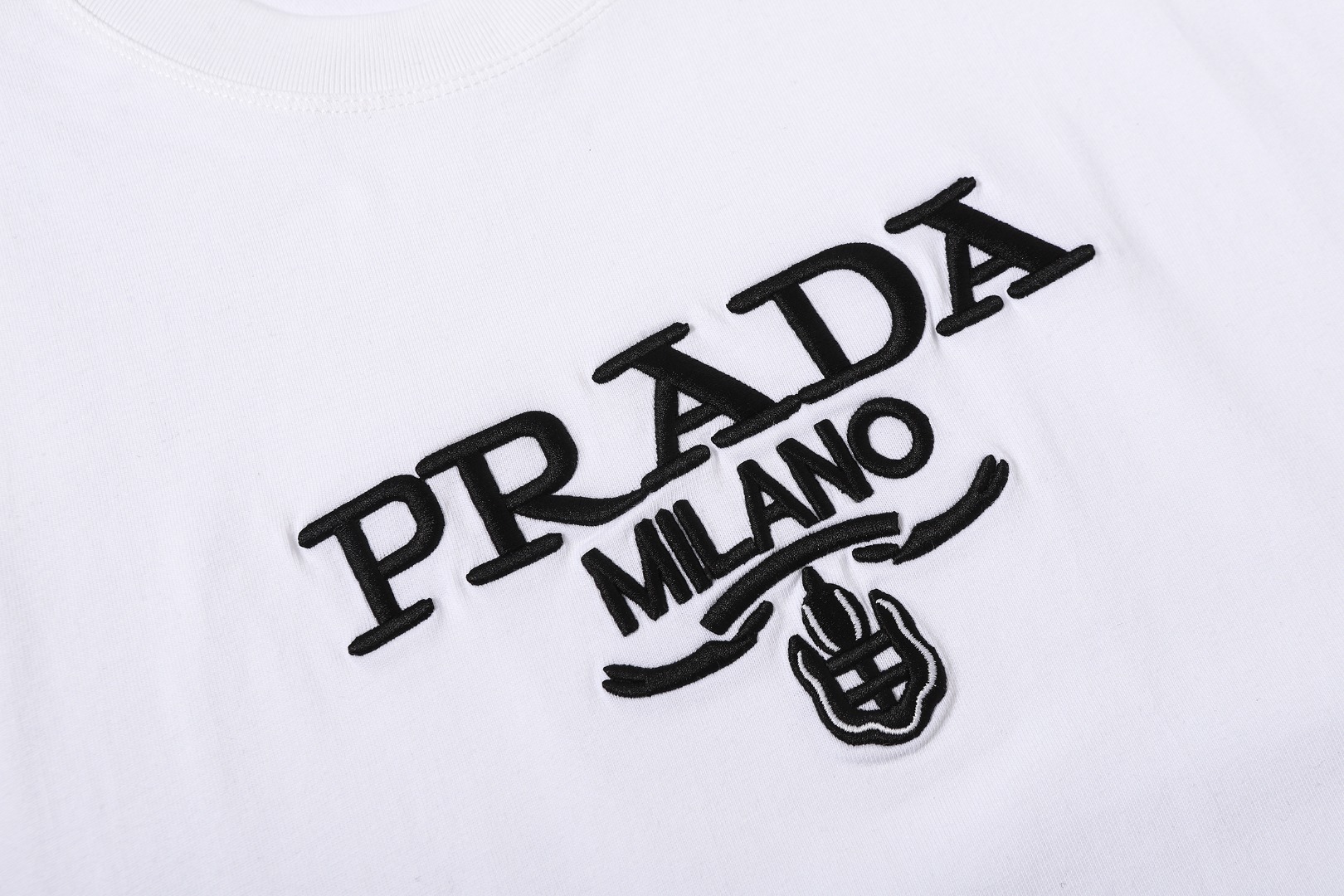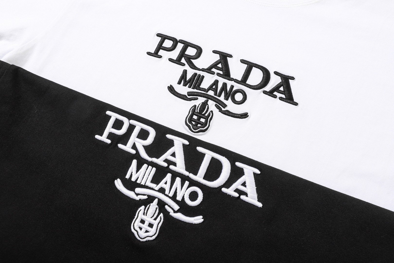 这款衣服是AAAAA 1:1 质量 (非常棒). 使用了和原版一模一样的材料. 商标部分也保持了和普拉达/Prada一样. 图片拍摄是实物衣服拍摄, 您所收到的实物保证和我们图片一模一样.
