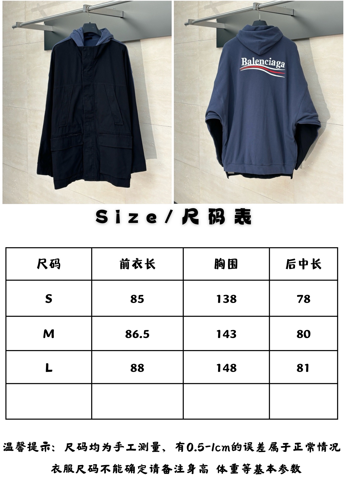 这款衣服是AAAAA 1:1 质量 (非常棒). 使用了和原版一模一样的材料. 商标部分也保持了和巴黎世家/Balenciaga一样. 图片拍摄是实物衣服拍摄, 您所收到的实物保证和我们图片一模一样.