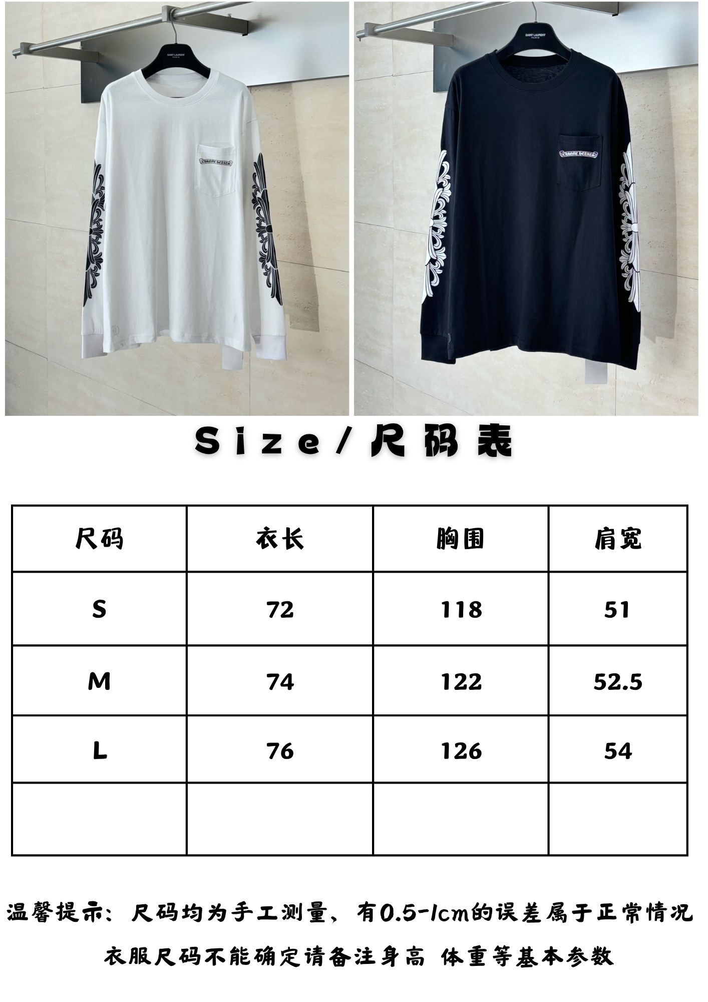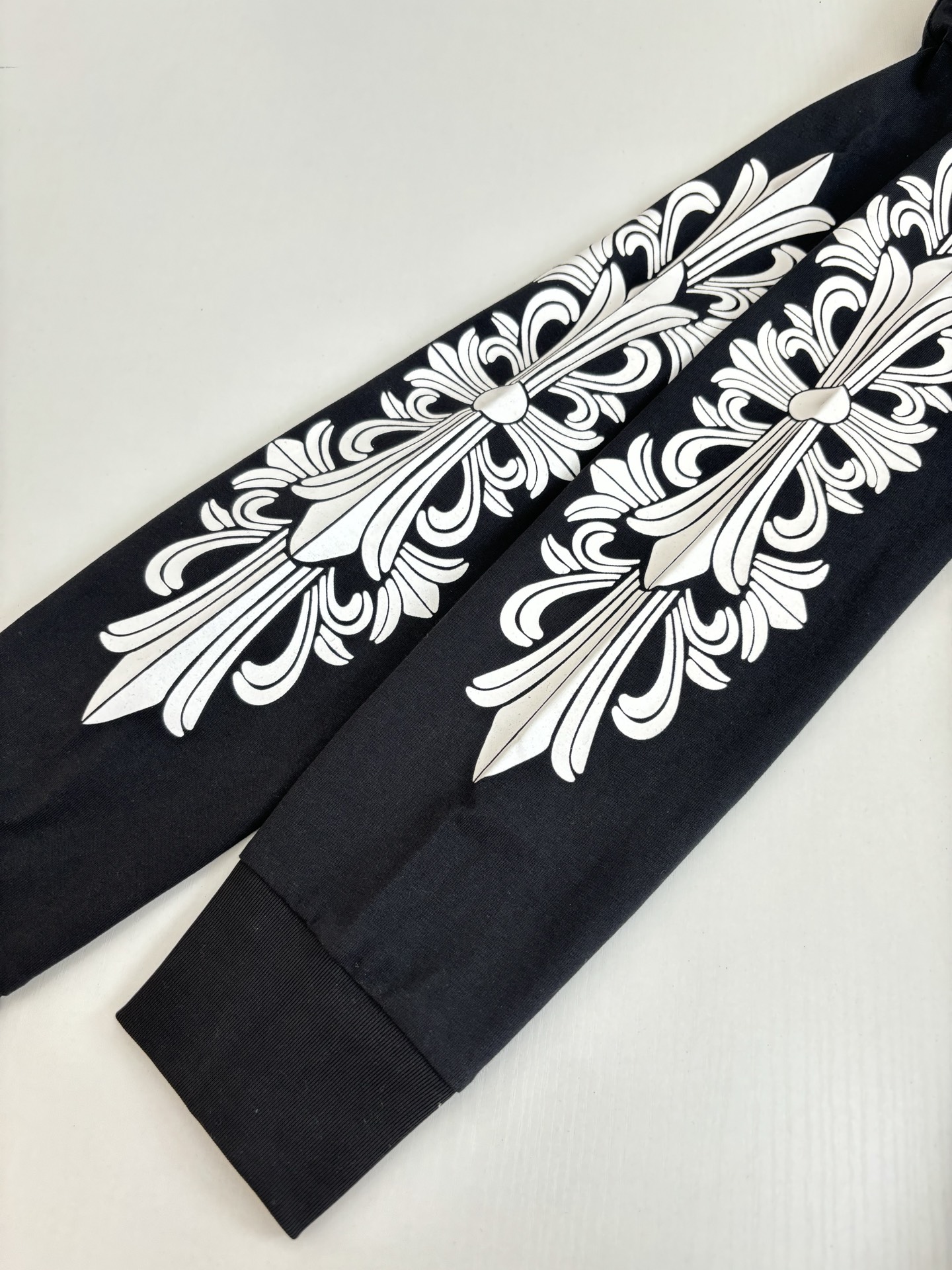 这款衣服是AAAAA 1:1 质量 (非常棒). 使用了和原版一模一样的材料. 商标部分也保持了和克罗心/Chrome Hearts一样. 图片拍摄是实物衣服拍摄, 您所收到的实物保证和我们图片一模一样.