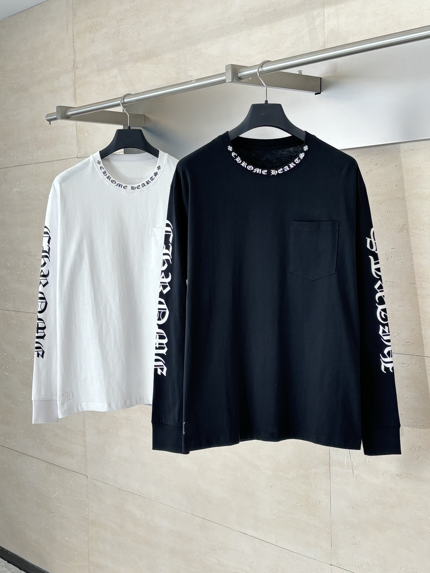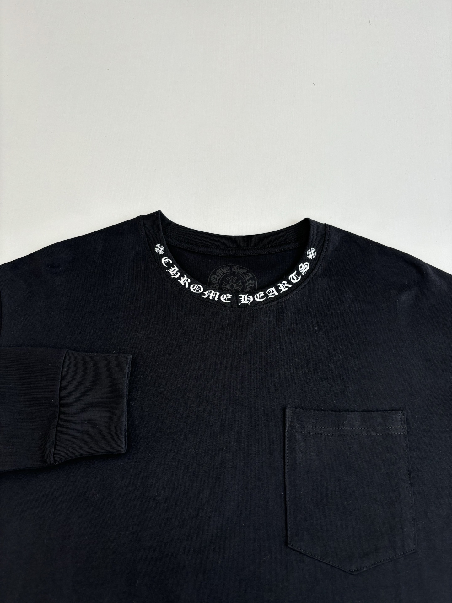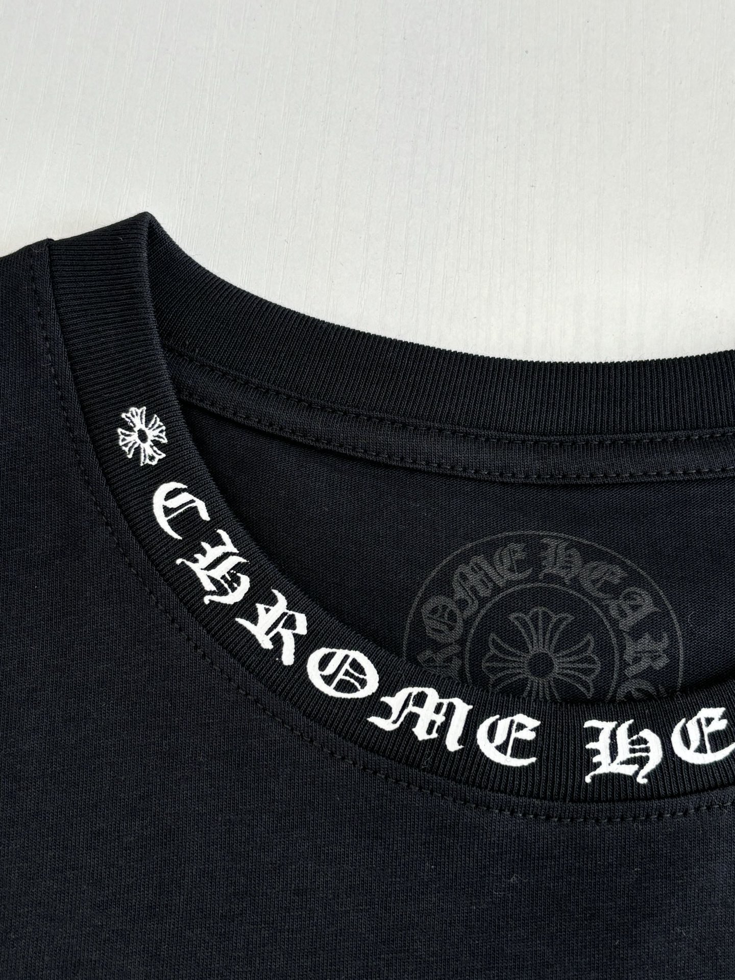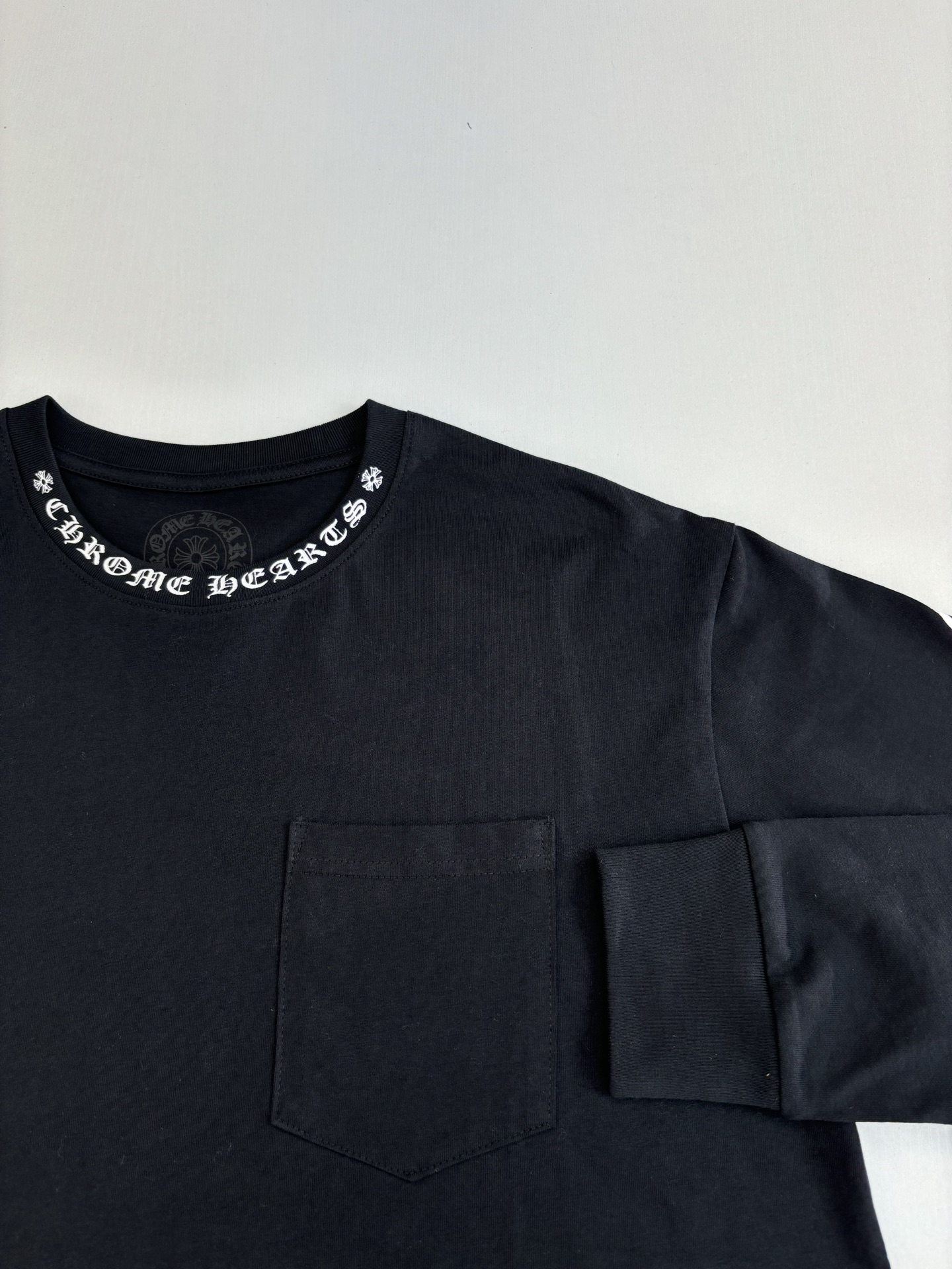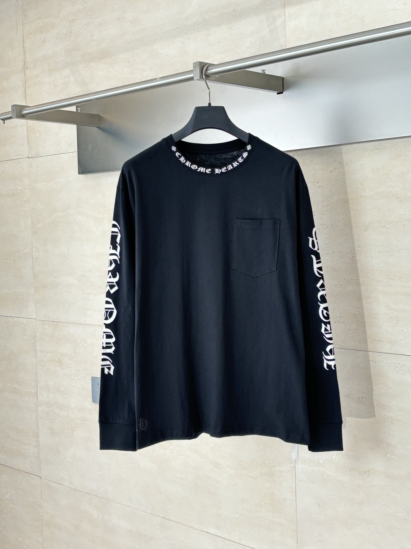 这款衣服是AAAAA 1:1 质量 (非常棒). 使用了和原版一模一样的材料. 商标部分也保持了和克罗心/Chrome Hearts一样. 图片拍摄是实物衣服拍摄, 您所收到的实物保证和我们图片一模一样.
