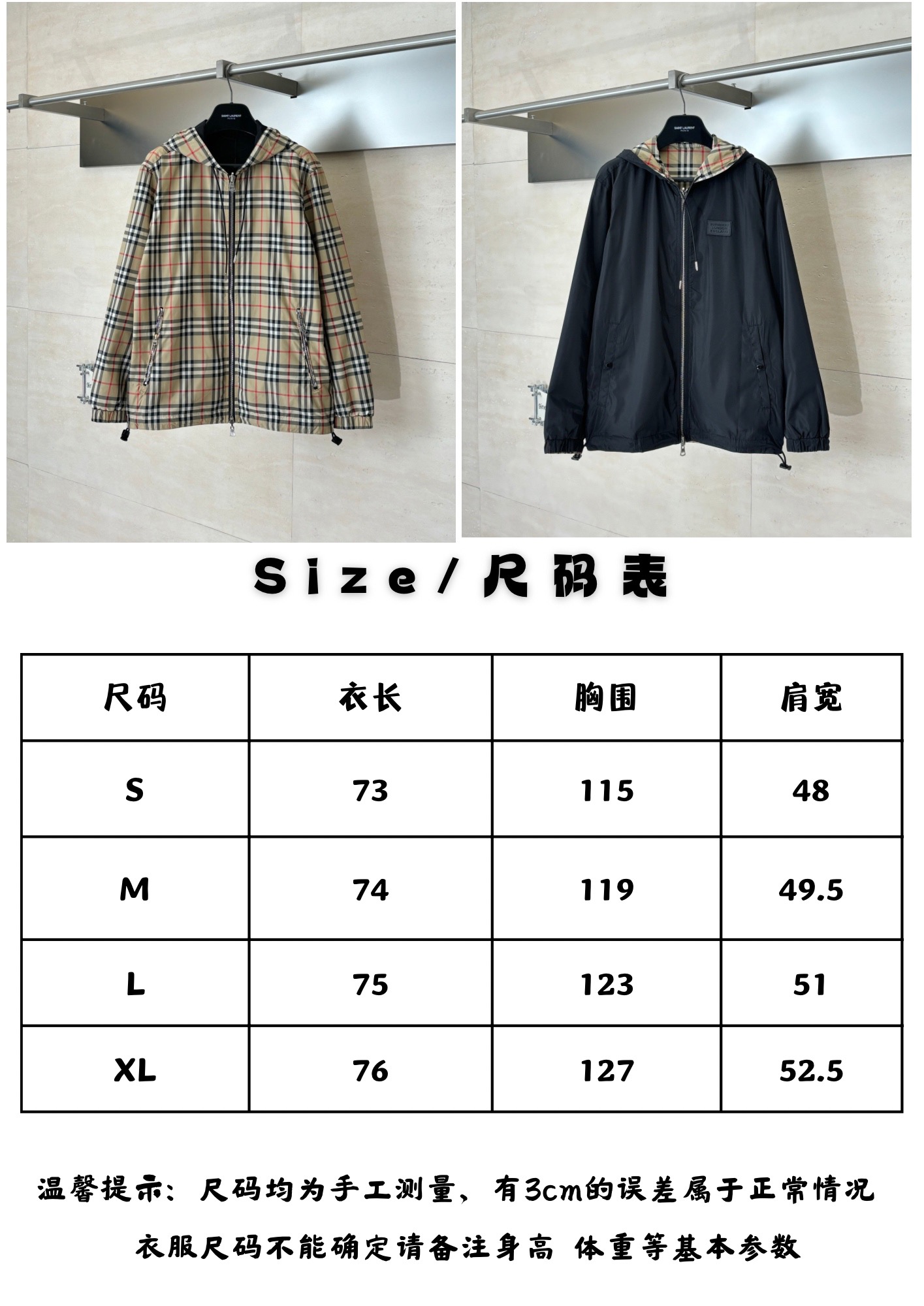 这款衣服是AAAAA 1:1 质量 (非常棒). 使用了和原版一模一样的材料. 商标部分也保持了和巴宝莉/Burberry一样. 图片拍摄是实物衣服拍摄, 您所收到的实物保证和我们图片一模一样.