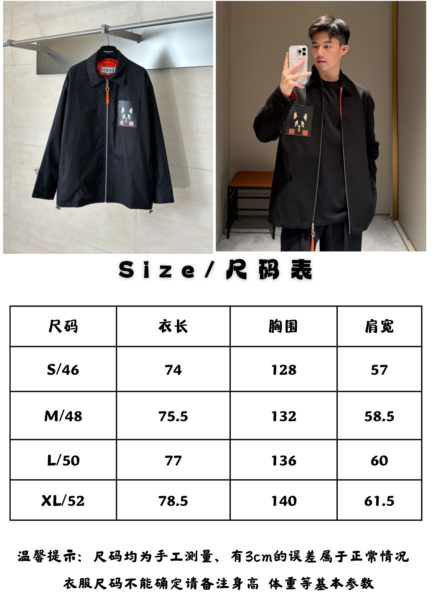 这款衣服是AAAAA 1:1 质量 (非常棒). 使用了和原版一模一样的材料. 商标部分也保持了和罗意威/Loewe一样. 图片拍摄是实物衣服拍摄, 您所收到的实物保证和我们图片一模一样.
