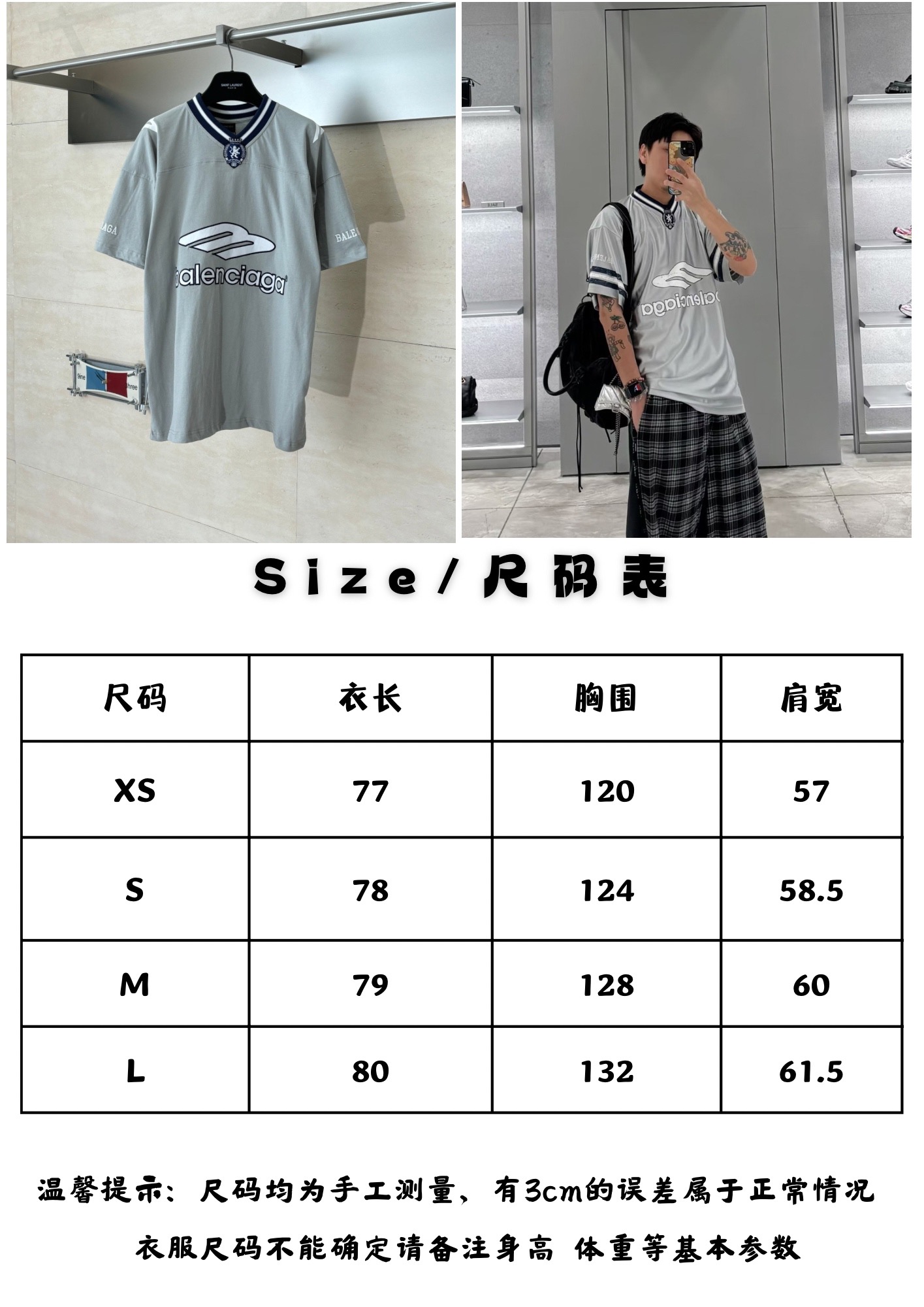 这款衣服是AAAAA 1:1 质量 (非常棒). 使用了和原版一模一样的材料. 商标部分也保持了和巴黎世家/Balenciaga一样. 图片拍摄是实物衣服拍摄, 您所收到的实物保证和我们图片一模一样.
