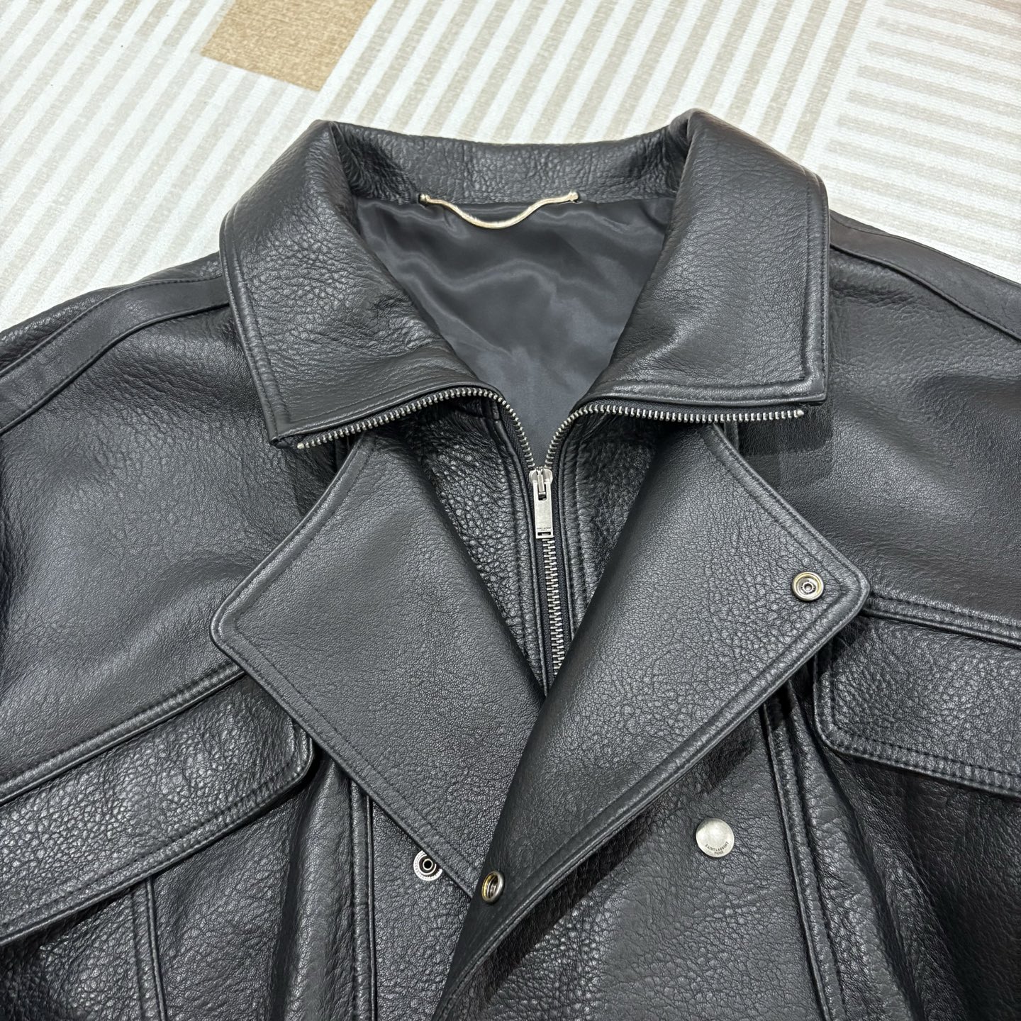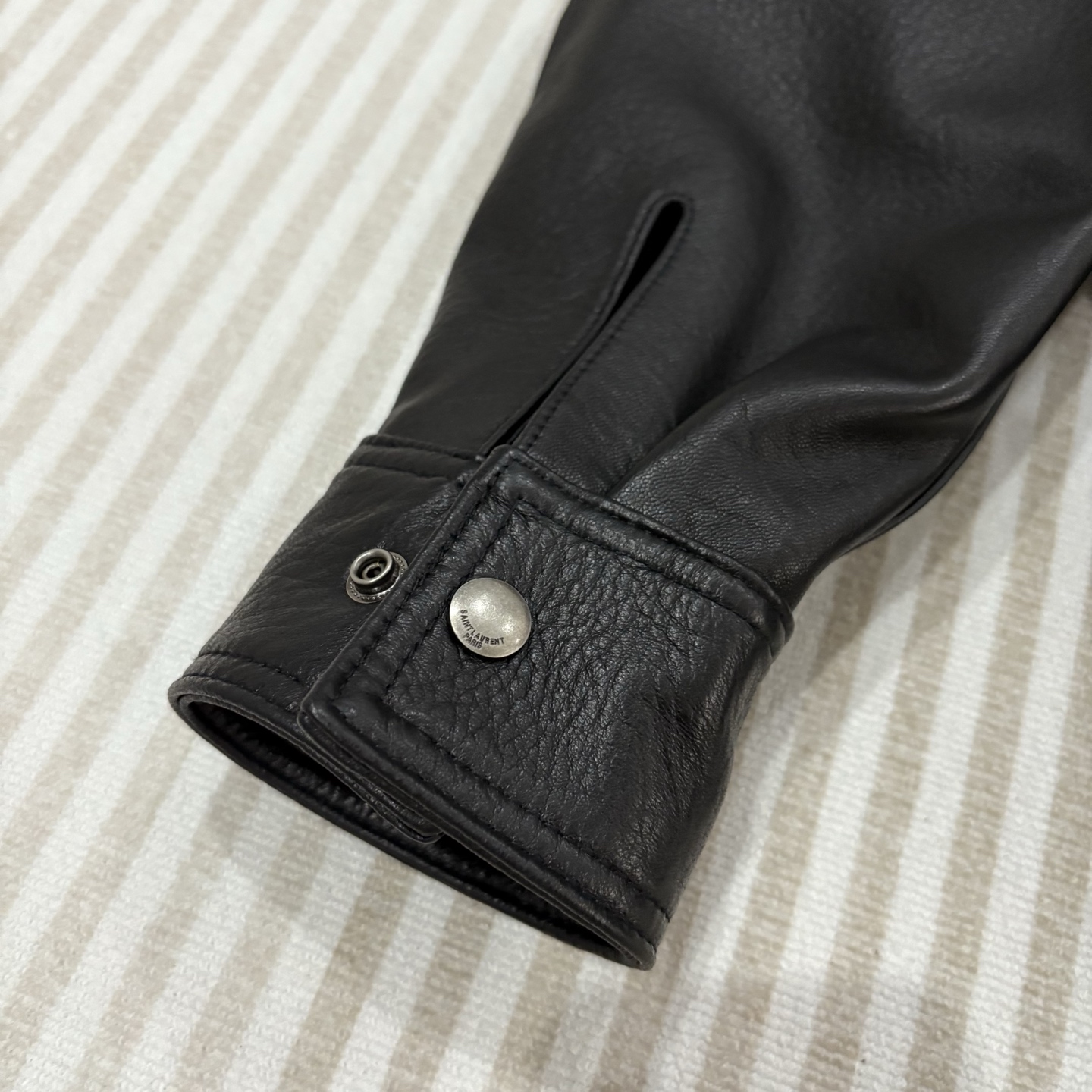 这款衣服是AAAAA 1:1 质量 (非常棒). 使用了和原版一模一样的材料. 商标部分也保持了和圣罗兰/Saint Laurent一样. 图片拍摄是实物衣服拍摄, 您所收到的实物保证和我们图片一模一样.