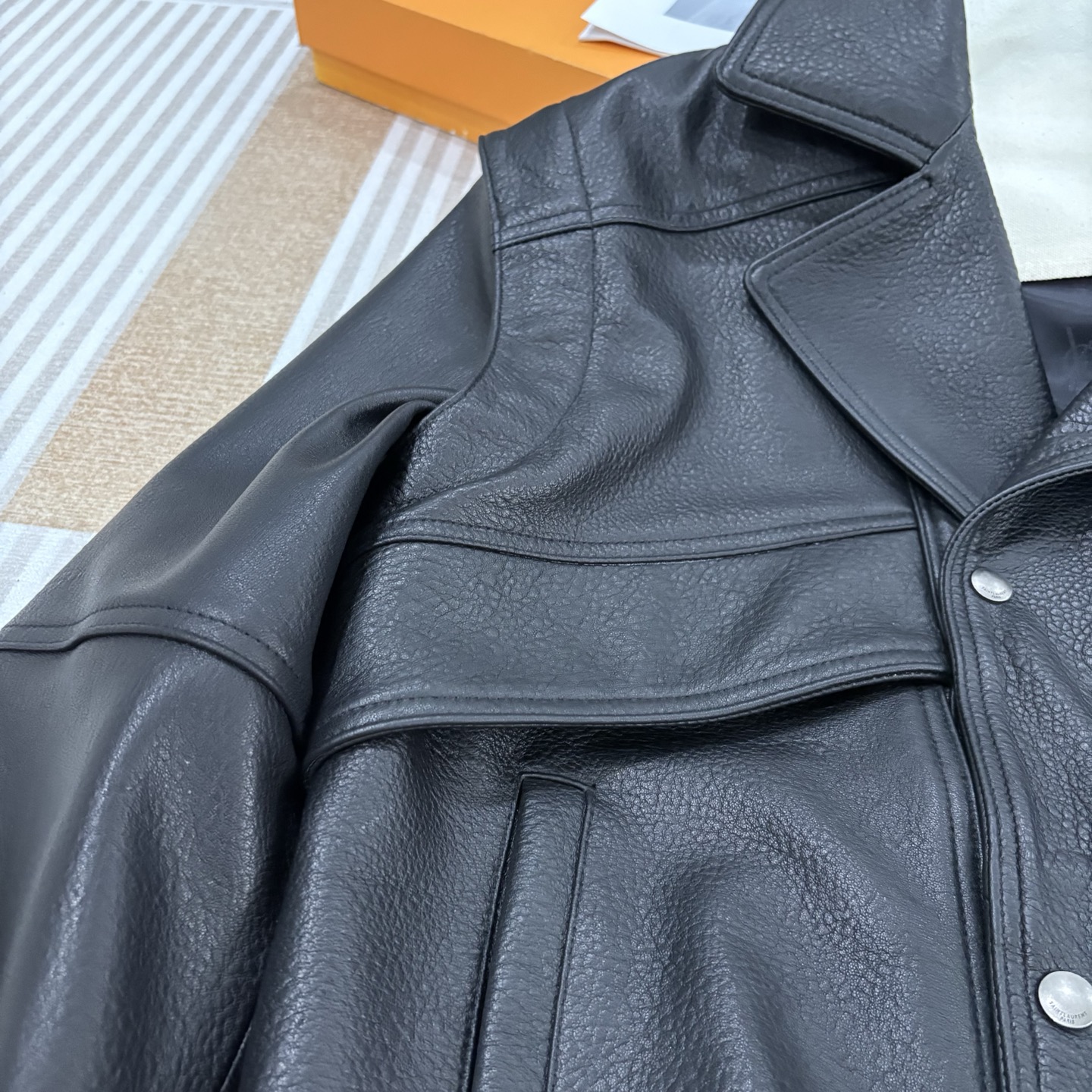 这款衣服是AAAAA 1:1 质量 (非常棒). 使用了和原版一模一样的材料. 商标部分也保持了和圣罗兰/Saint Laurent一样. 图片拍摄是实物衣服拍摄, 您所收到的实物保证和我们图片一模一样.
