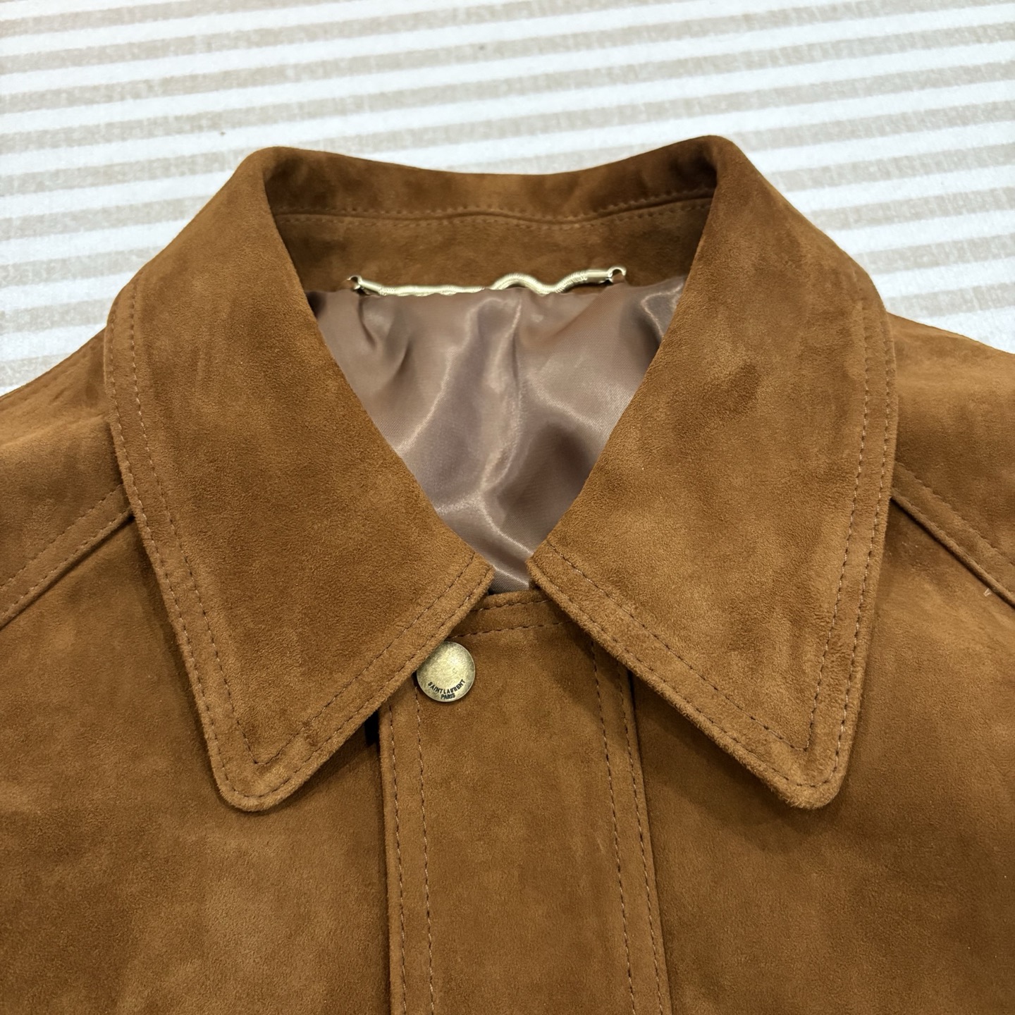 这款衣服是AAAAA 1:1 质量 (非常棒). 使用了和原版一模一样的材料. 商标部分也保持了和圣罗兰/Saint Laurent一样. 图片拍摄是实物衣服拍摄, 您所收到的实物保证和我们图片一模一样.