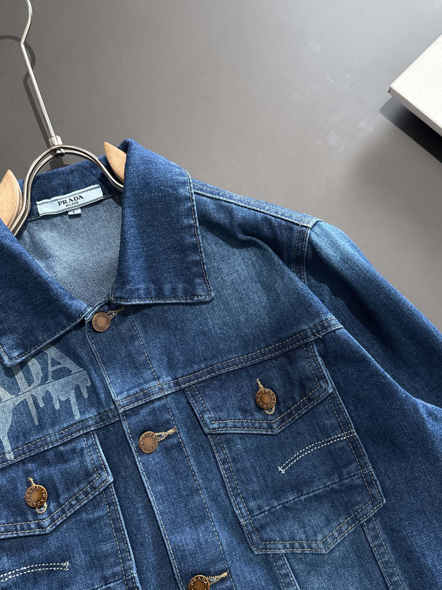 这款衣服是AAAAA 1:1 质量 (非常棒). 使用了和原版一模一样的材料. 商标部分也保持了和普拉达/Prada一样. 图片拍摄是实物衣服拍摄, 您所收到的实物保证和我们图片一模一样.