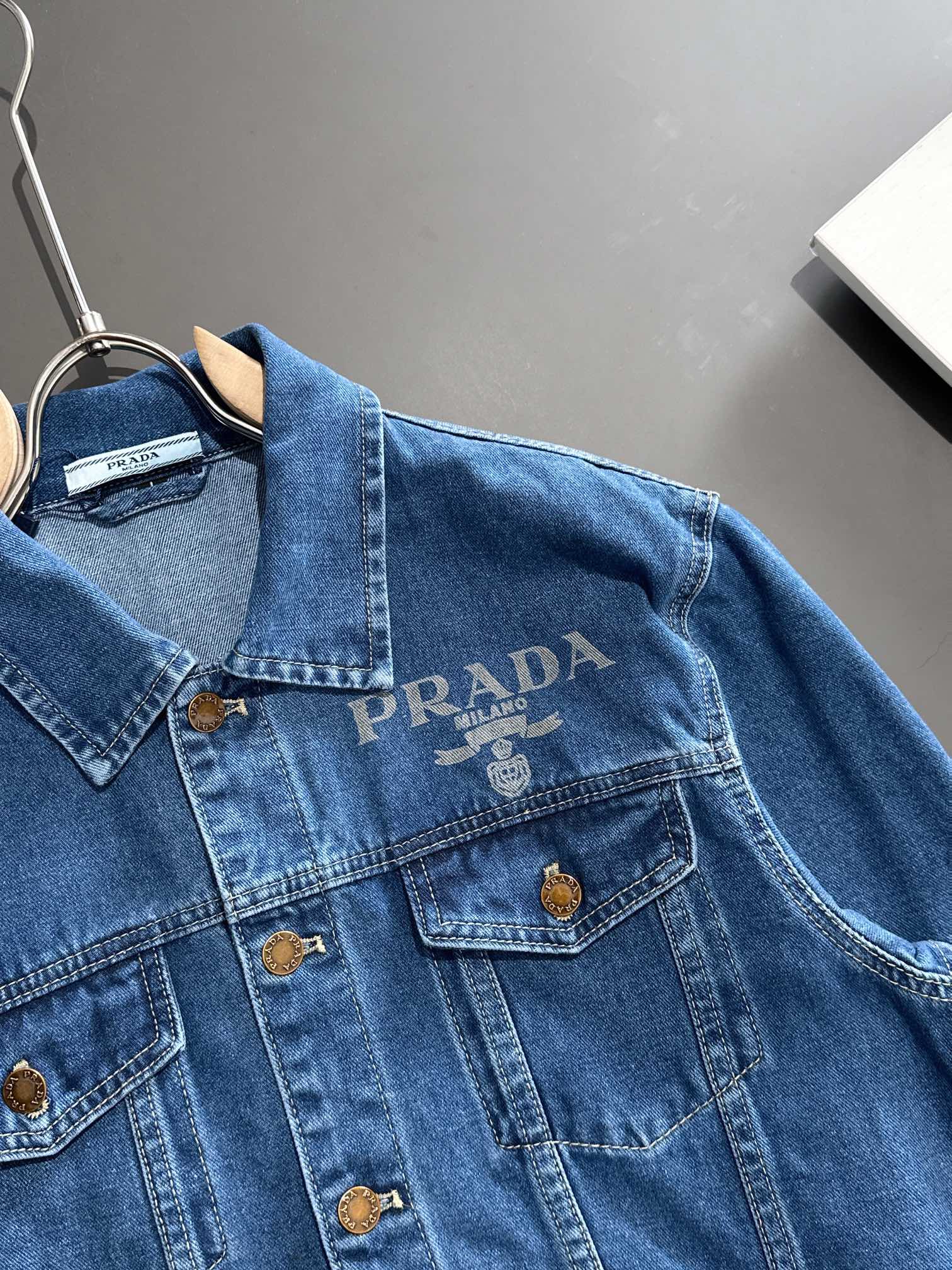 这款衣服是AAAAA 1:1 质量 (非常棒). 使用了和原版一模一样的材料. 商标部分也保持了和普拉达/Prada一样. 图片拍摄是实物衣服拍摄, 您所收到的实物保证和我们图片一模一样.