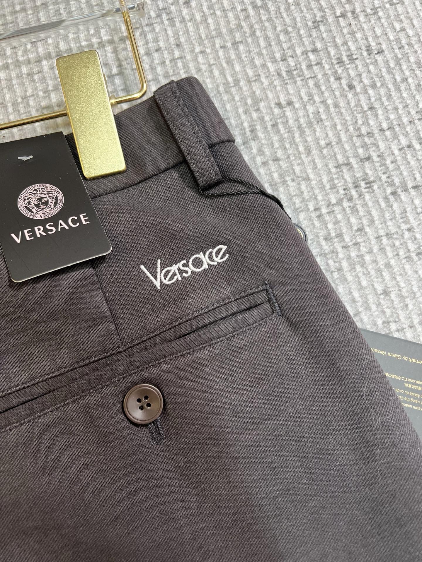 这款衣服是AAAAA 1:1 质量 (非常棒). 使用了和原版一模一样的材料. 商标部分也保持了和范思哲/Versace一样. 图片拍摄是实物衣服拍摄, 您所收到的实物保证和我们图片一模一样.