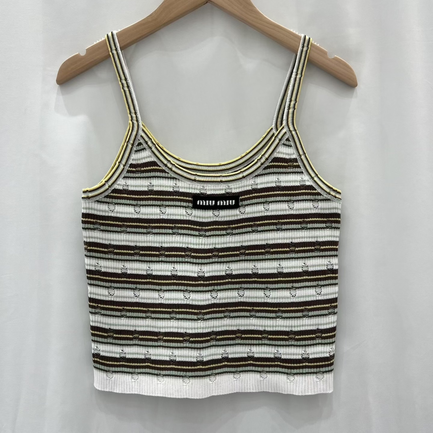 这款衣服是AAAAA 1:1 质量 (非常棒). 使用了和原版一模一样的材料. 商标部分也保持了和缪缪/Miu Miu一样. 图片拍摄是实物衣服拍摄, 您所收到的实物保证和我们图片一模一样.