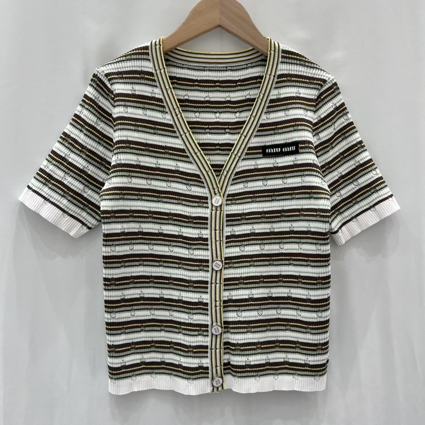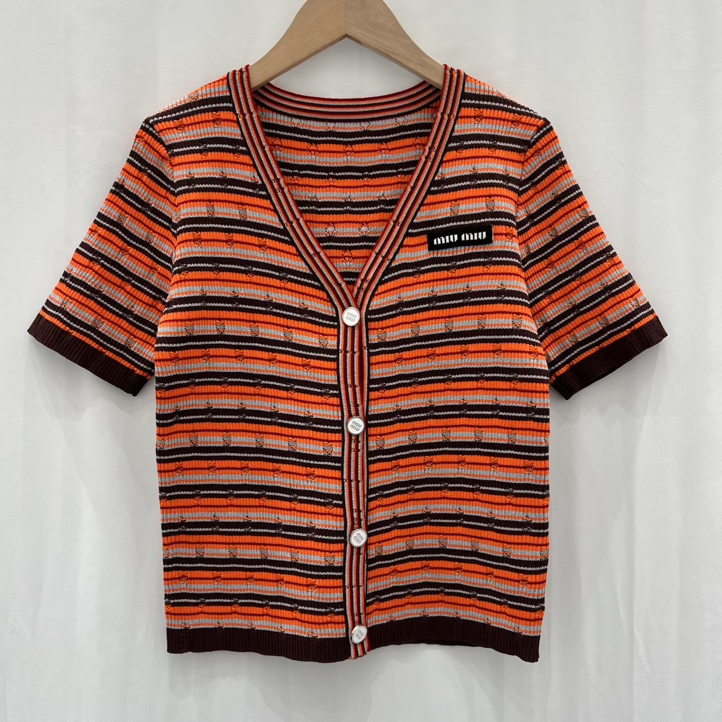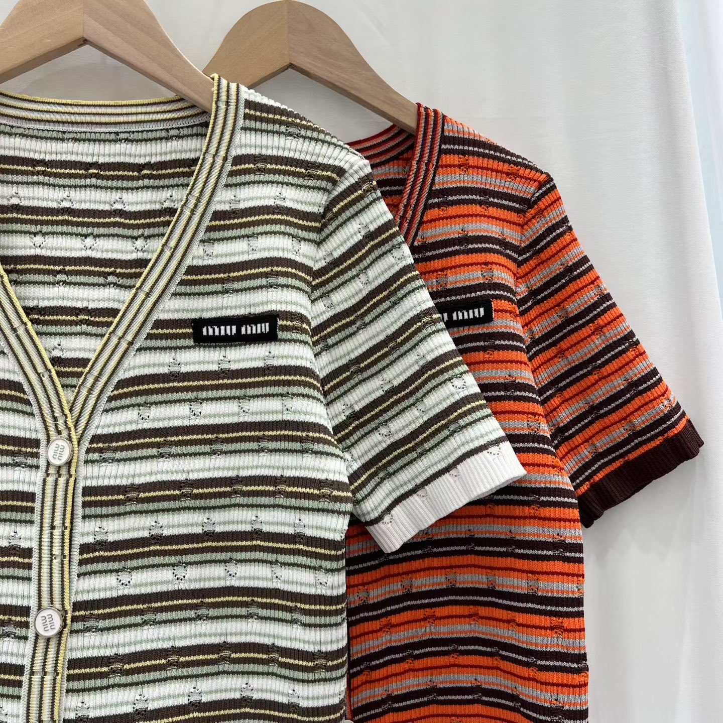 这款衣服是AAAAA 1:1 质量 (非常棒). 使用了和原版一模一样的材料. 商标部分也保持了和缪缪/Miu Miu一样. 图片拍摄是实物衣服拍摄, 您所收到的实物保证和我们图片一模一样.