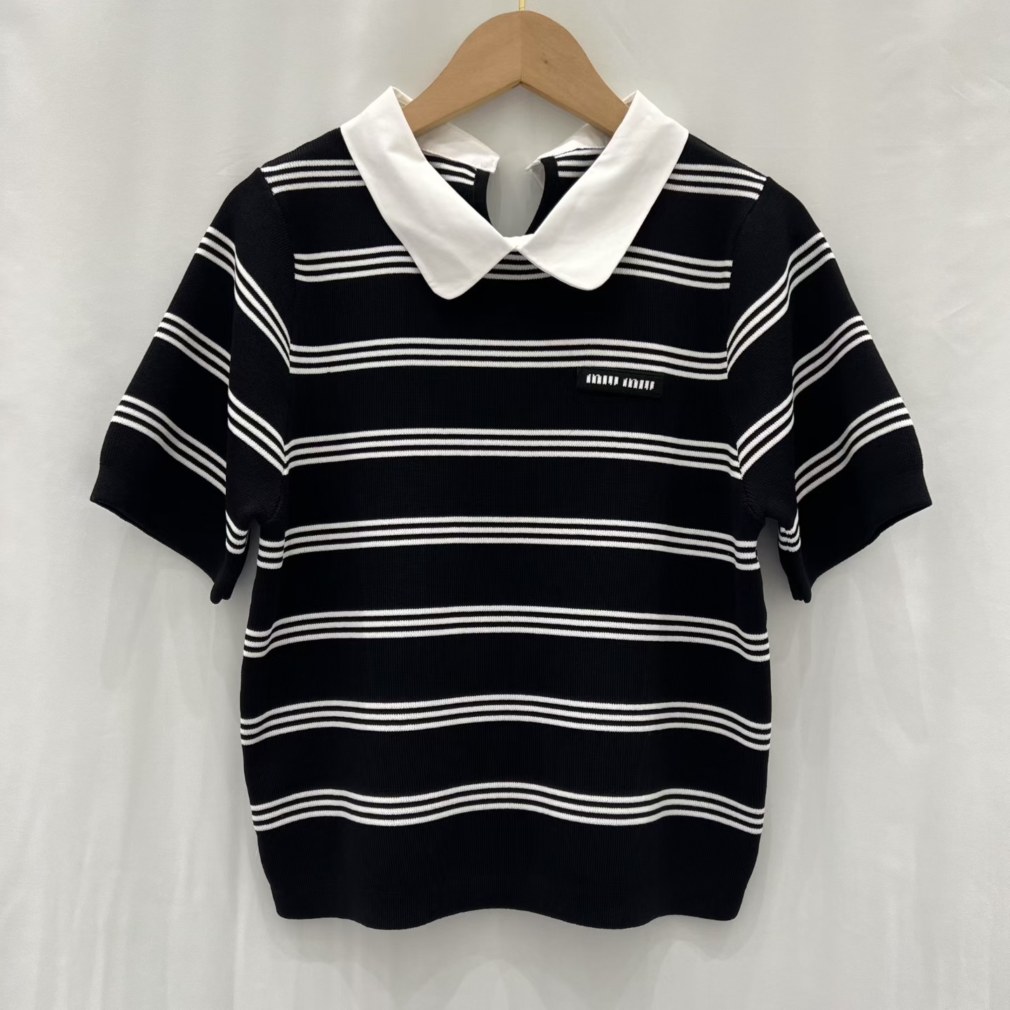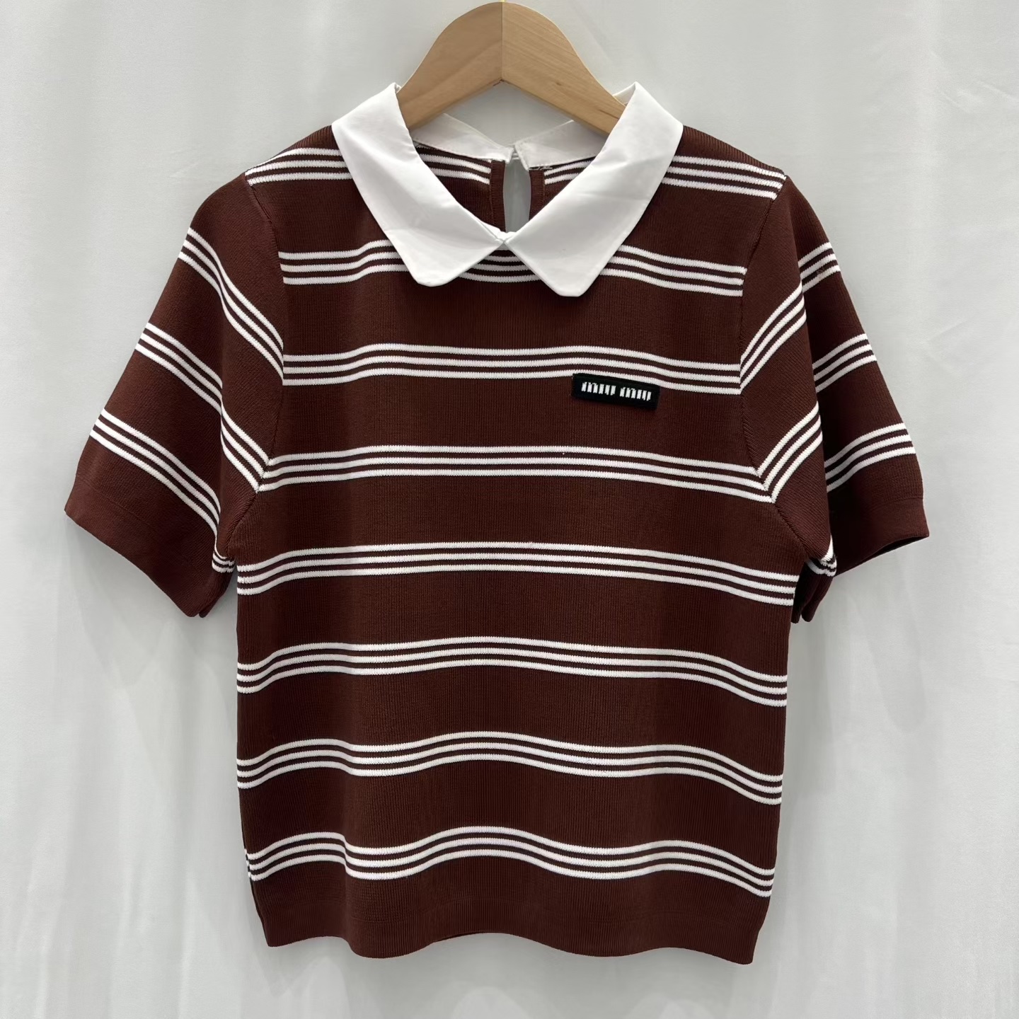 这款衣服是AAAAA 1:1 质量 (非常棒). 使用了和原版一模一样的材料. 商标部分也保持了和缪缪/Miu Miu一样. 图片拍摄是实物衣服拍摄, 您所收到的实物保证和我们图片一模一样.