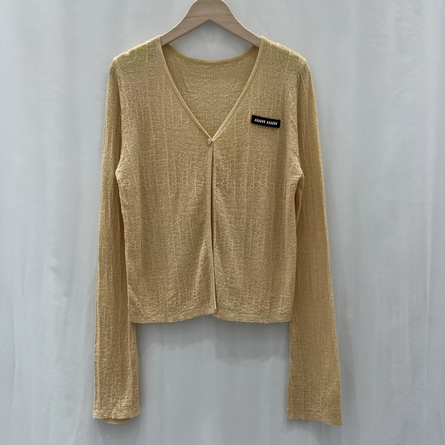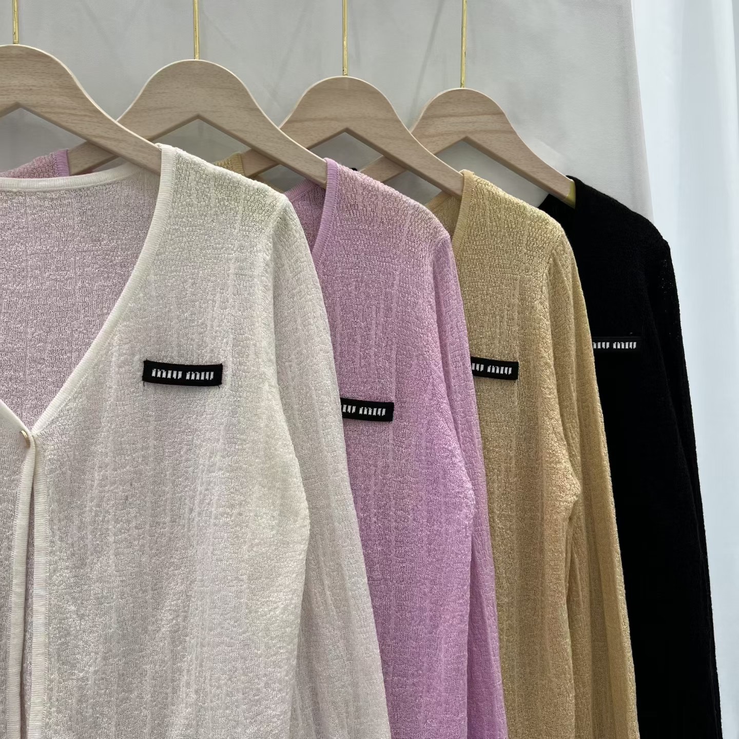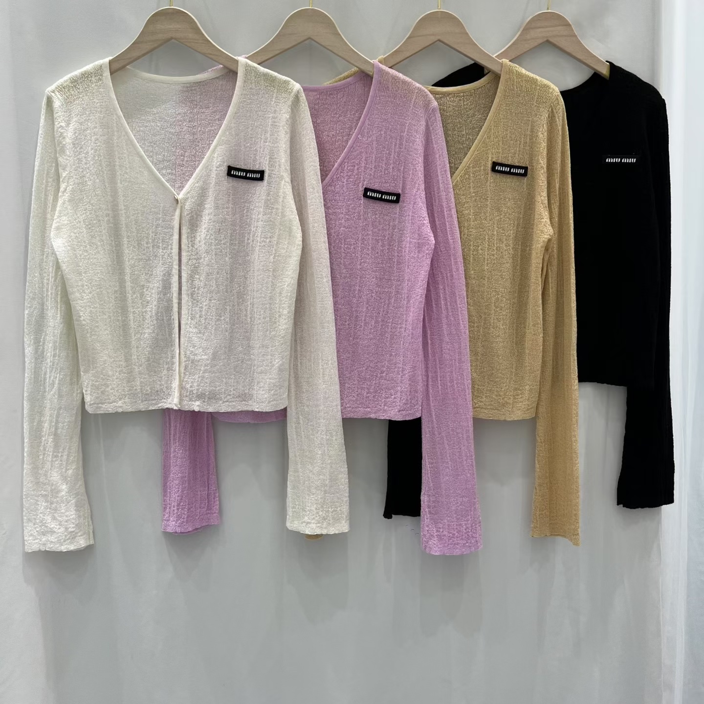 这款衣服是AAAAA 1:1 质量 (非常棒). 使用了和原版一模一样的材料. 商标部分也保持了和缪缪/Miu Miu一样. 图片拍摄是实物衣服拍摄, 您所收到的实物保证和我们图片一模一样.