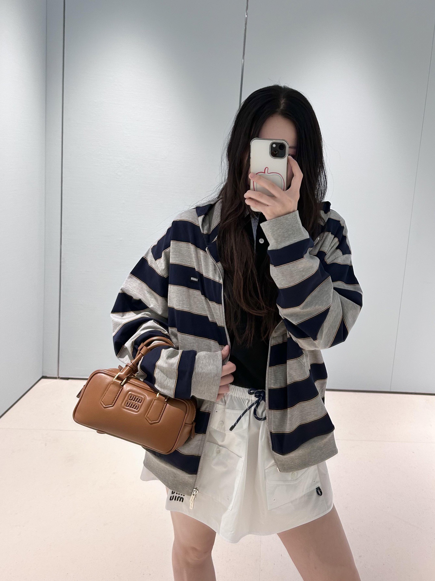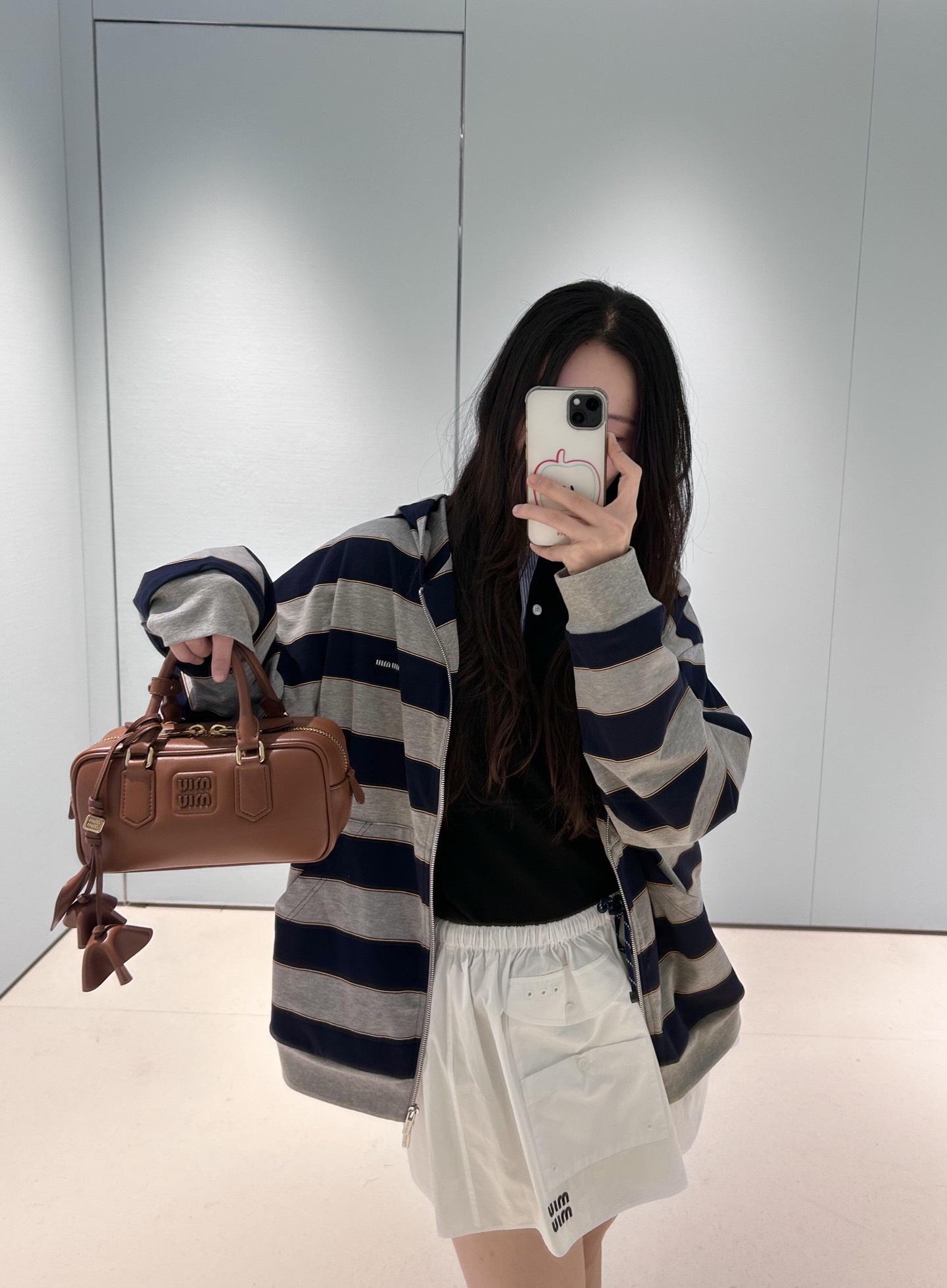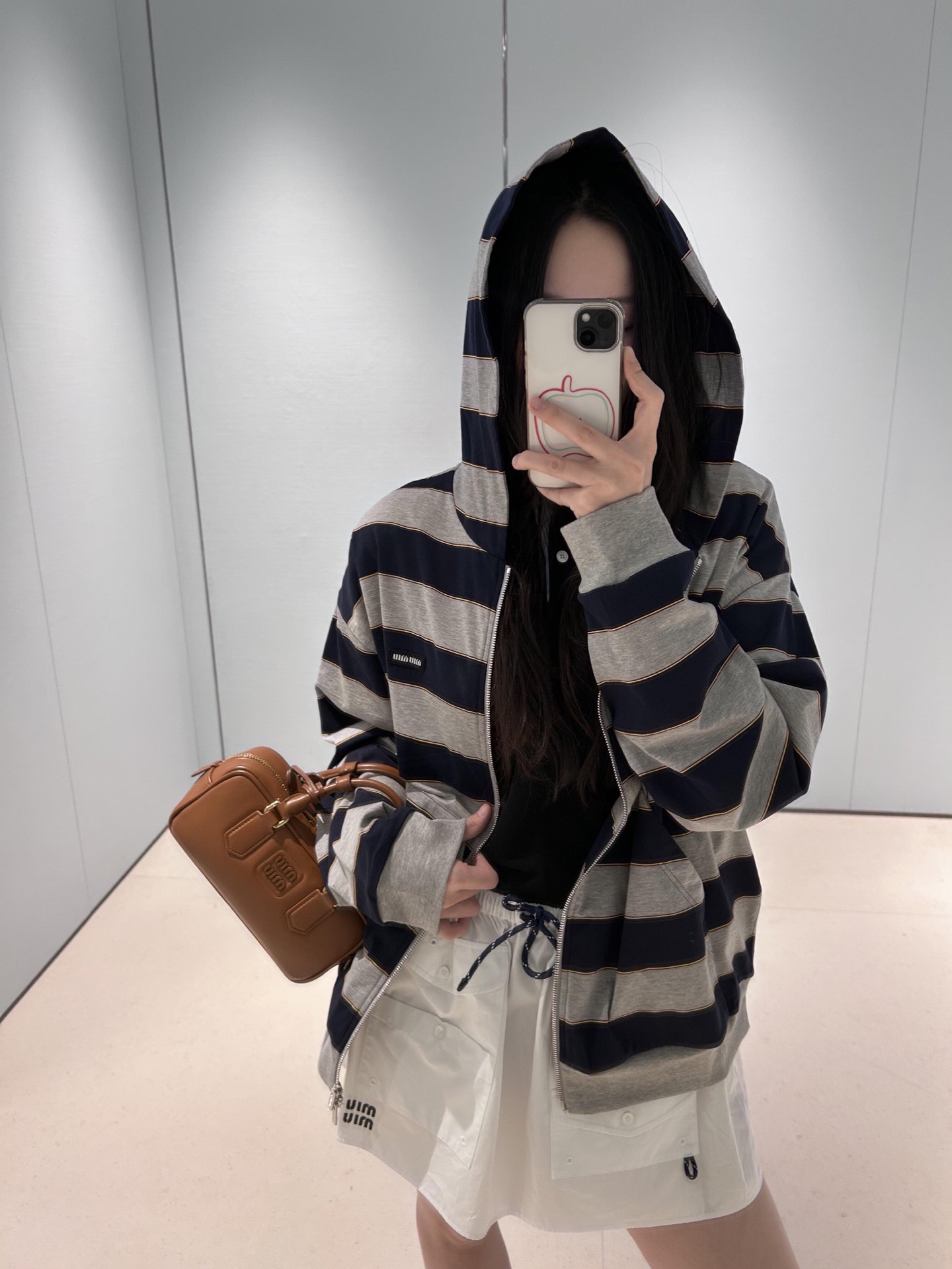 这款衣服是AAAAA 1:1 质量 (非常棒). 使用了和原版一模一样的材料. 商标部分也保持了和缪缪/Miu Miu一样. 图片拍摄是实物衣服拍摄, 您所收到的实物保证和我们图片一模一样.