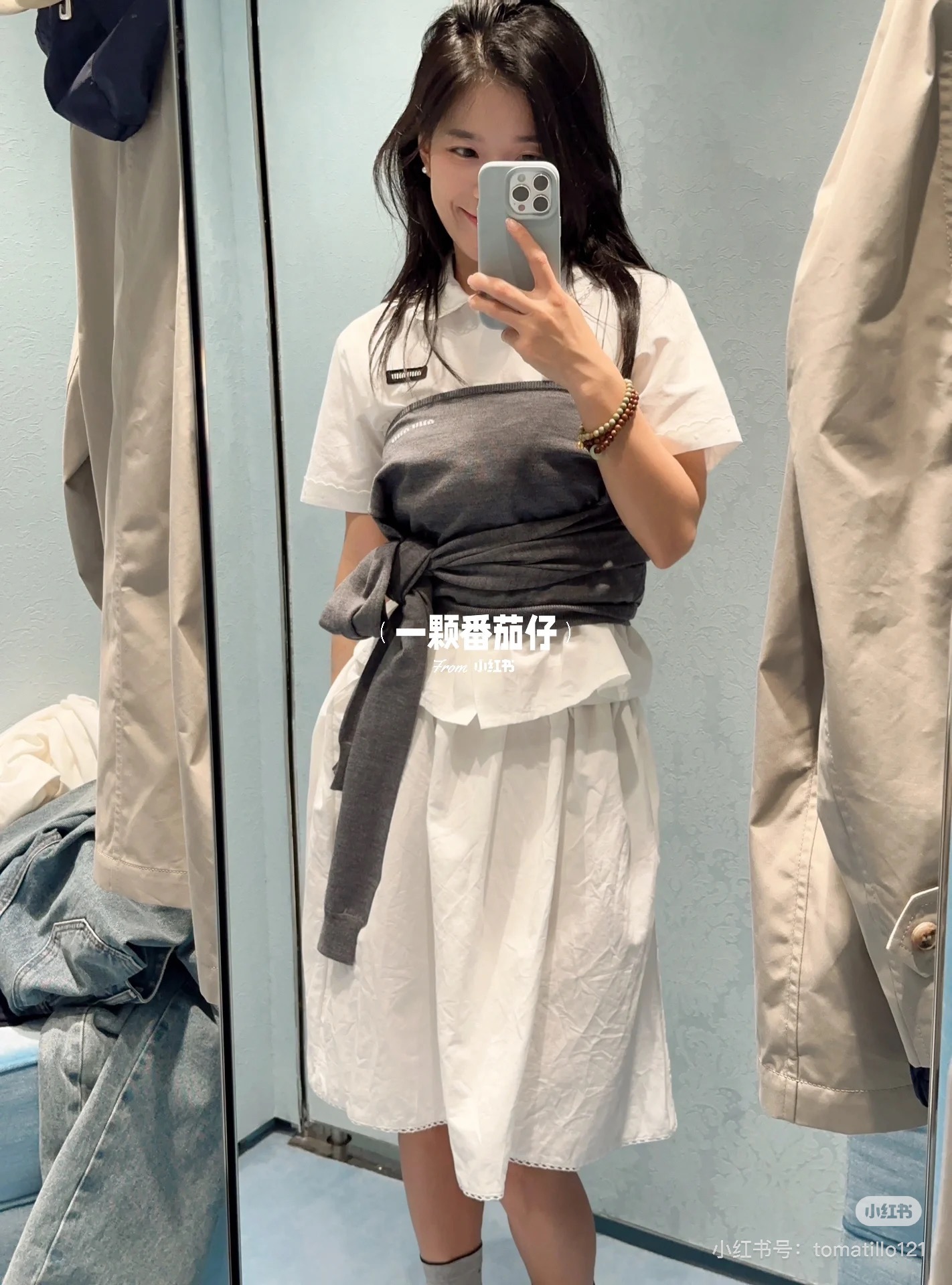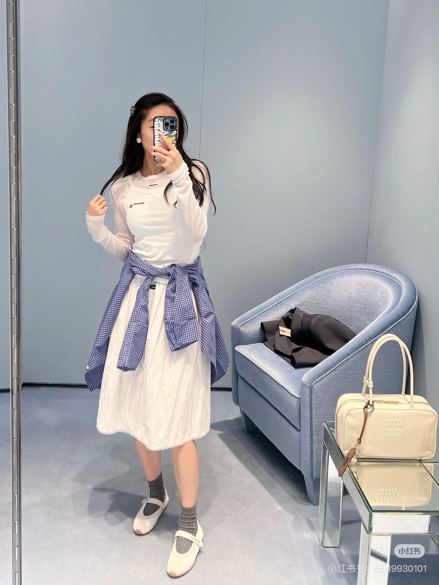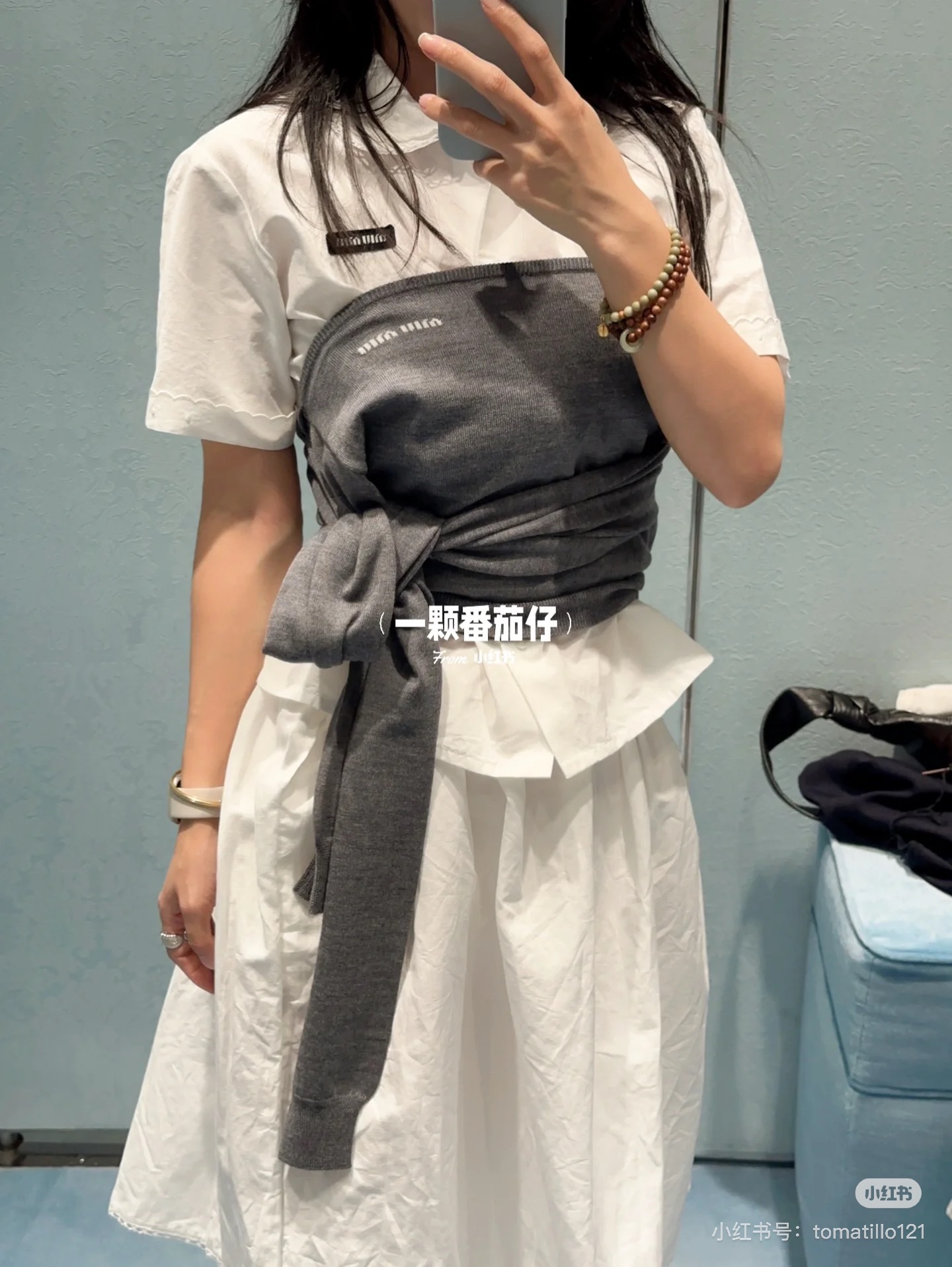 这款衣服是AAAAA 1:1 质量 (非常棒). 使用了和原版一模一样的材料. 商标部分也保持了和缪缪/Miu Miu一样. 图片拍摄是实物衣服拍摄, 您所收到的实物保证和我们图片一模一样.