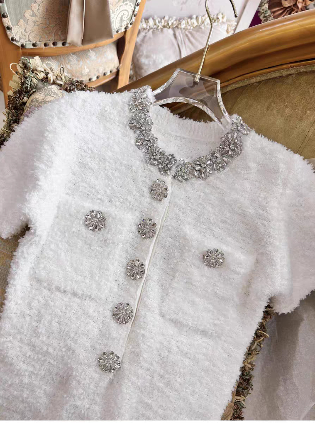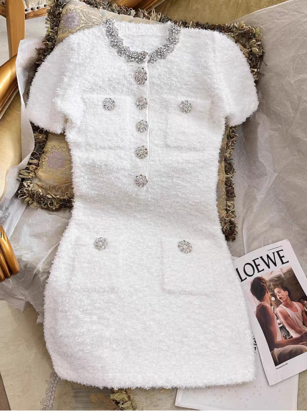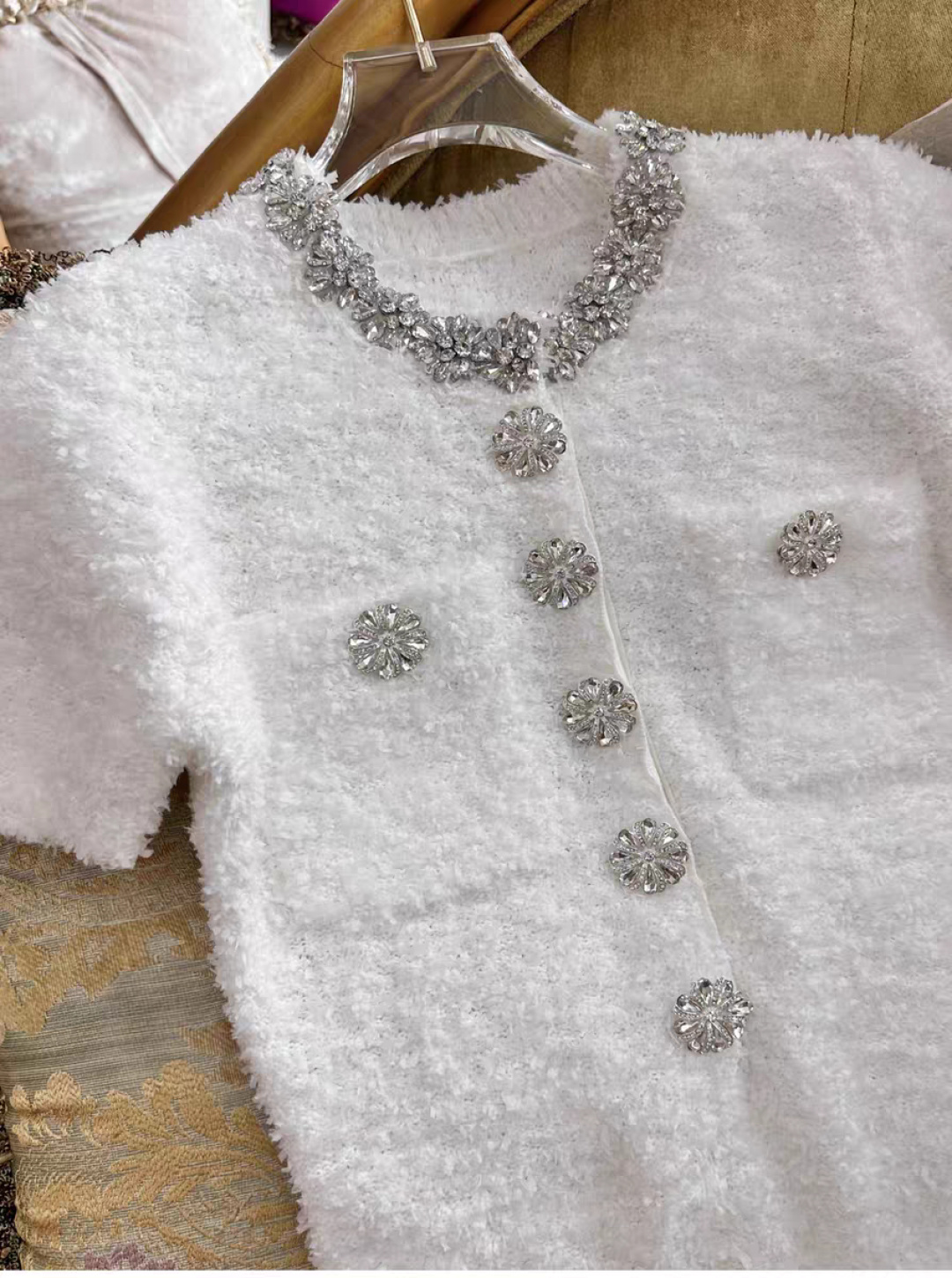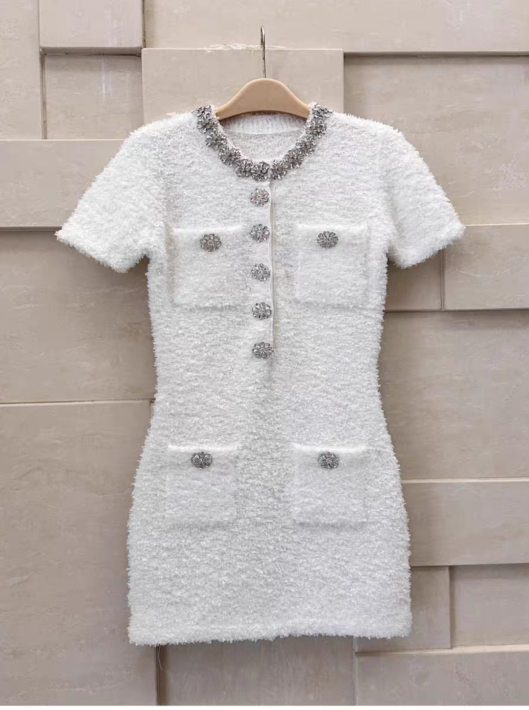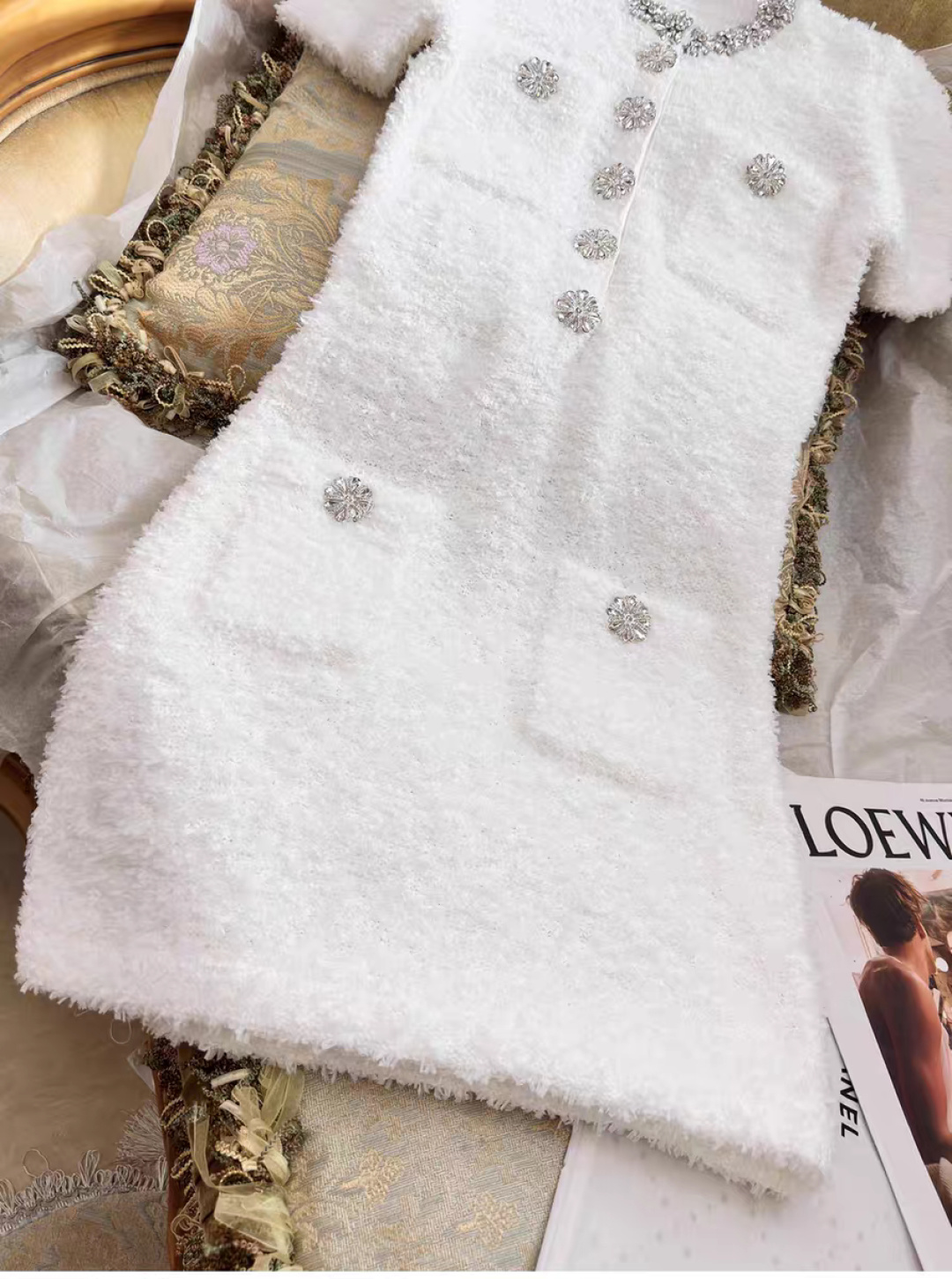 这款衣服是AAAAA 1:1 质量 (非常棒). 使用了和原版一模一样的材料. 商标部分也保持了和缪缪/Miu Miu一样. 图片拍摄是实物衣服拍摄, 您所收到的实物保证和我们图片一模一样.