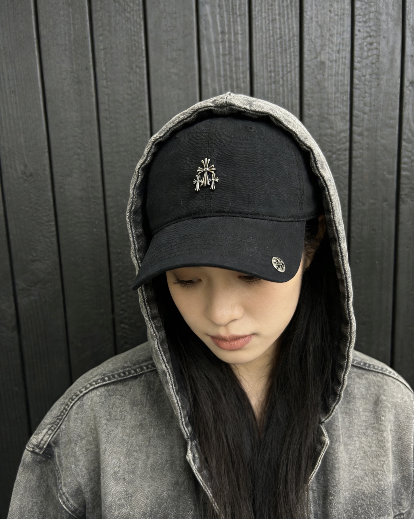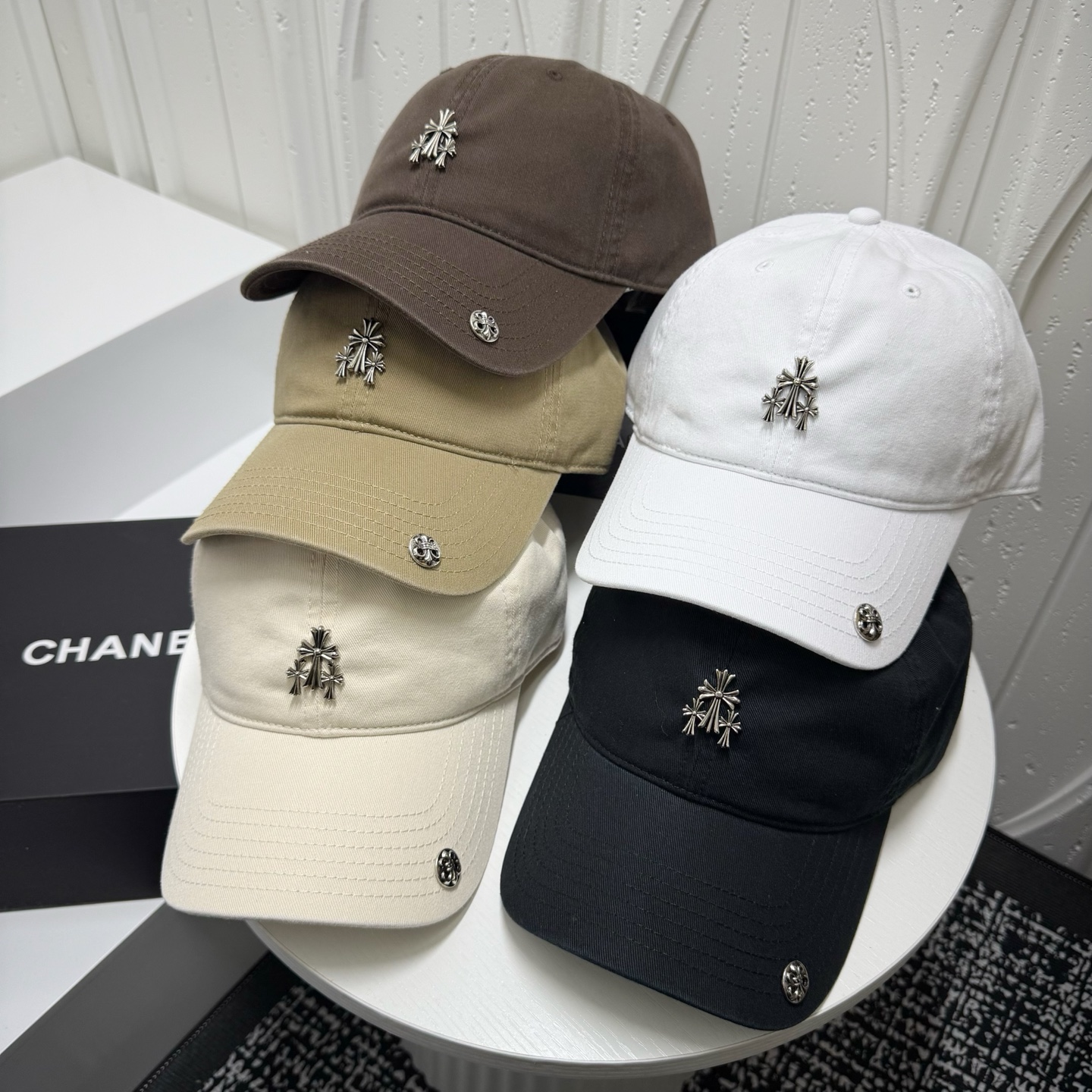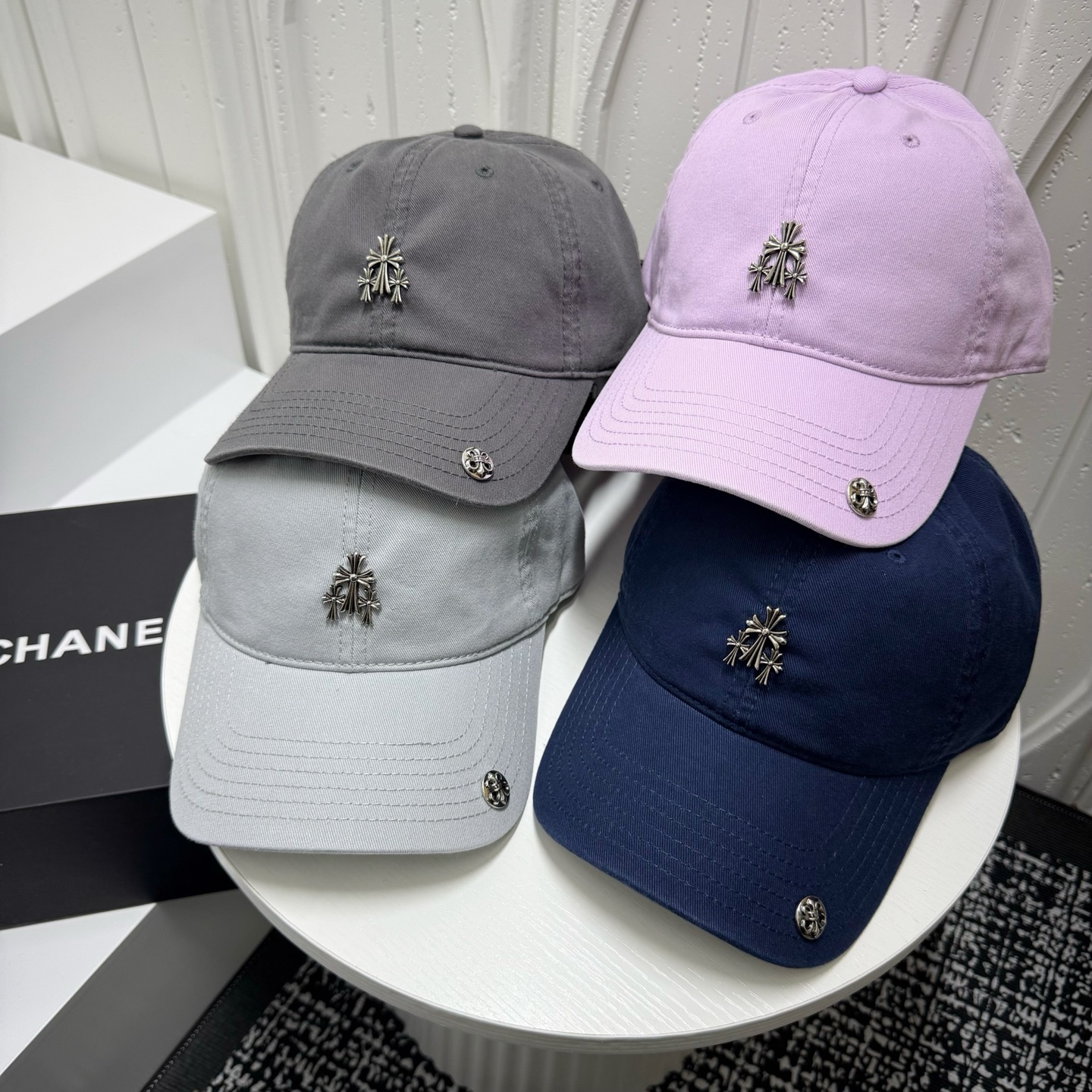 这款帽子是AAAAA 1:1 质量 (非常棒). 使用了和原版一模一样的材料. 商标部分也保持了和克罗心/Chrome Hearts一样. 图片拍摄是实物帽子拍摄, 您所收到的实物保证和我们图片一模一样.