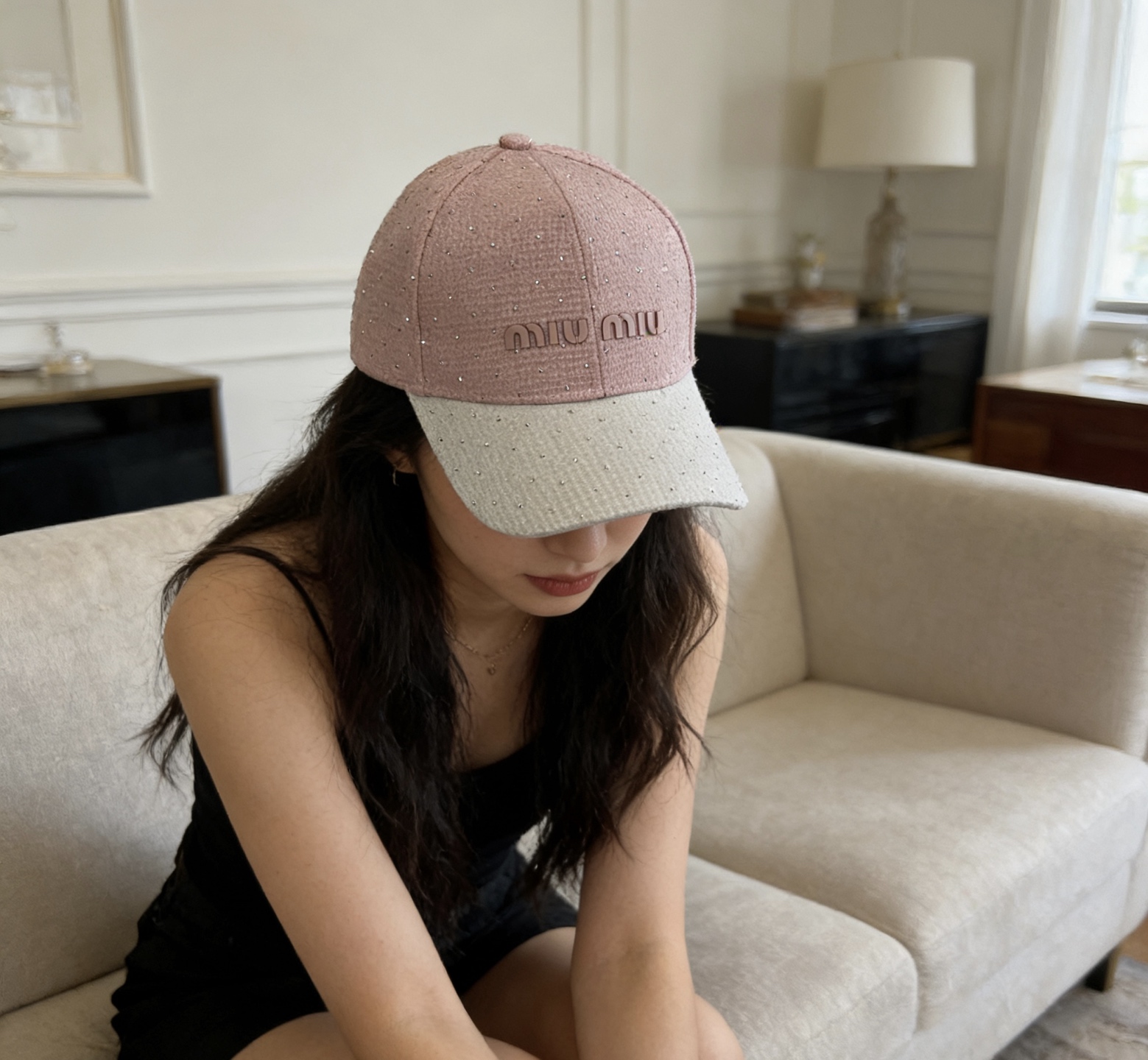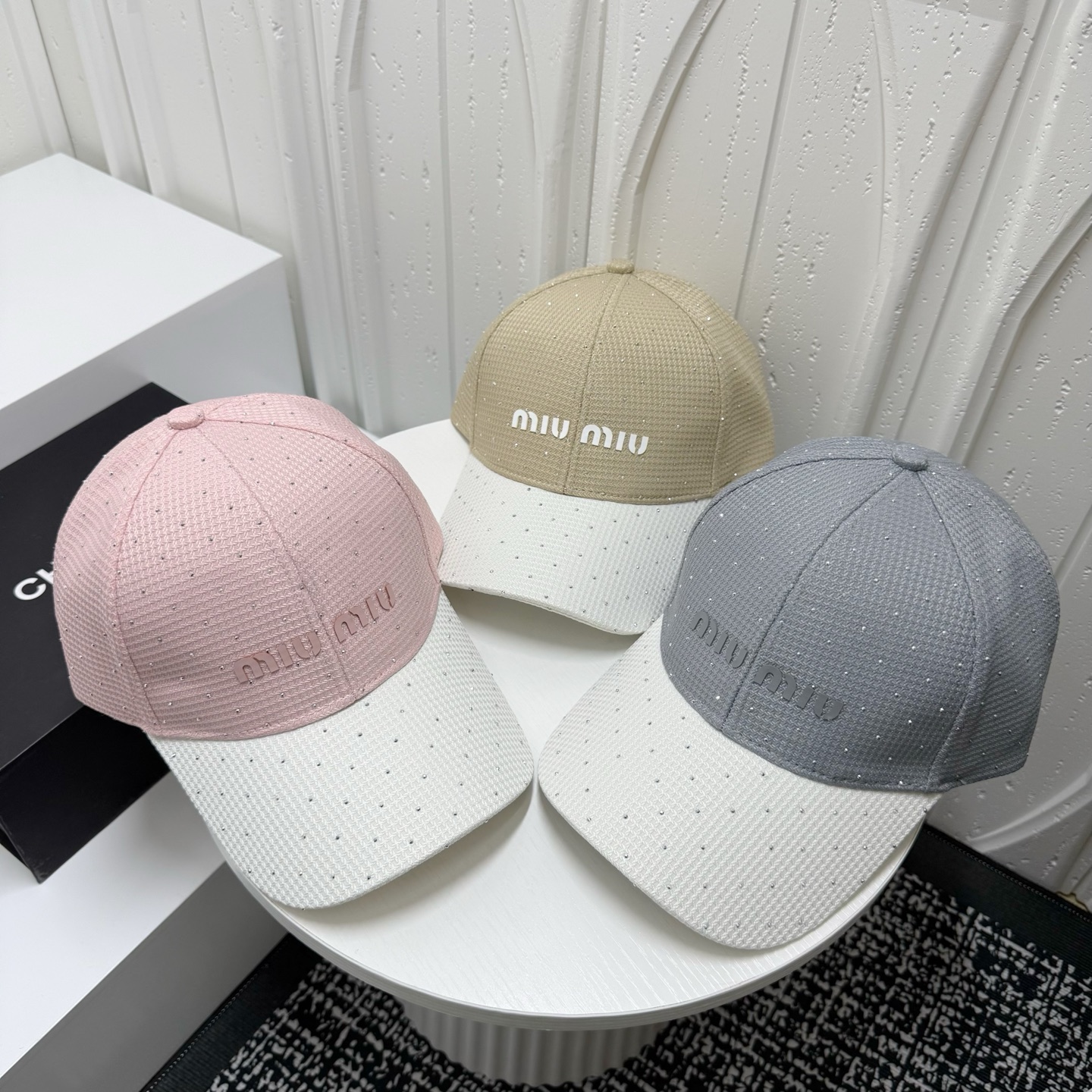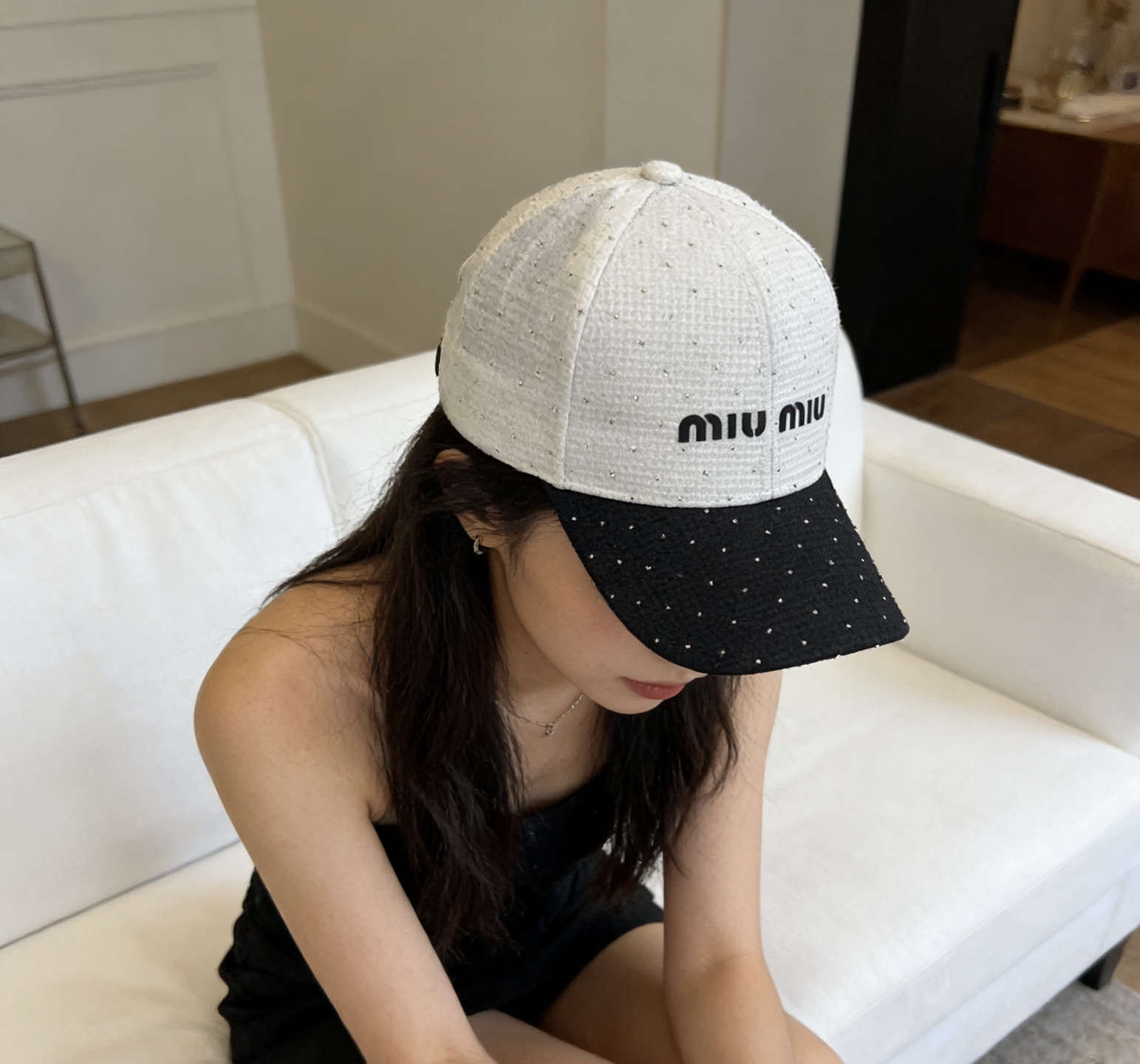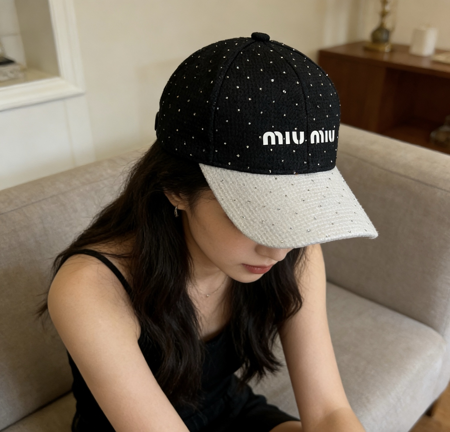 这款帽子是AAAAA 1:1 质量 (非常棒). 使用了和原版一模一样的材料. 商标部分也保持了和缪缪/Miu Miu一样. 图片拍摄是实物帽子拍摄, 您所收到的实物保证和我们图片一模一样.