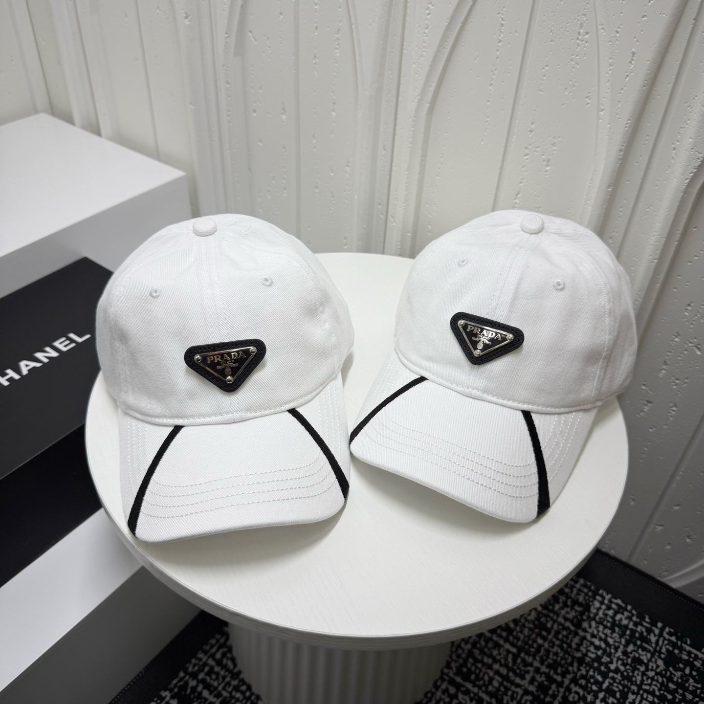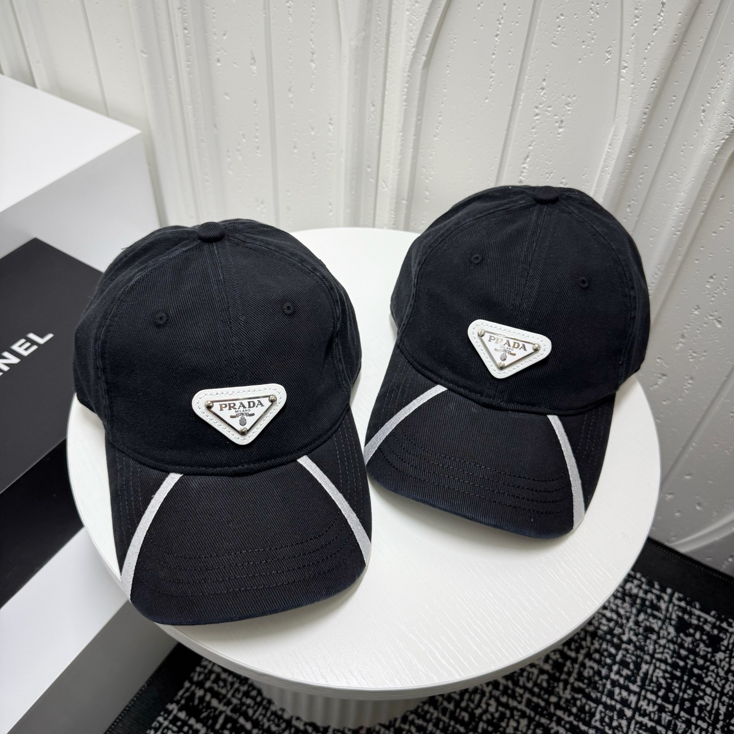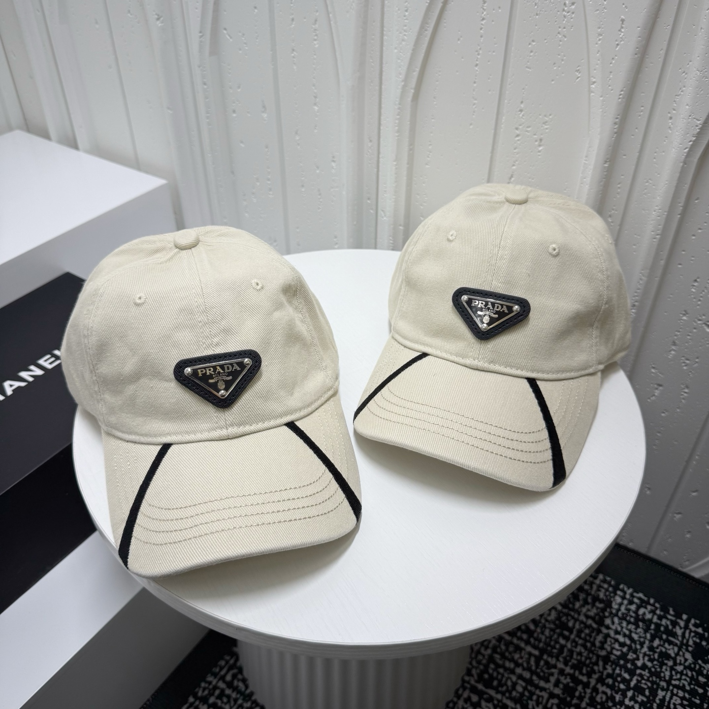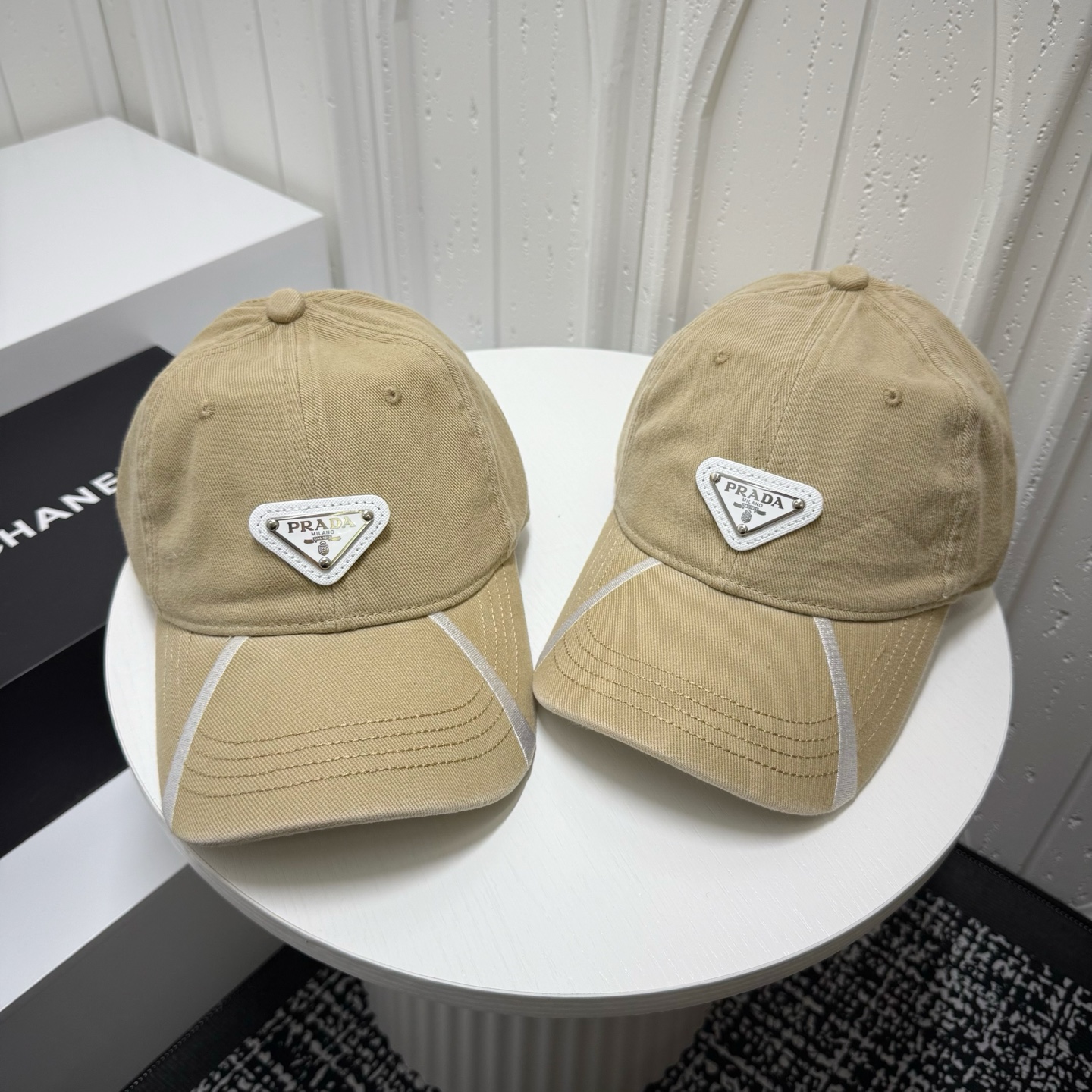 这款帽子是AAAAA 1:1 质量 (非常棒). 使用了和原版一模一样的材料. 商标部分也保持了和普拉达/Prada一样. 图片拍摄是实物帽子拍摄, 您所收到的实物保证和我们图片一模一样.