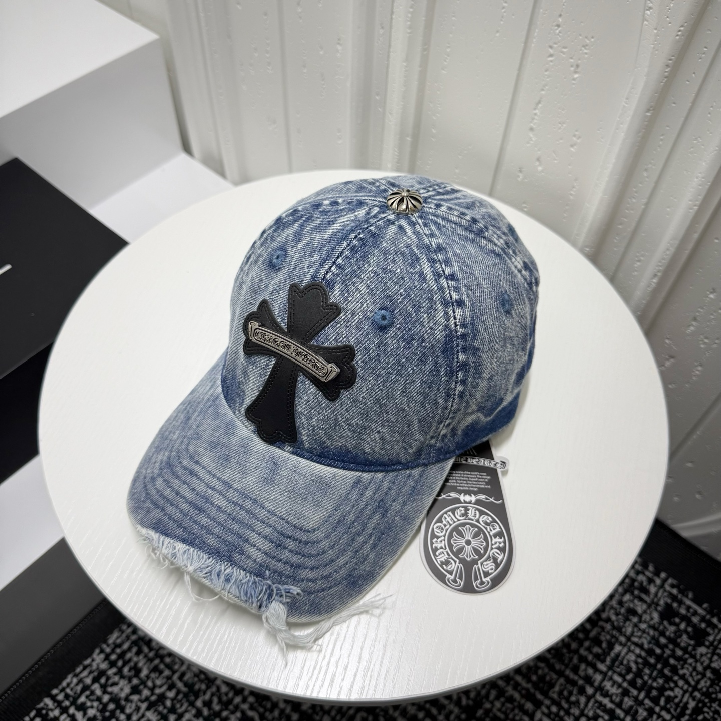 这款帽子是AAAAA 1:1 质量 (非常棒). 使用了和原版一模一样的材料. 商标部分也保持了和克罗心/Chrome Hearts一样. 图片拍摄是实物帽子拍摄, 您所收到的实物保证和我们图片一模一样.