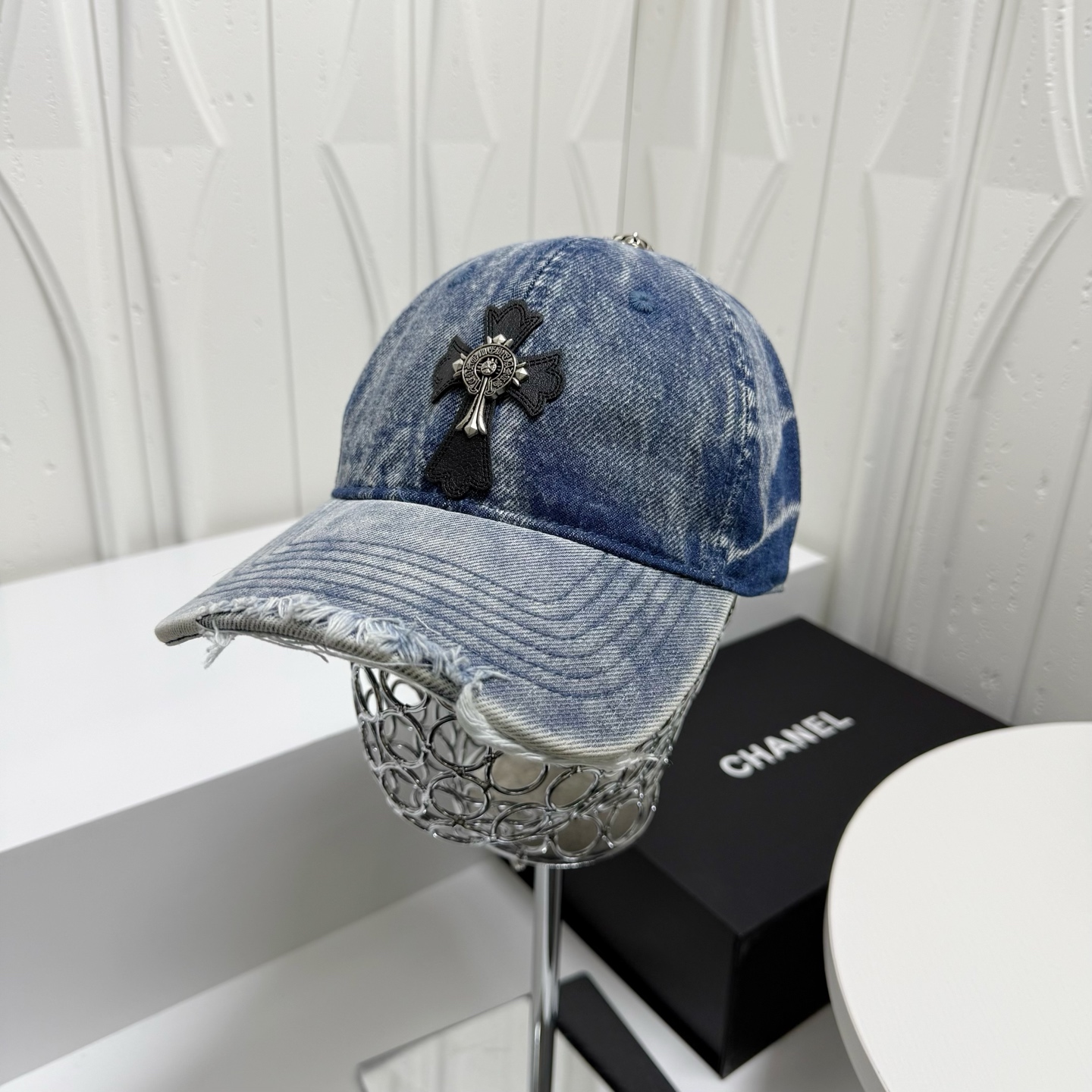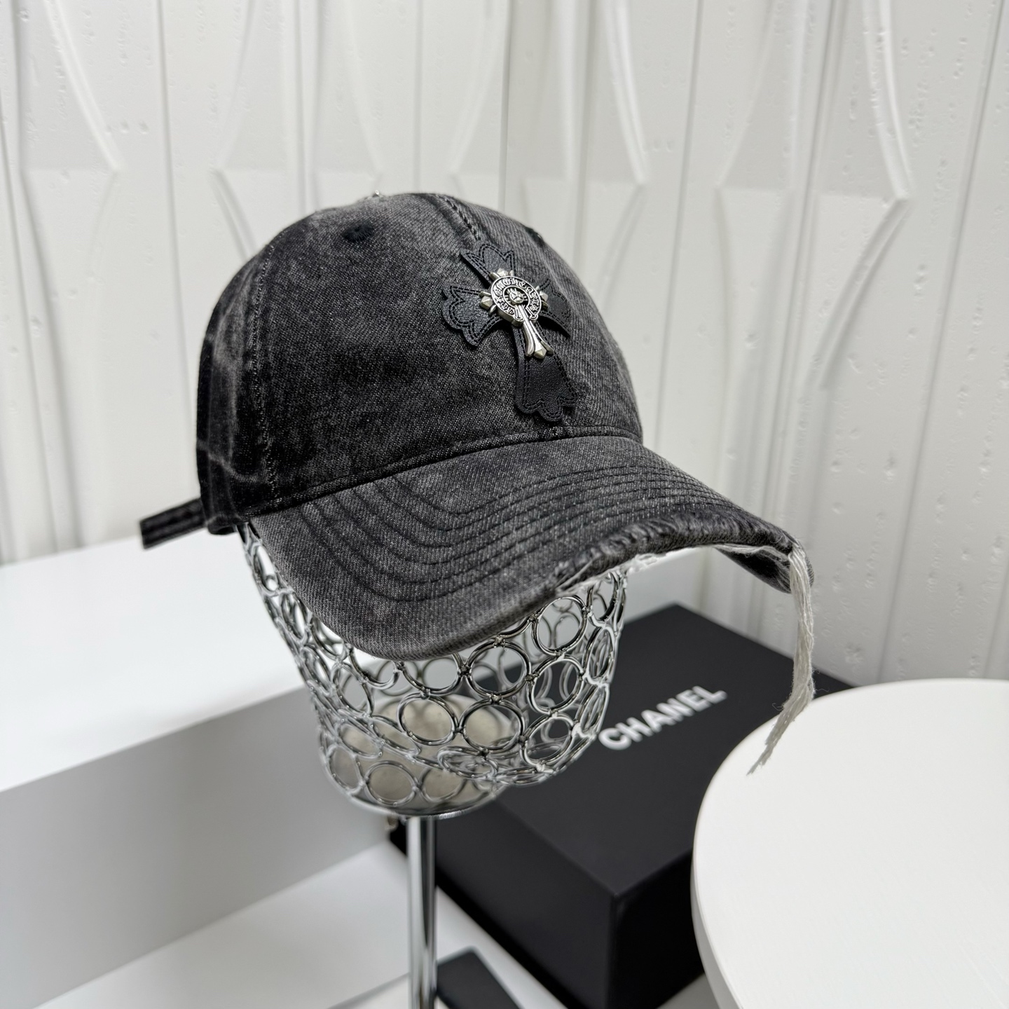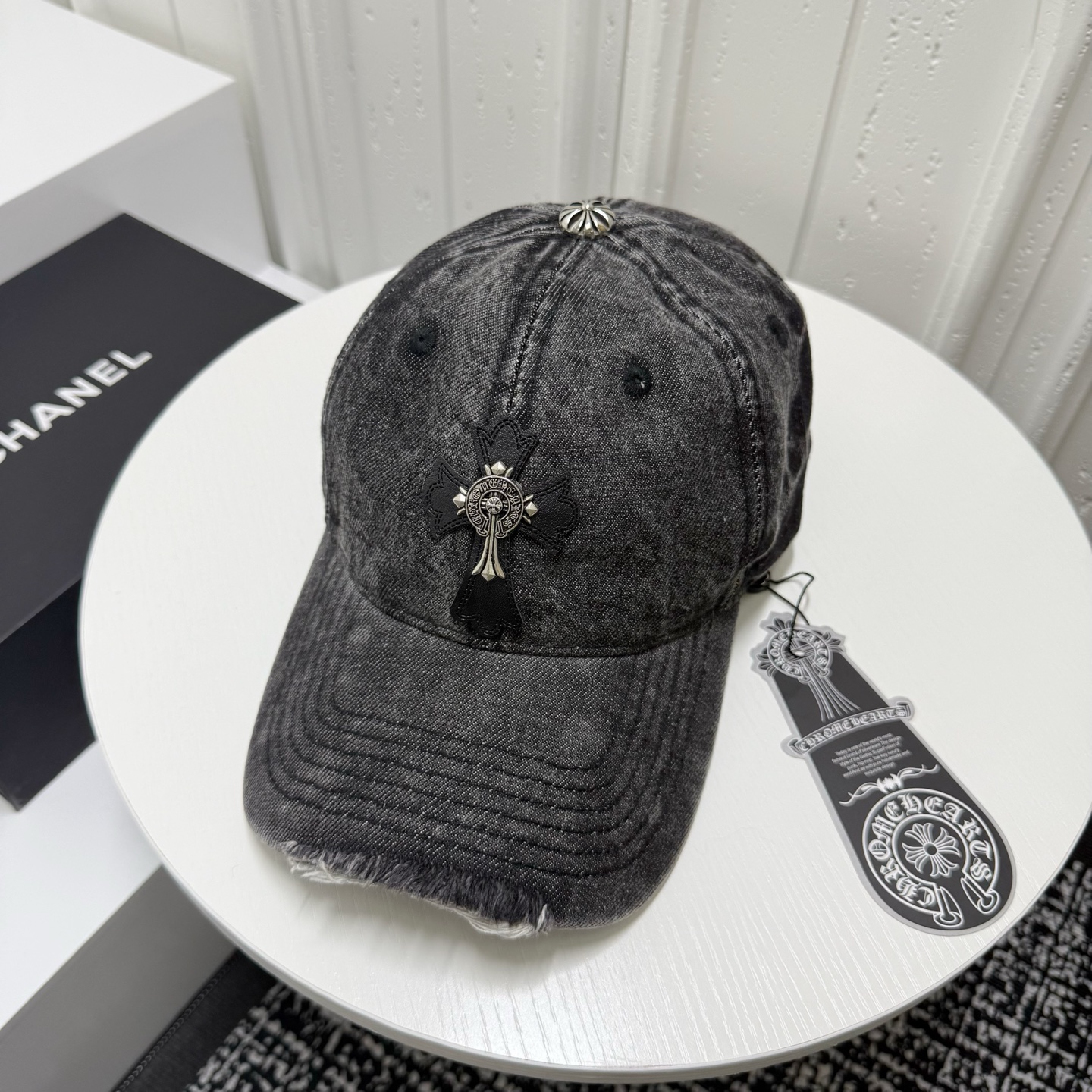 这款帽子是AAAAA 1:1 质量 (非常棒). 使用了和原版一模一样的材料. 商标部分也保持了和克罗心/Chrome Hearts一样. 图片拍摄是实物帽子拍摄, 您所收到的实物保证和我们图片一模一样.