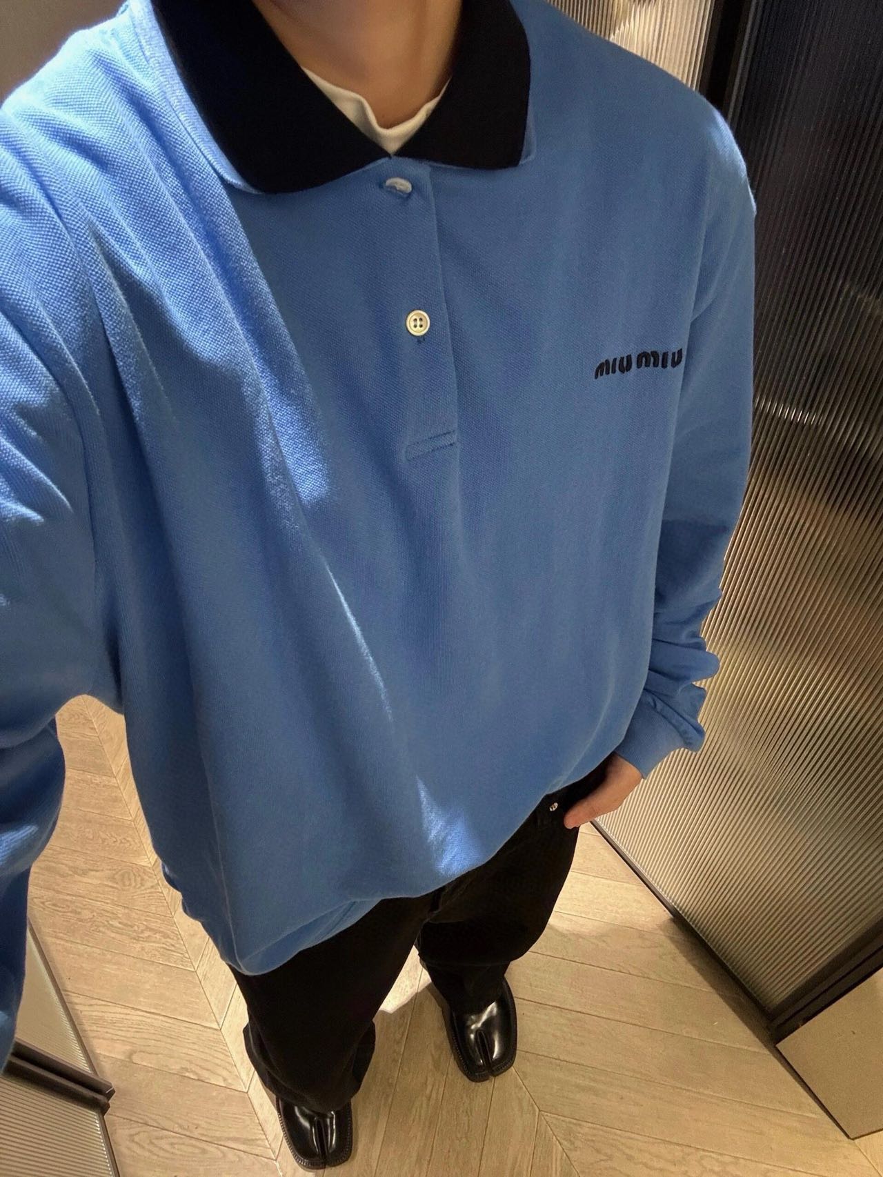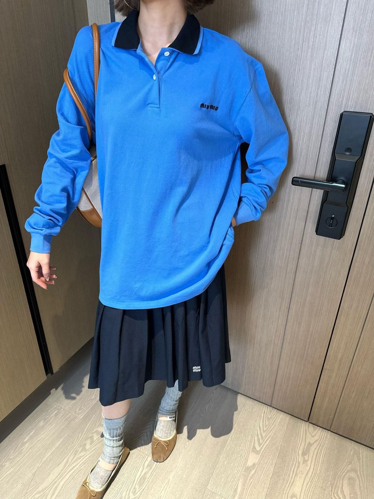 这款衣服是AAAAA 1:1 质量 (非常棒). 使用了和原版一模一样的材料. 商标部分也保持了和缪缪/Miu Miu一样. 图片拍摄是实物衣服拍摄, 您所收到的实物保证和我们图片一模一样.