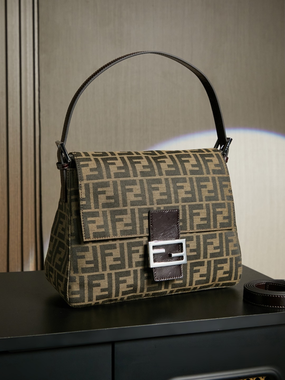 这款包包是AAAAA 1:1 质量 (非常棒). 使用了和原版一模一样的材料. 商标部分也保持了和芬迪/Fendi一样. 图片拍摄是实物包包拍摄, 您所收到的实物保证和我们图片一模一样.