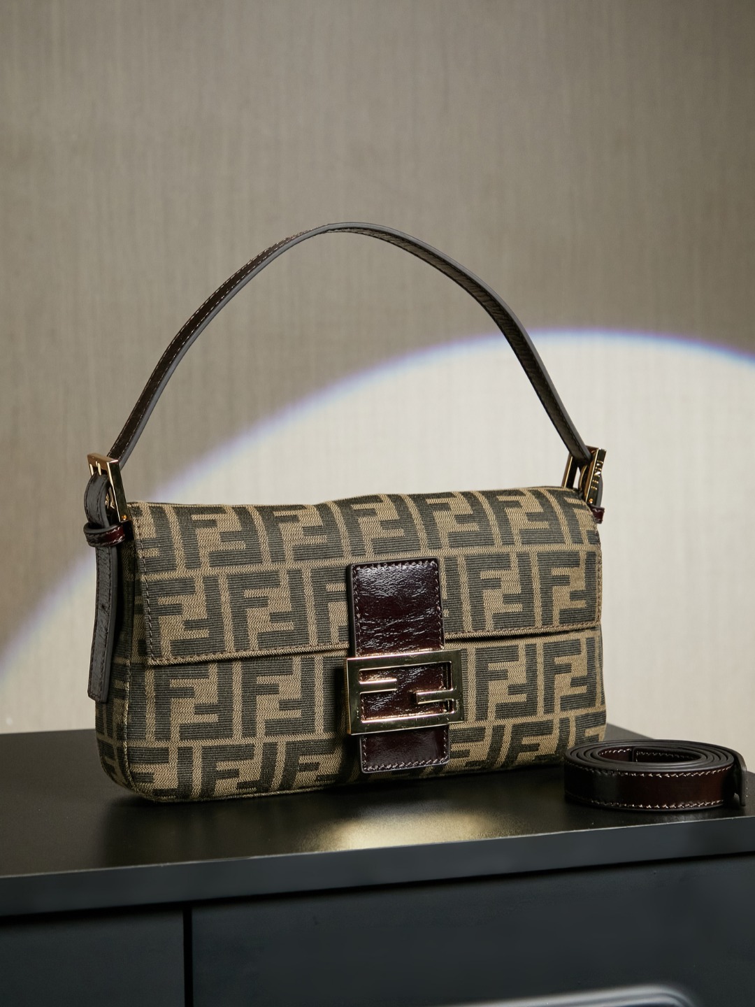 这款包包是AAAAA 1:1 质量 (非常棒). 使用了和原版一模一样的材料. 商标部分也保持了和芬迪/Fendi一样. 图片拍摄是实物包包拍摄, 您所收到的实物保证和我们图片一模一样.