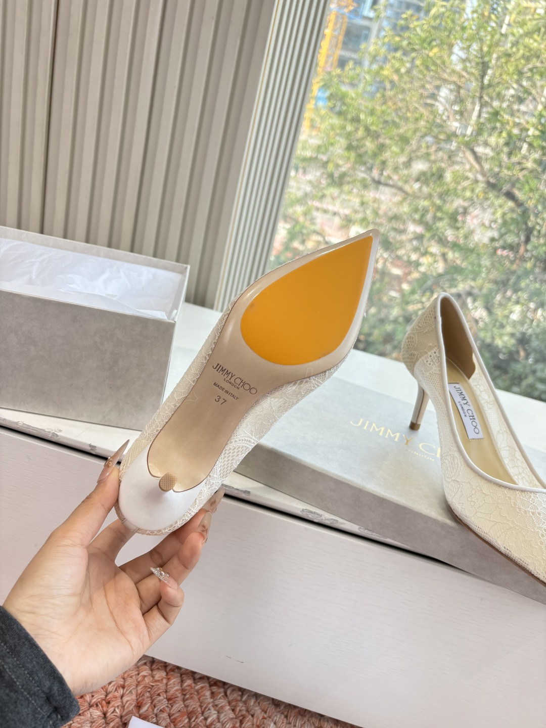 这款鞋子是AAAAA 1:1 质量 (非常棒). 使用了和原版一模一样的材料. 商标部分也保持了和吉米乔/JIMMY CHOO一样. 图片拍摄是实物鞋子拍摄, 您所收到的实物保证和我们图片一模一样.