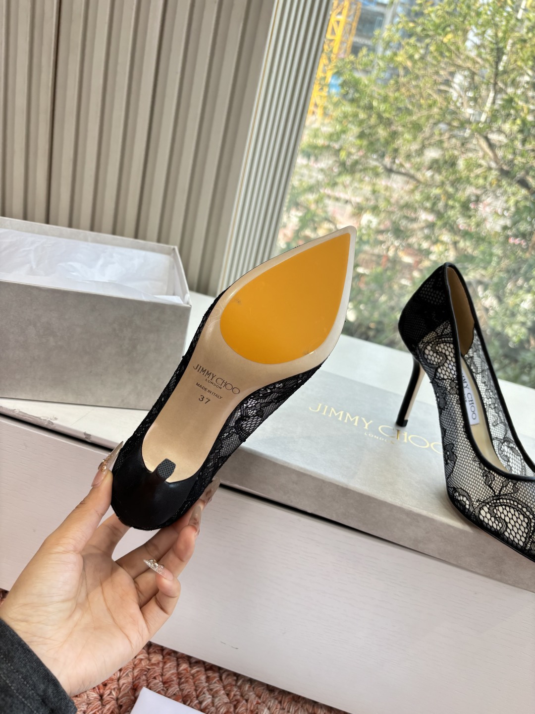 这款鞋子是AAAAA 1:1 质量 (非常棒). 使用了和原版一模一样的材料. 商标部分也保持了和吉米乔/JIMMY CHOO一样. 图片拍摄是实物鞋子拍摄, 您所收到的实物保证和我们图片一模一样.