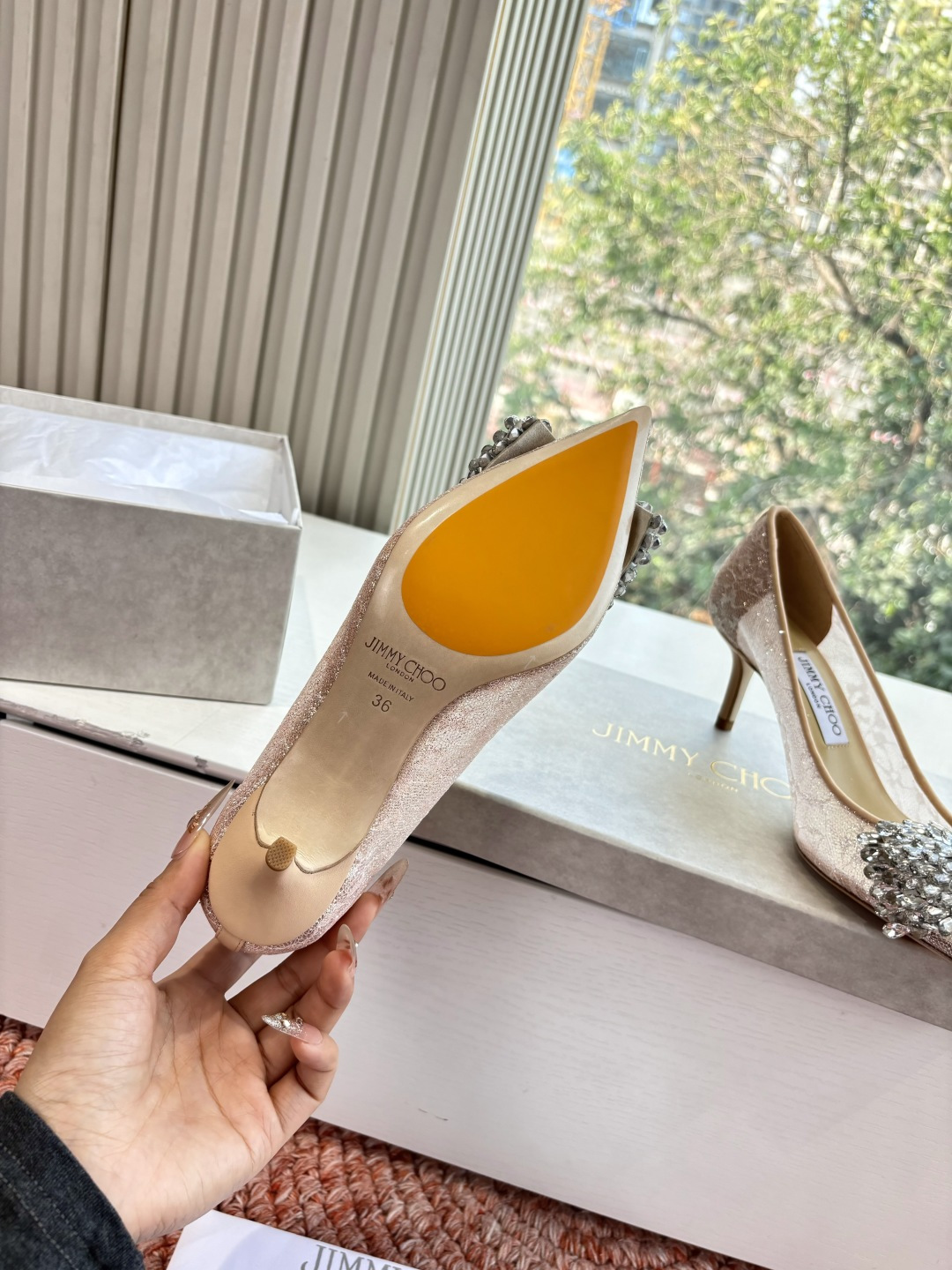 这款鞋子是AAAAA 1:1 质量 (非常棒). 使用了和原版一模一样的材料. 商标部分也保持了和吉米乔/JIMMY CHOO一样. 图片拍摄是实物鞋子拍摄, 您所收到的实物保证和我们图片一模一样.