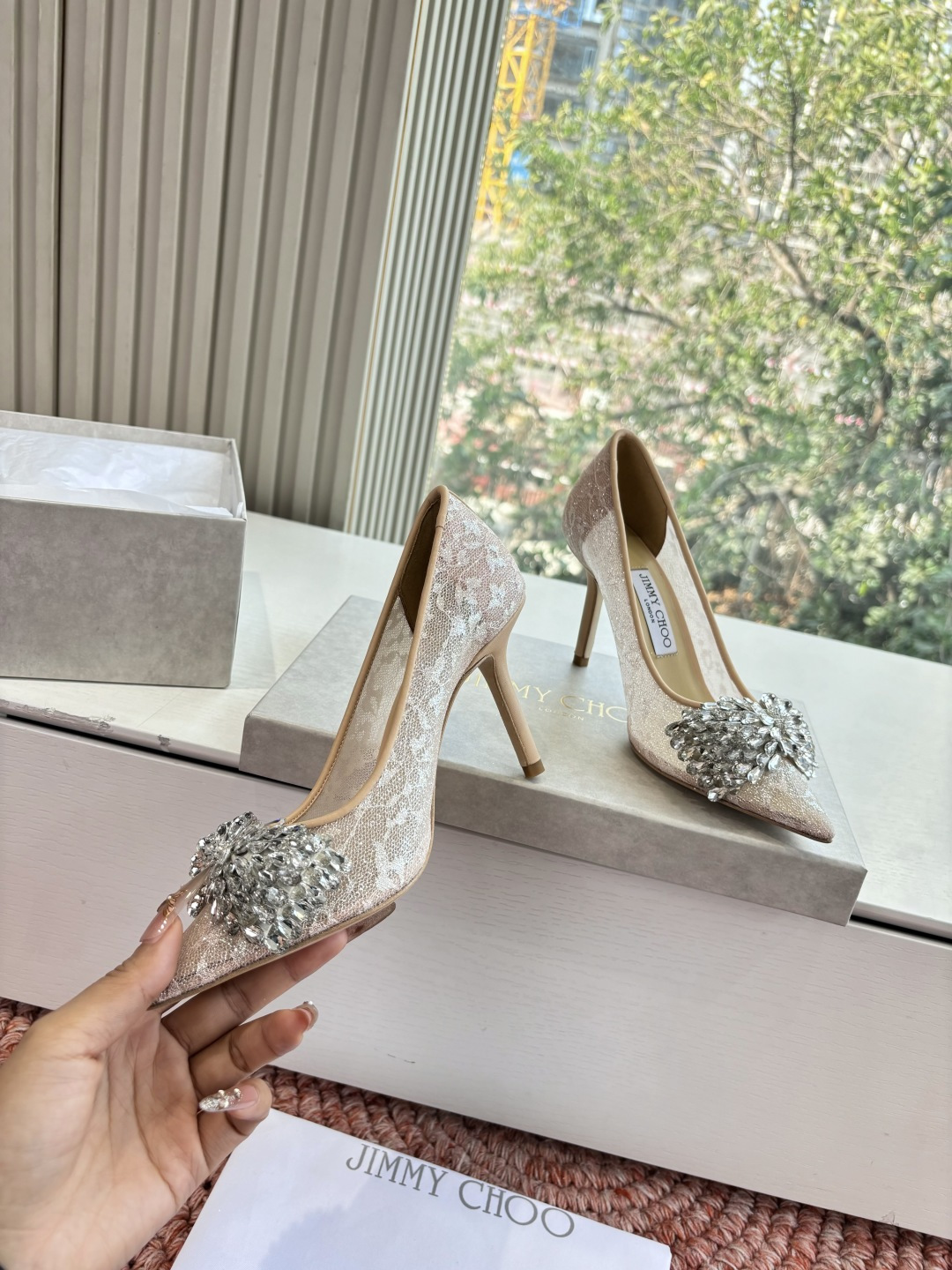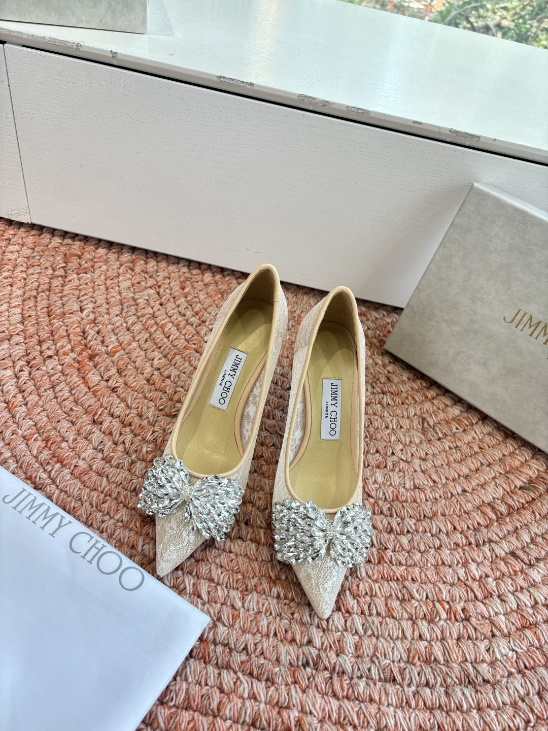 这款鞋子是AAAAA 1:1 质量 (非常棒). 使用了和原版一模一样的材料. 商标部分也保持了和吉米乔/JIMMY CHOO一样. 图片拍摄是实物鞋子拍摄, 您所收到的实物保证和我们图片一模一样.
