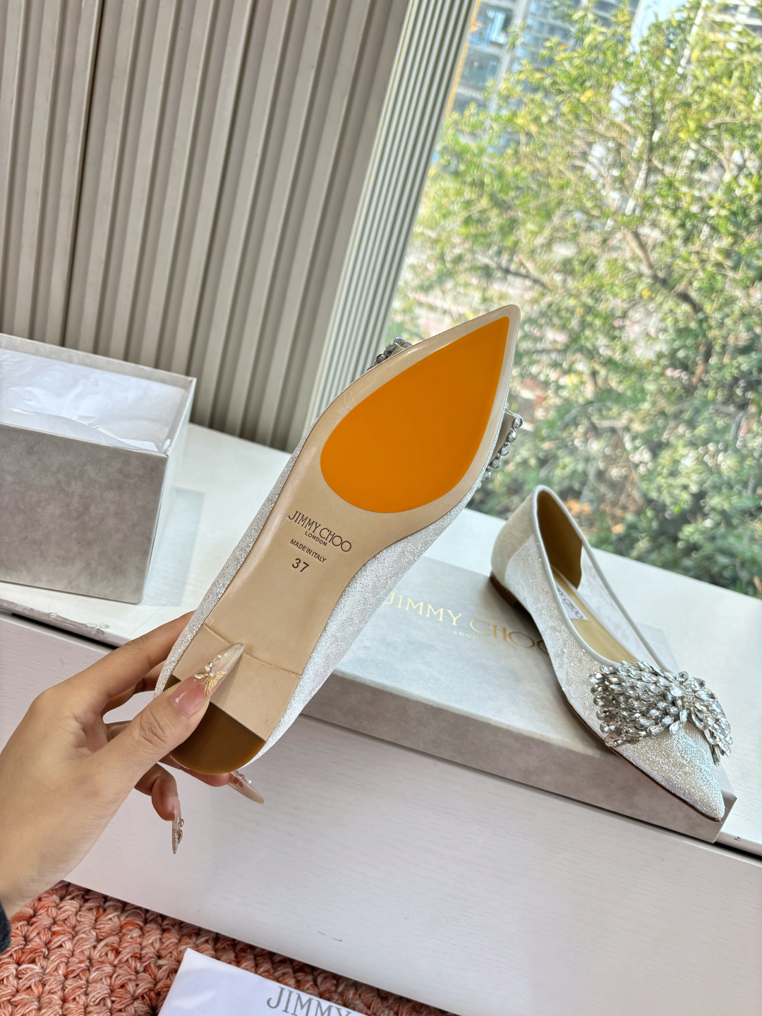 这款鞋子是AAAAA 1:1 质量 (非常棒). 使用了和原版一模一样的材料. 商标部分也保持了和吉米乔/JIMMY CHOO一样. 图片拍摄是实物鞋子拍摄, 您所收到的实物保证和我们图片一模一样.