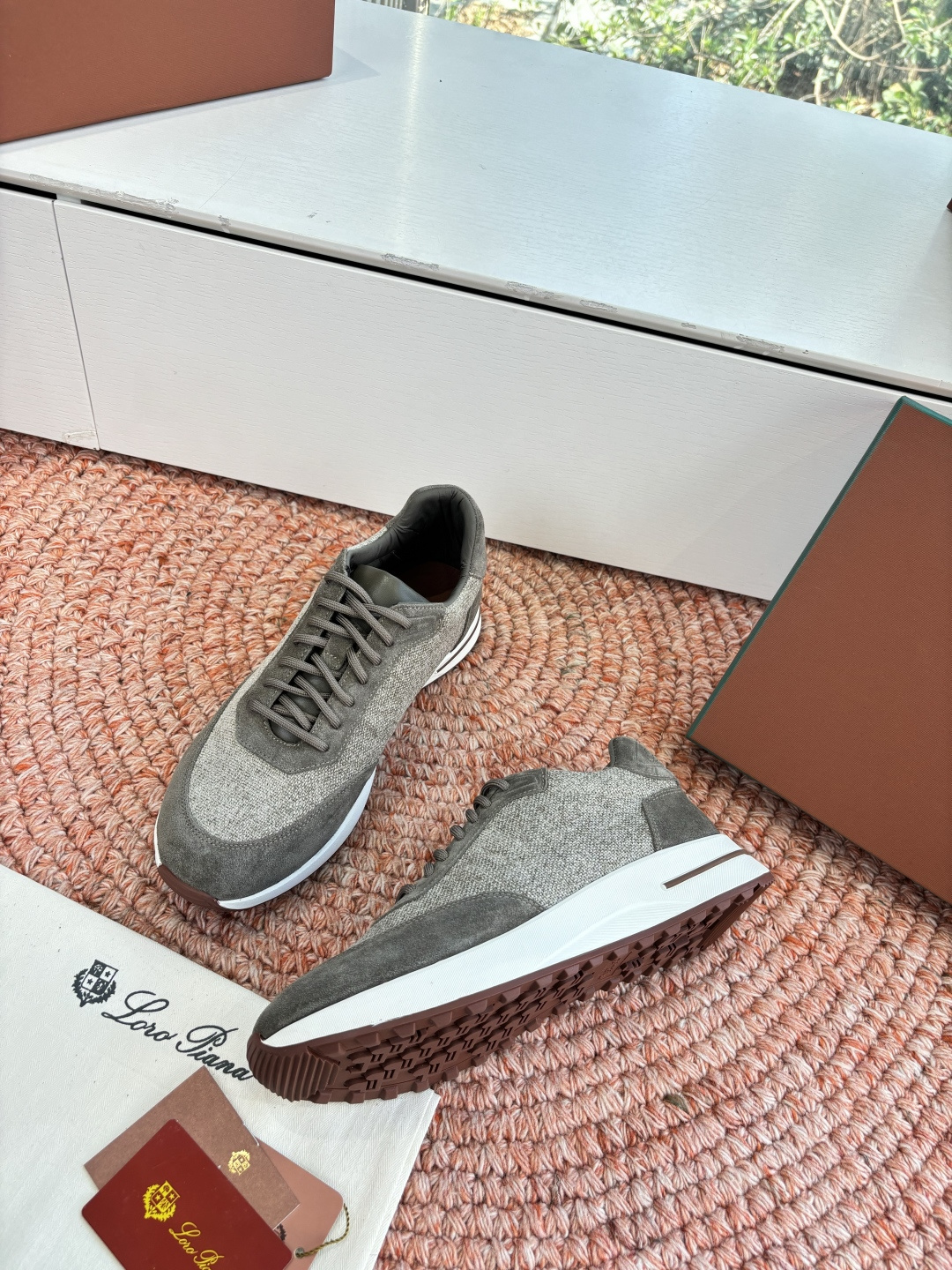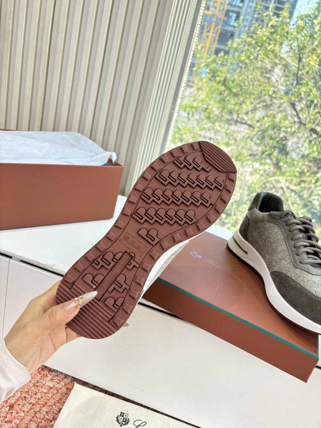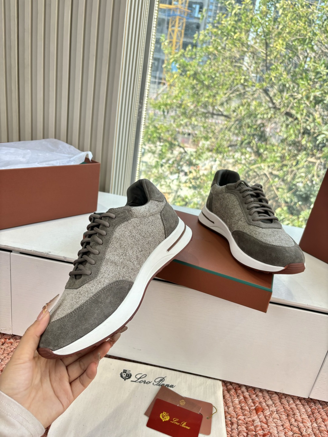 这款鞋子是AAAAA 1:1 质量 (非常棒). 使用了和原版一模一样的材料. 商标部分也保持了和洛罗皮亚纳/Loro Piana一样. 图片拍摄是实物鞋子拍摄, 您所收到的实物保证和我们图片一模一样.