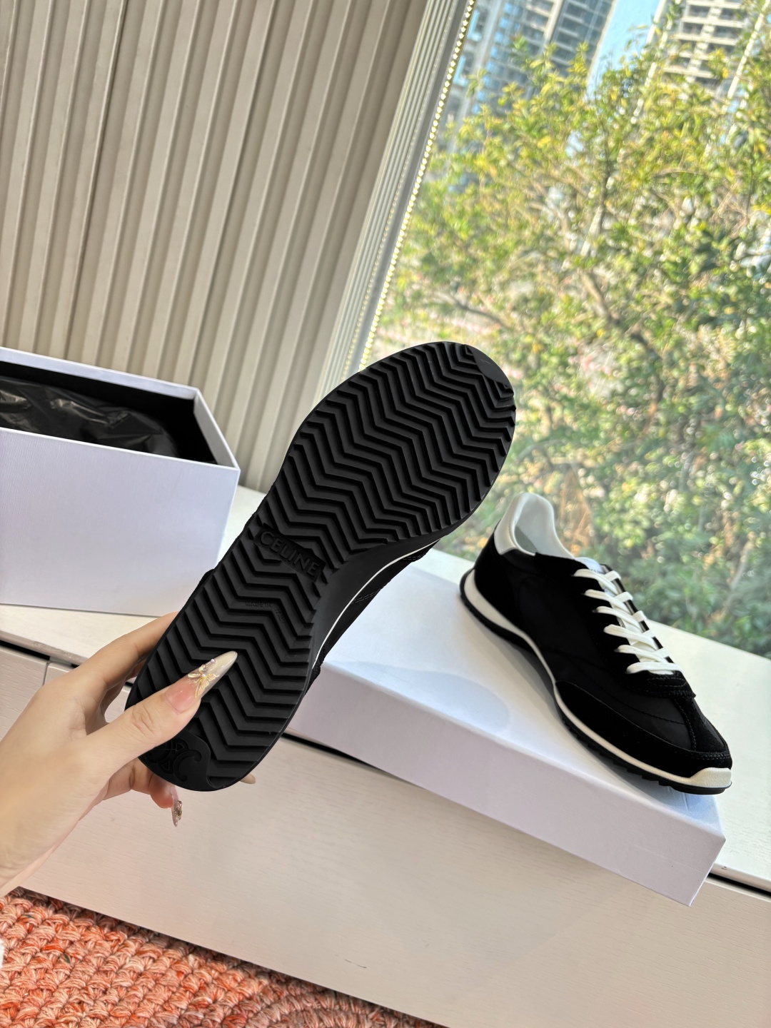这款鞋子是AAAAA 1:1 质量 (非常棒). 使用了和原版一模一样的材料. 商标部分也保持了和思琳/Celine一样. 图片拍摄是实物鞋子拍摄, 您所收到的实物保证和我们图片一模一样.