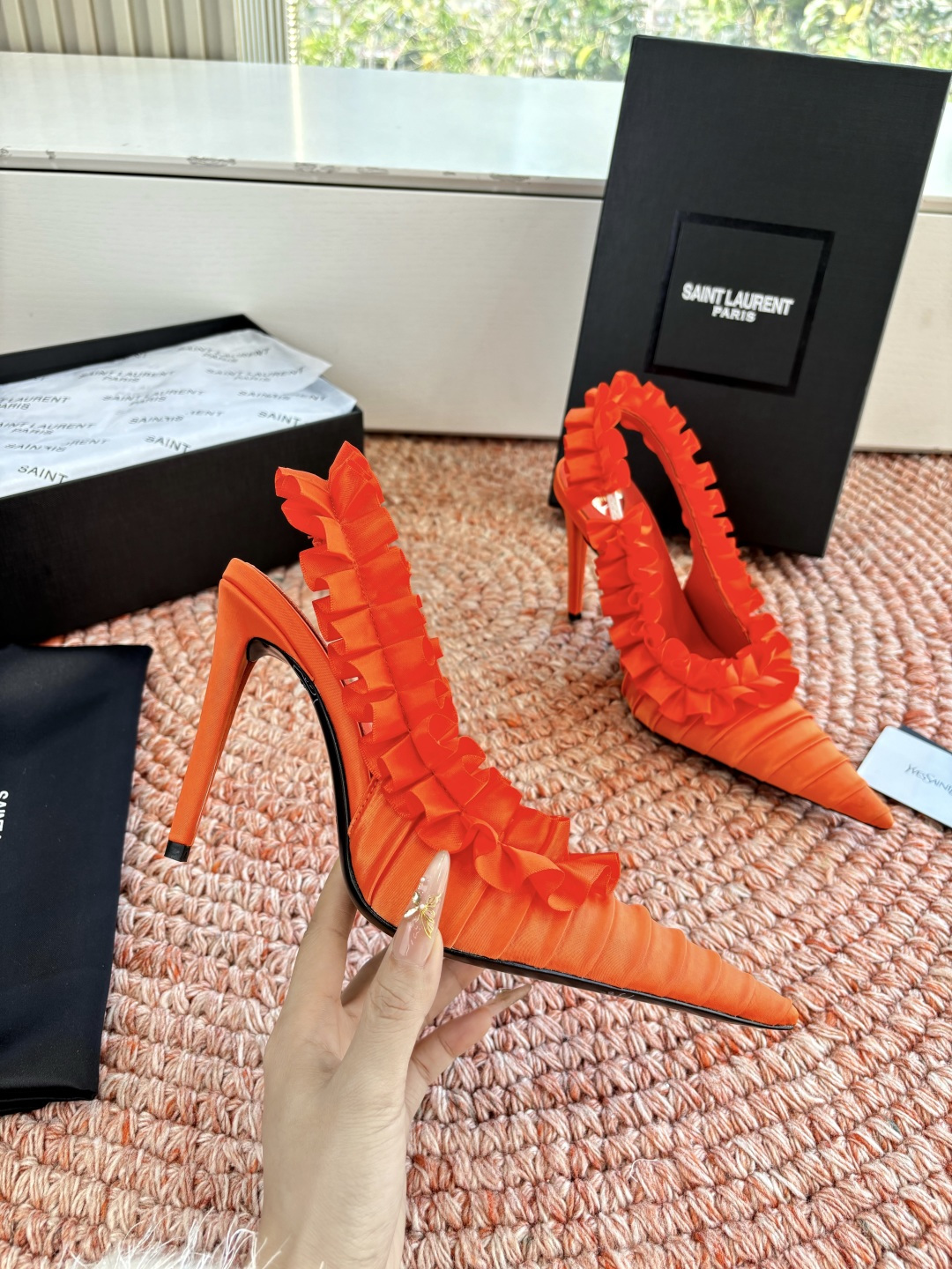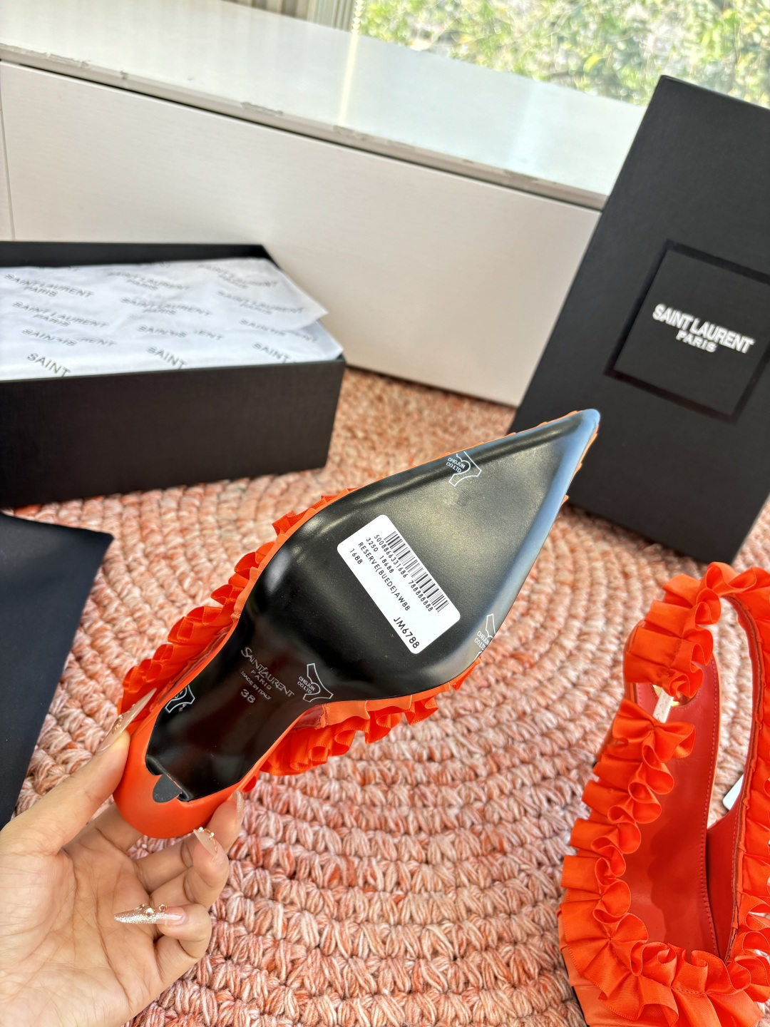 这款鞋子是AAAAA 1:1 质量 (非常棒). 使用了和原版一模一样的材料. 商标部分也保持了和圣罗兰/Saint Laurent一样. 图片拍摄是实物鞋子拍摄, 您所收到的实物保证和我们图片一模一样.