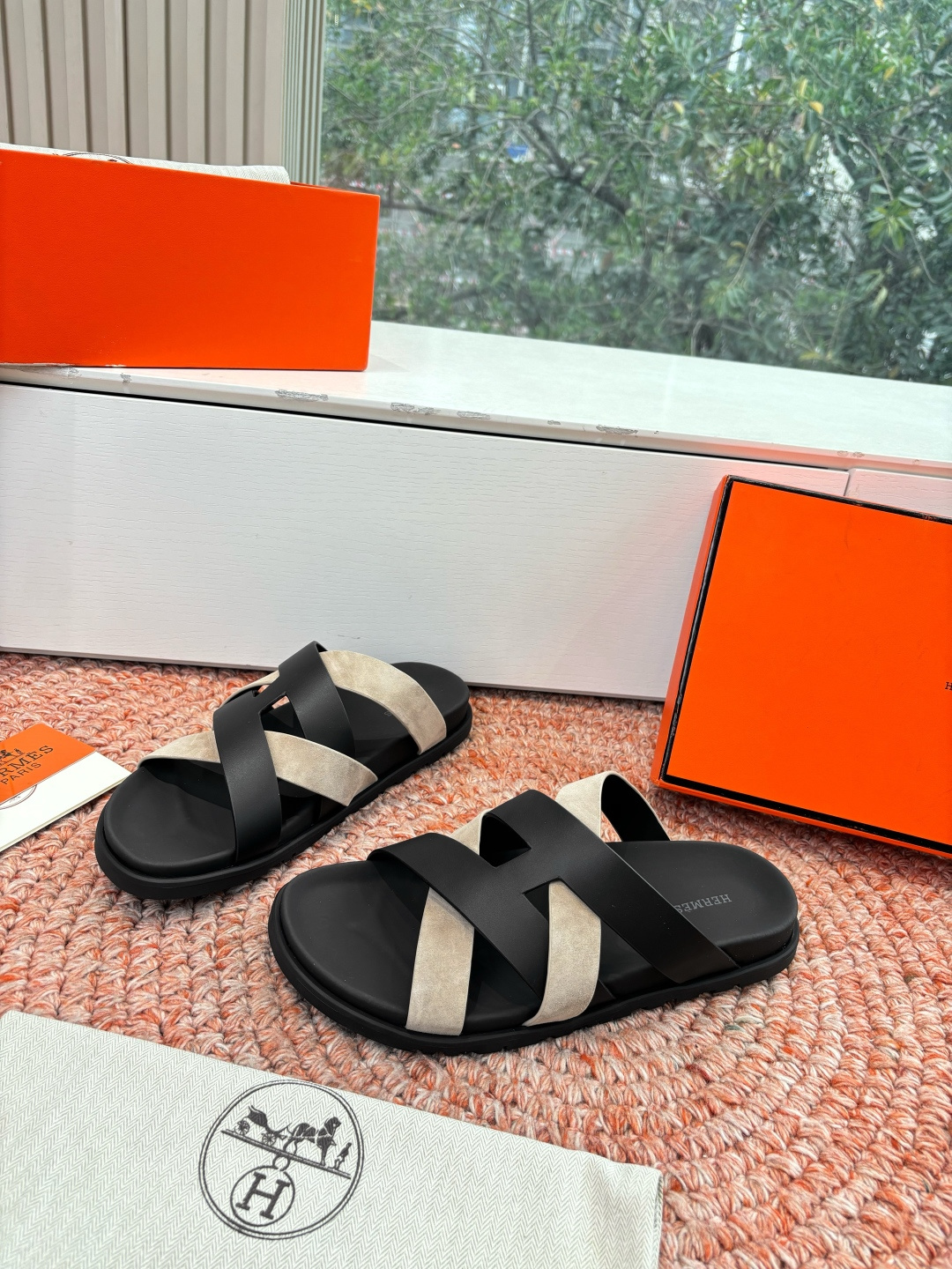 这款鞋子是AAAAA 1:1 质量 (非常棒). 使用了和原版一模一样的材料. 商标部分也保持了和爱马仕/Hermes一样. 图片拍摄是实物鞋子拍摄, 您所收到的实物保证和我们图片一模一样.
