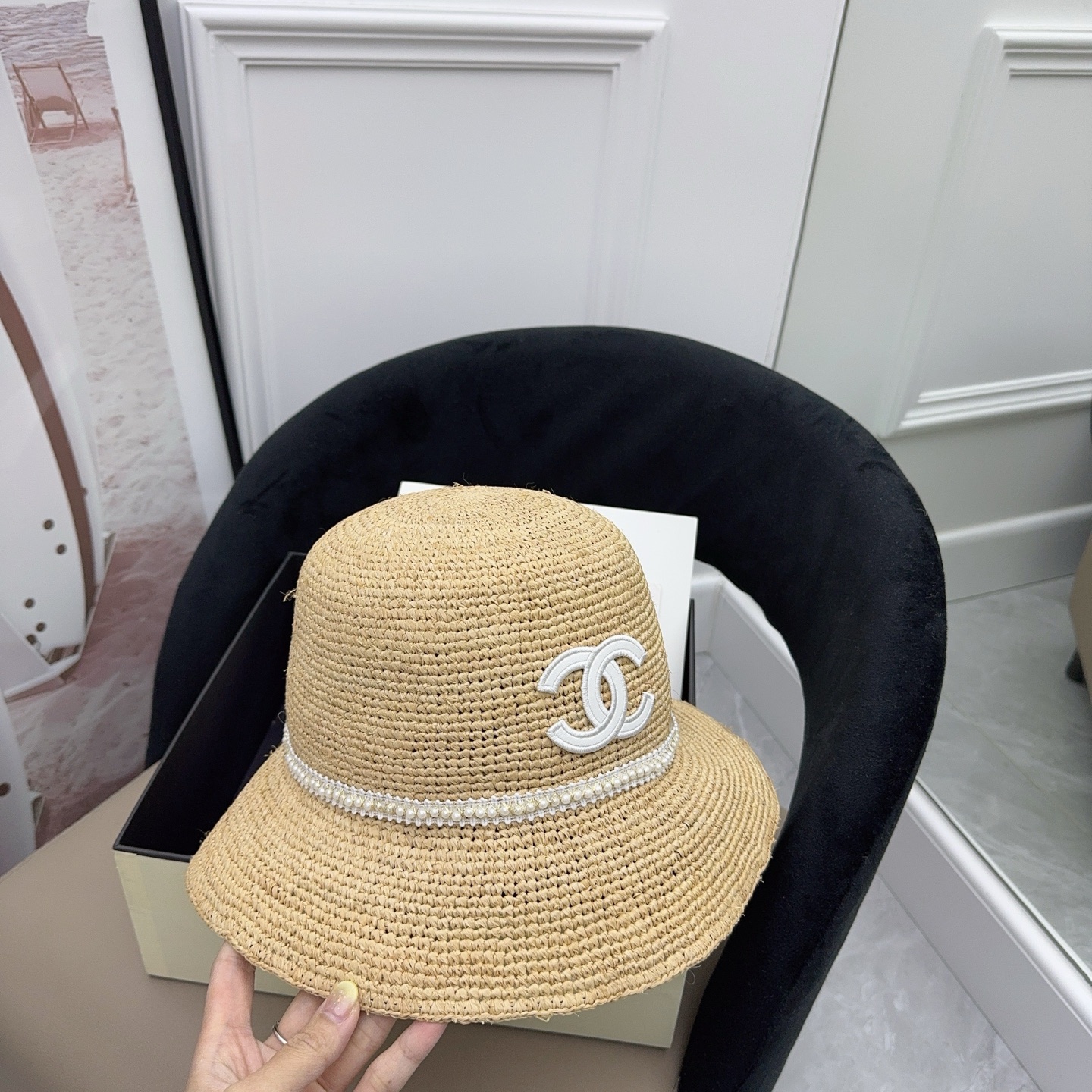 这款帽子是AAAAA 1:1 质量 (非常棒). 使用了和原版一模一样的材料. 商标部分也保持了和香奈儿/Chanel一样. 图片拍摄是实物帽子拍摄, 您所收到的实物保证和我们图片一模一样.