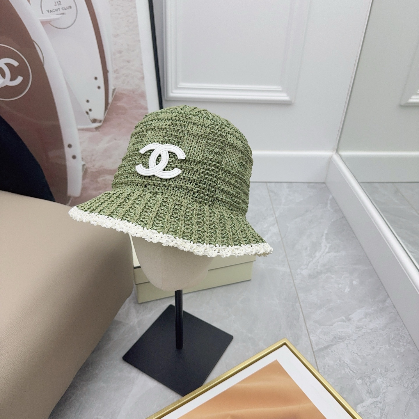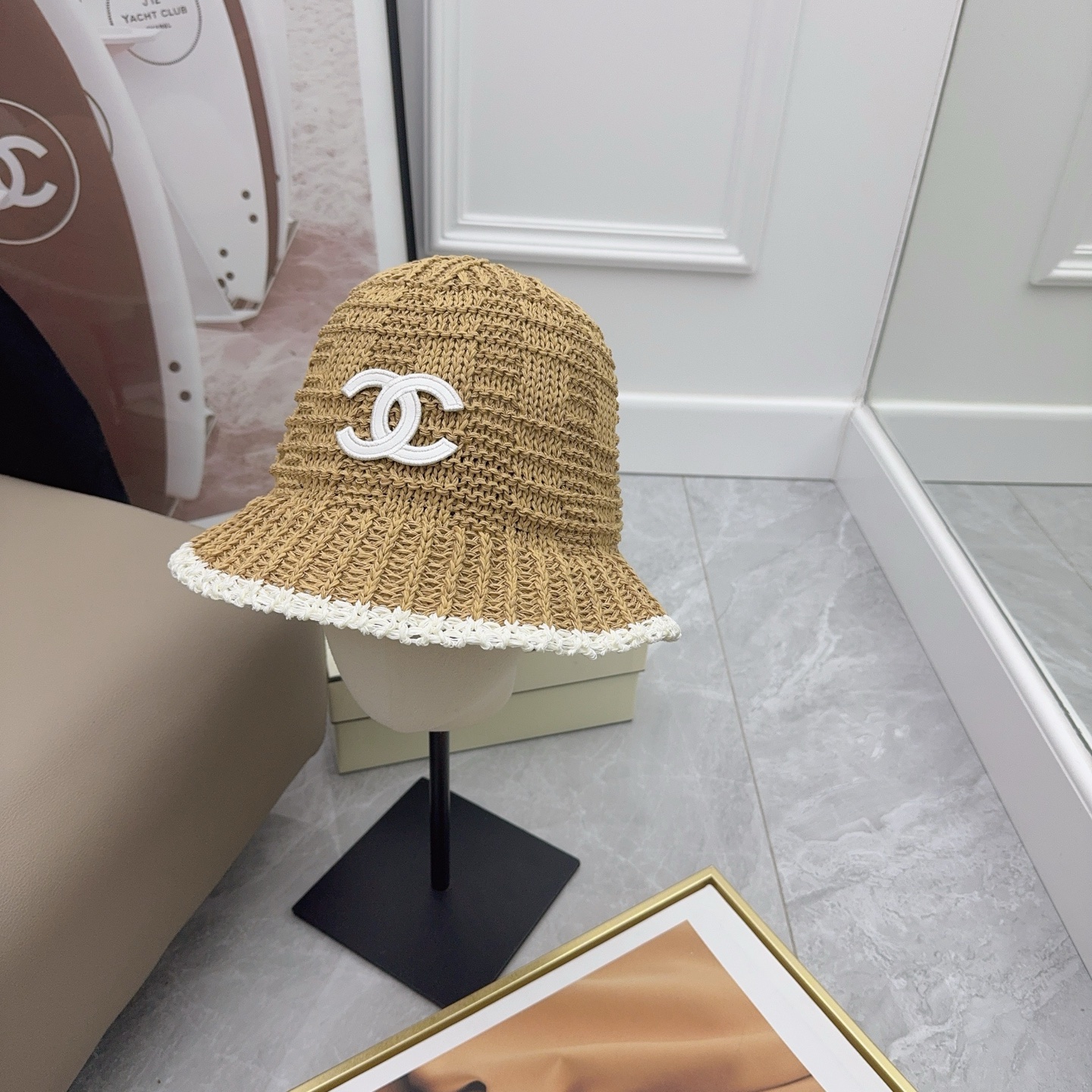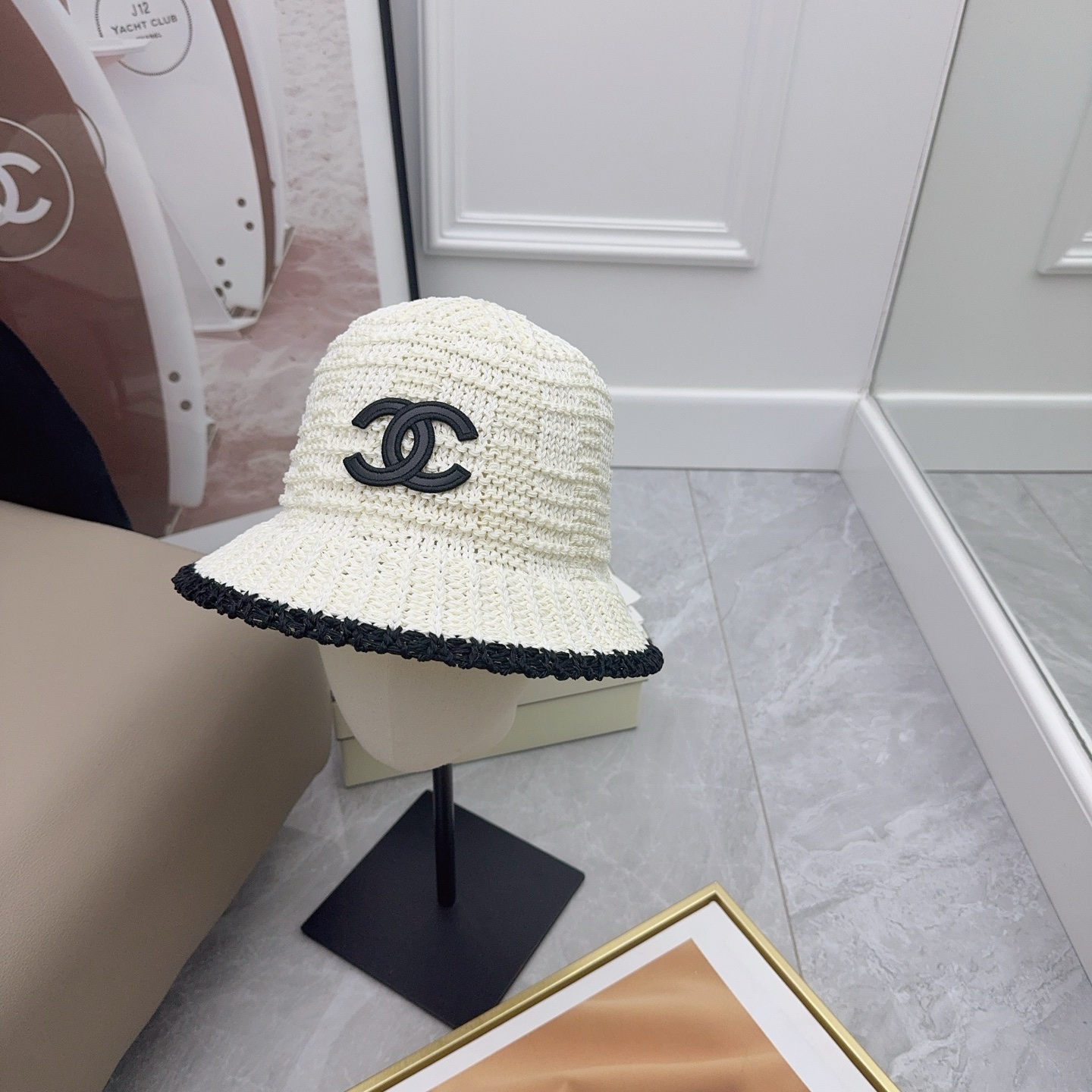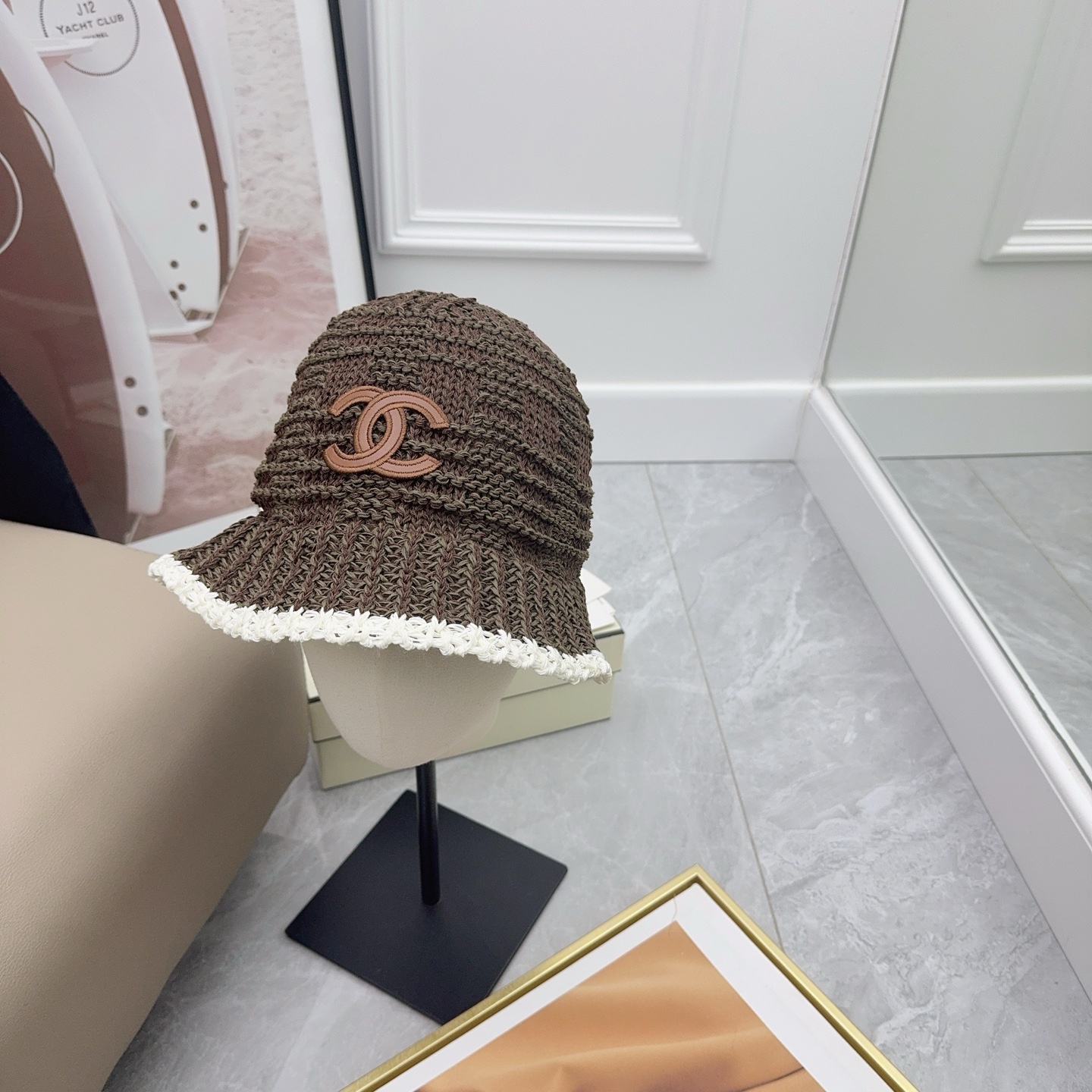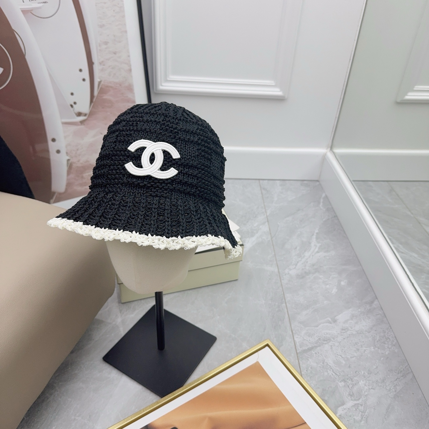 这款帽子是AAAAA 1:1 质量 (非常棒). 使用了和原版一模一样的材料. 商标部分也保持了和香奈儿/Chanel一样. 图片拍摄是实物帽子拍摄, 您所收到的实物保证和我们图片一模一样.