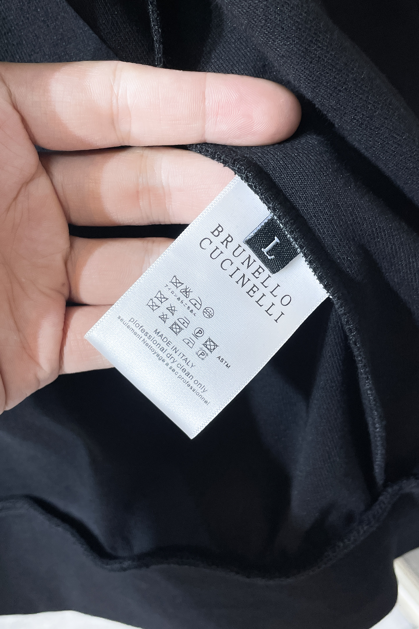 这款衣服是AAAAA 1:1 质量 (非常棒). 使用了和原版一模一样的材料. 商标部分也保持了和Brunello Cucinelli一样. 图片拍摄是实物衣服拍摄, 您所收到的实物保证和我们图片一模一样.