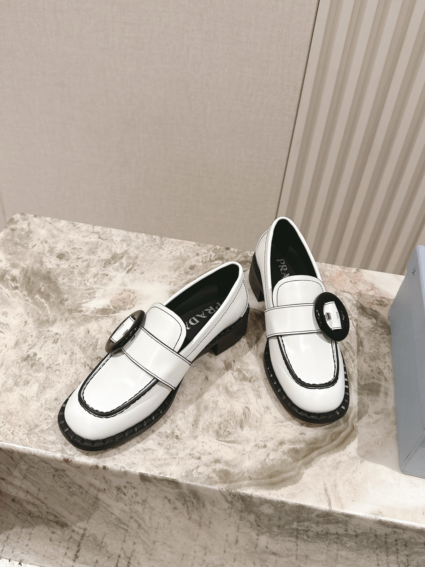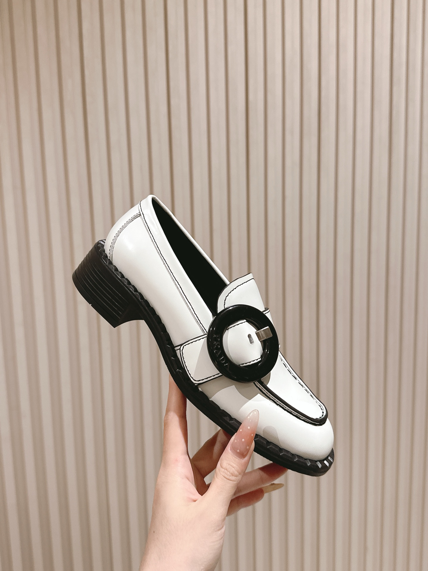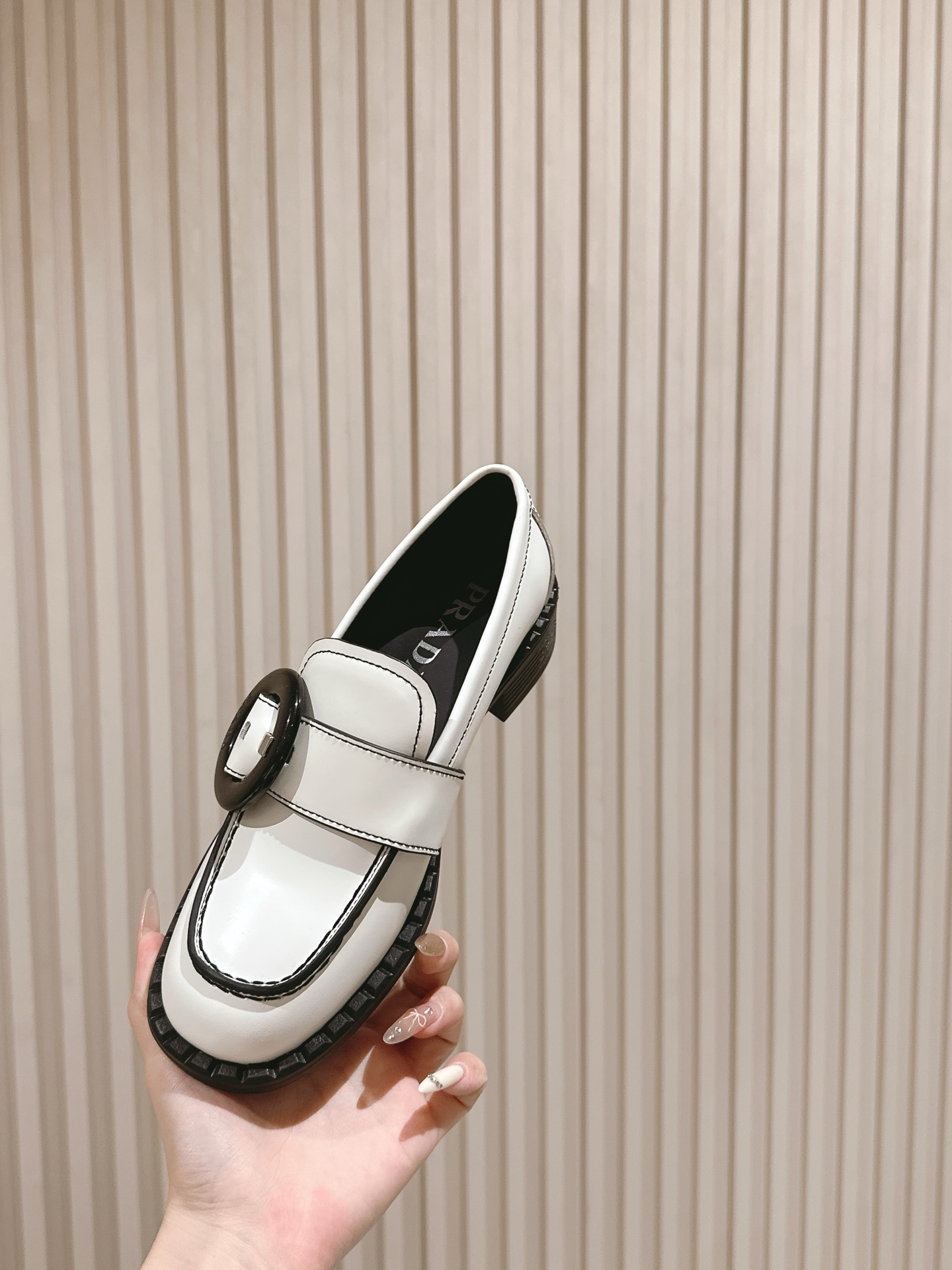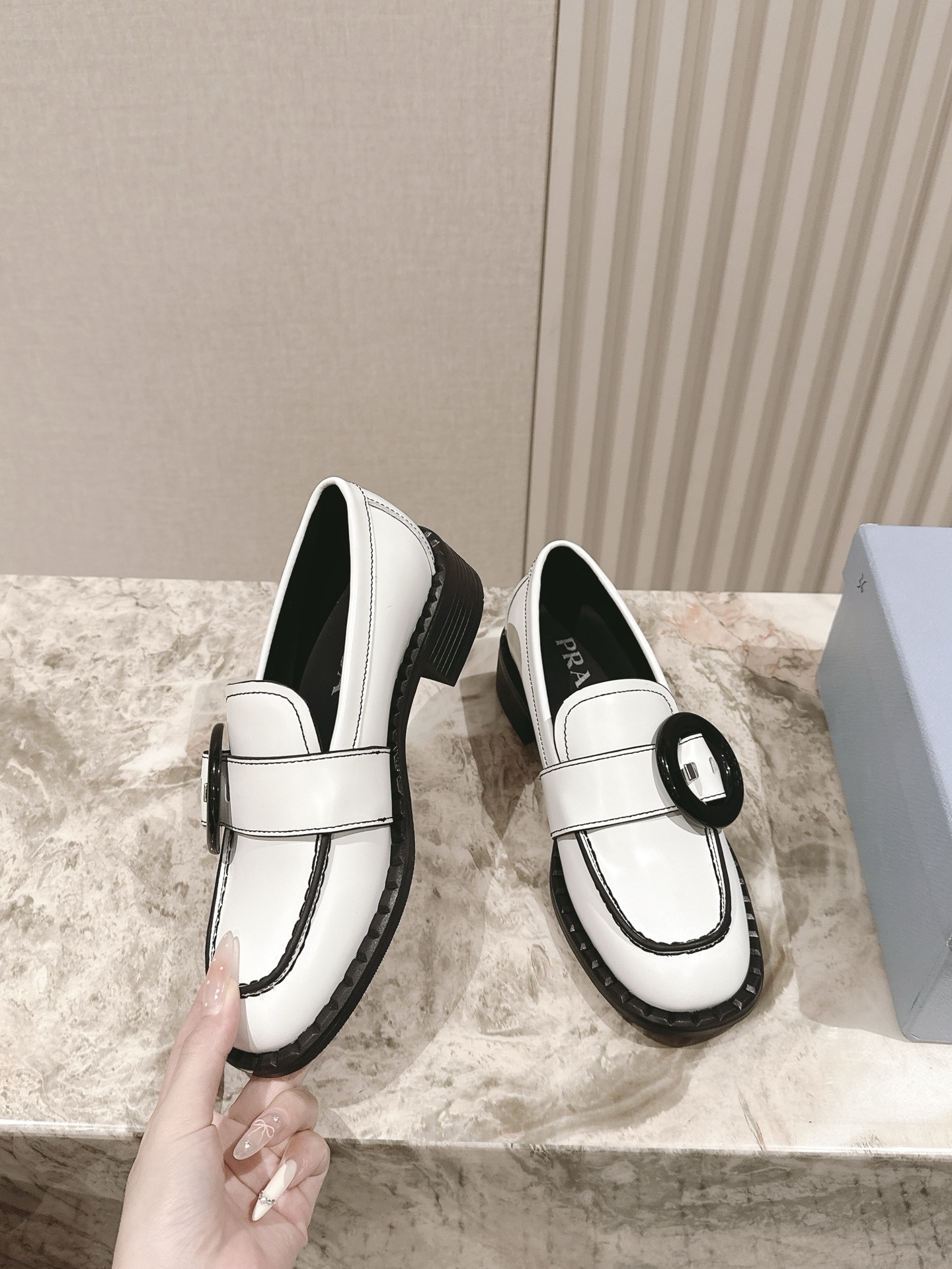 这款鞋子是AAAAA 1:1 质量 (非常棒). 使用了和原版一模一样的材料. 商标部分也保持了和普拉达/Prada一样. 图片拍摄是实物鞋子拍摄, 您所收到的实物保证和我们图片一模一样.