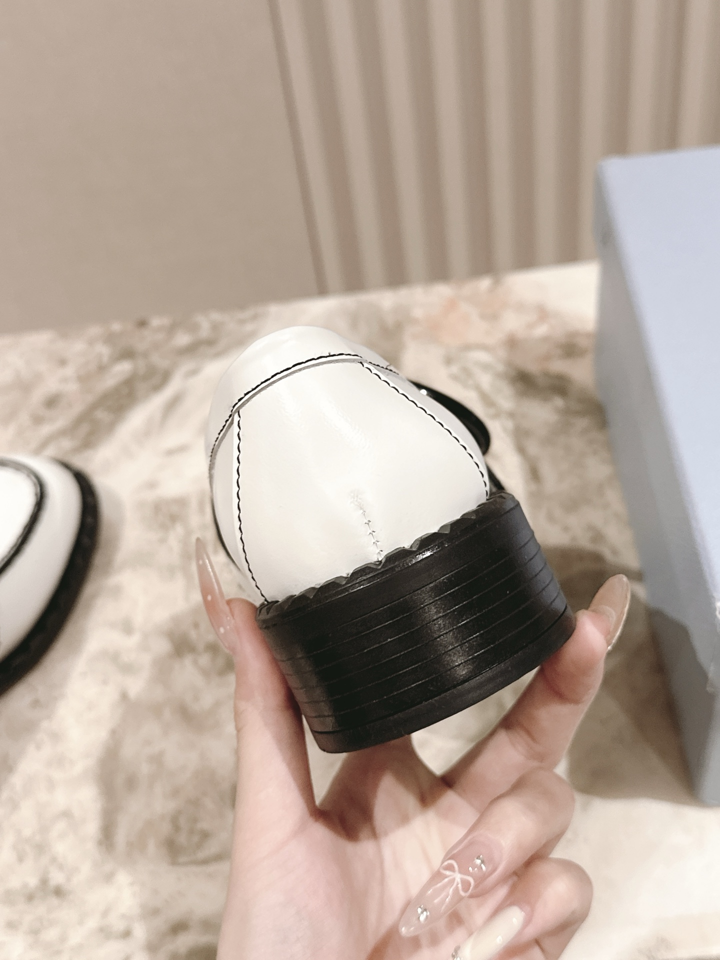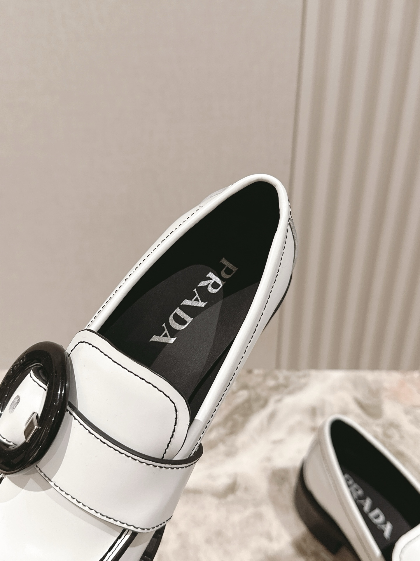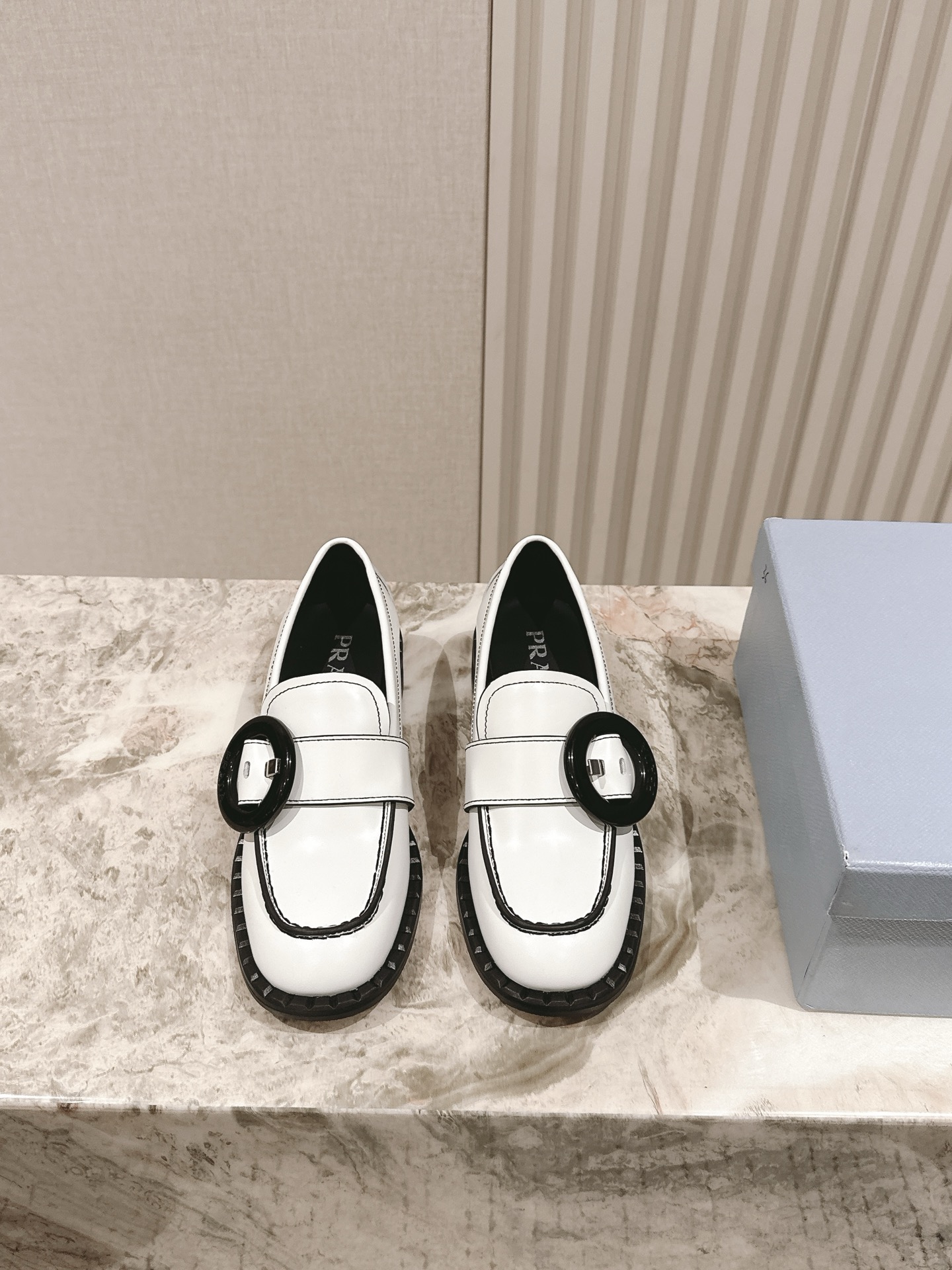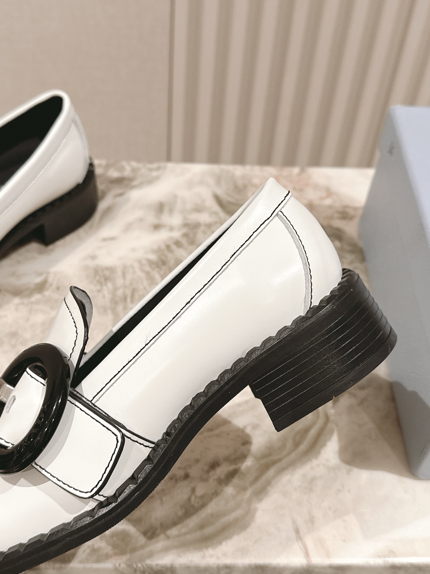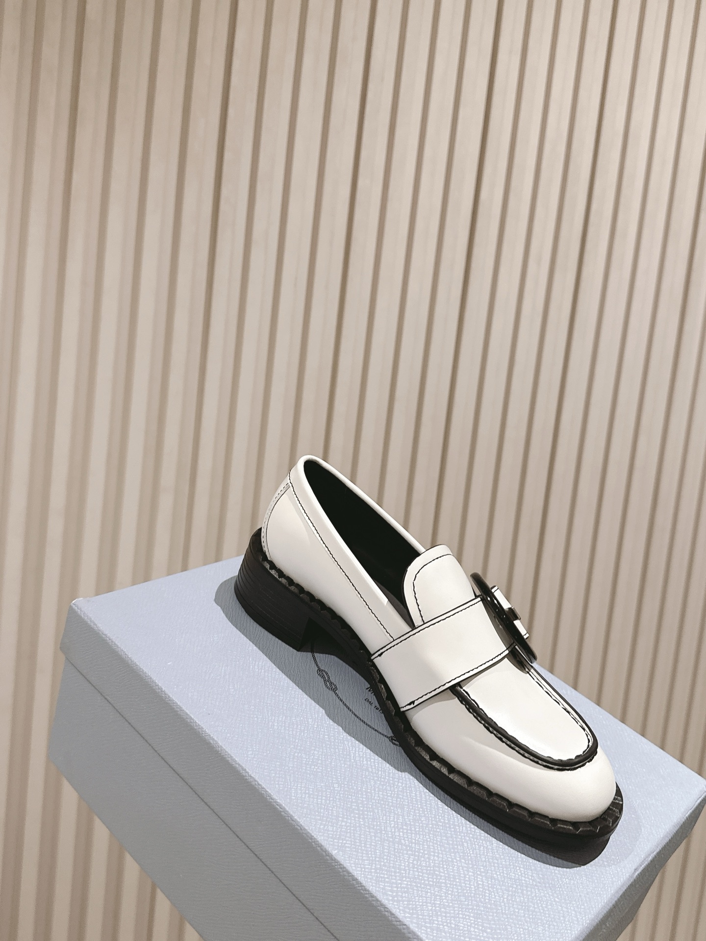 这款鞋子是AAAAA 1:1 质量 (非常棒). 使用了和原版一模一样的材料. 商标部分也保持了和普拉达/Prada一样. 图片拍摄是实物鞋子拍摄, 您所收到的实物保证和我们图片一模一样.