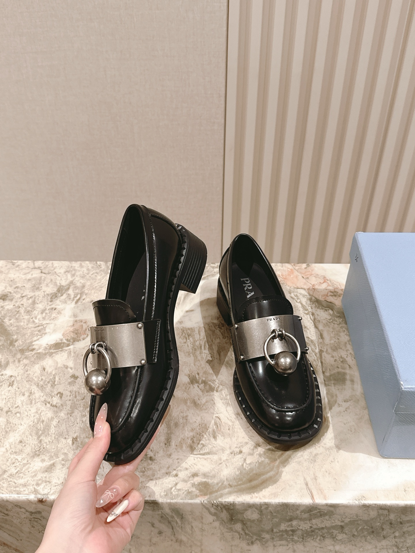 这款鞋子是AAAAA 1:1 质量 (非常棒). 使用了和原版一模一样的材料. 商标部分也保持了和普拉达/Prada一样. 图片拍摄是实物鞋子拍摄, 您所收到的实物保证和我们图片一模一样.